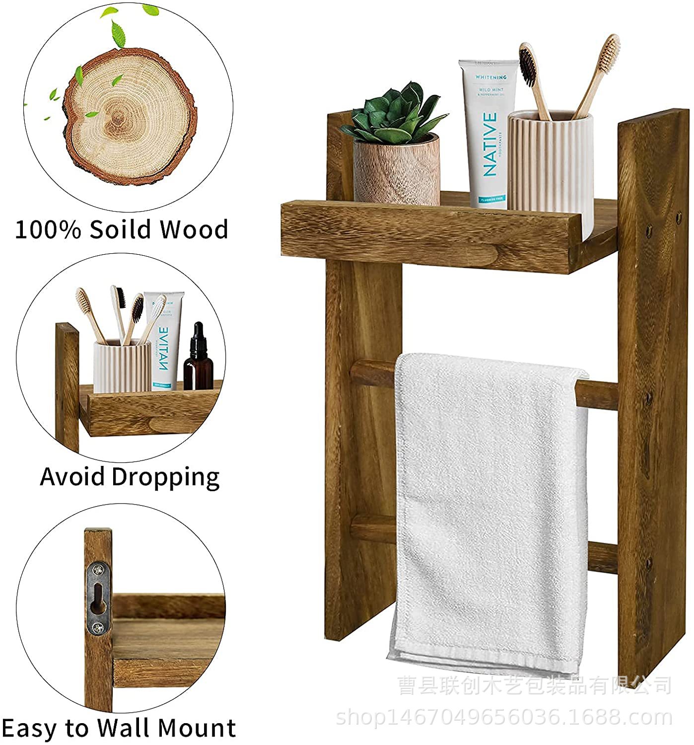北欧实木墙壁置物架浴室毛巾洗漱用品收纳架厨房香料壁挂整理架