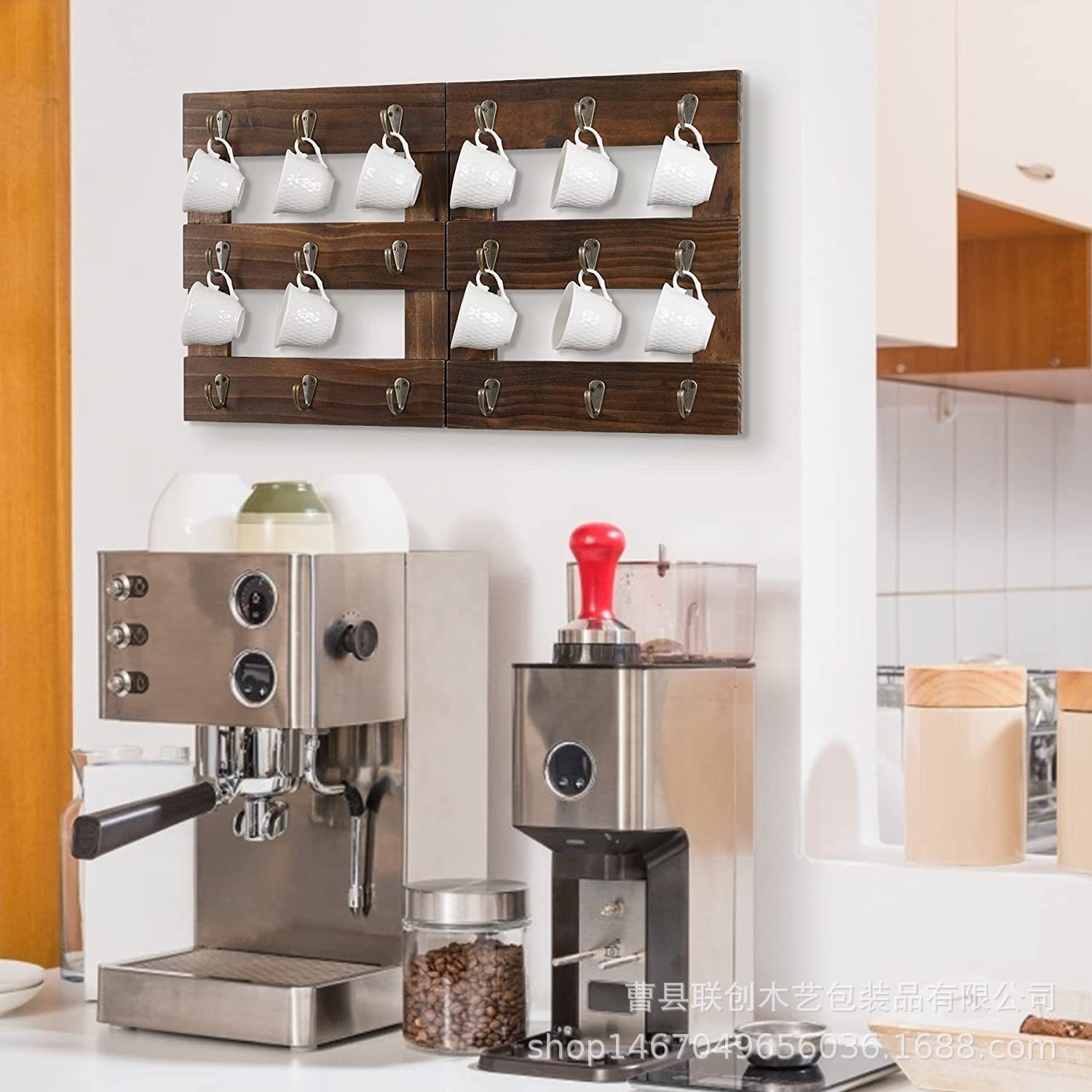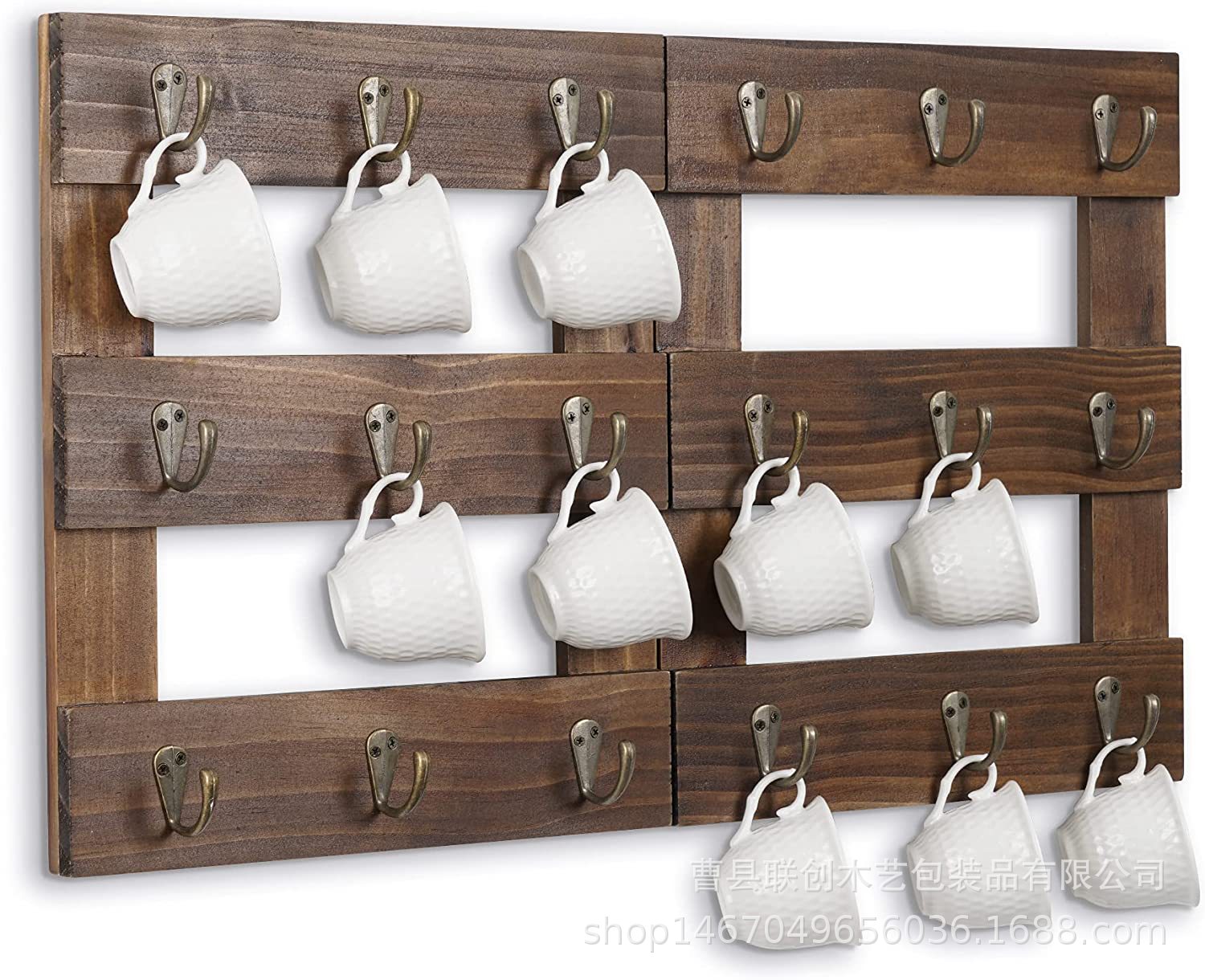 美式实木墙壁镂空设计收纳杯架复古壁挂木质马克杯咖啡杯架整理架