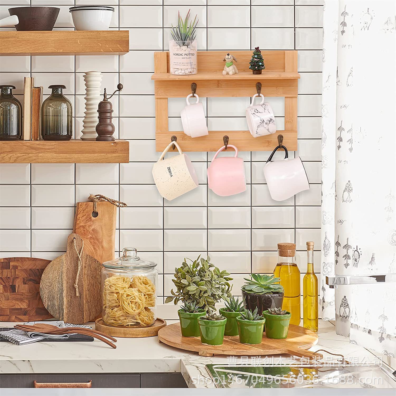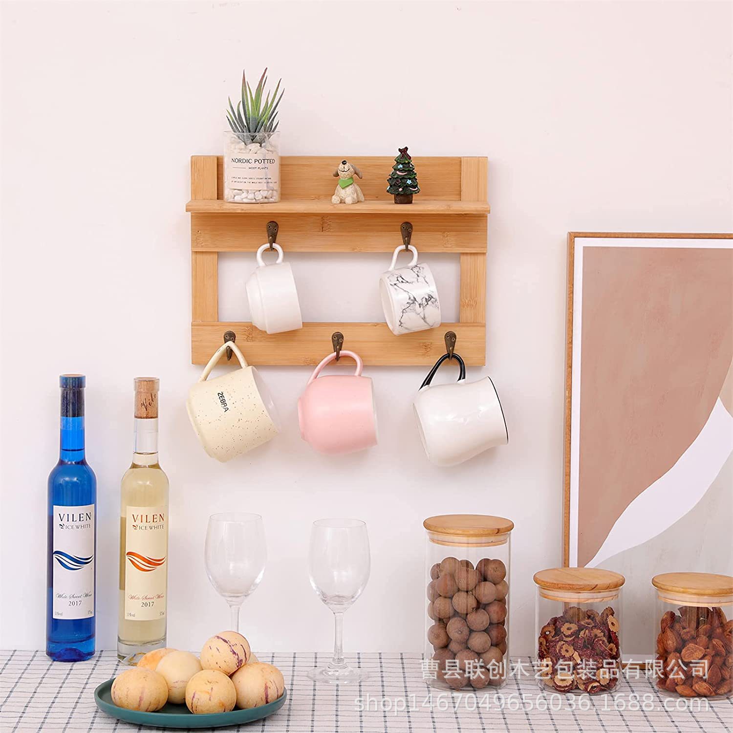 欧式壁挂式整理水杯架客厅厨房马克杯收纳架咖啡厅餐厅竹杯架