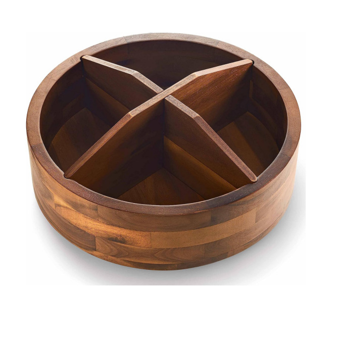 实木分格托盘可旋转可拆卸隔板盘家用水果干果零食盘桌面装饰盘
