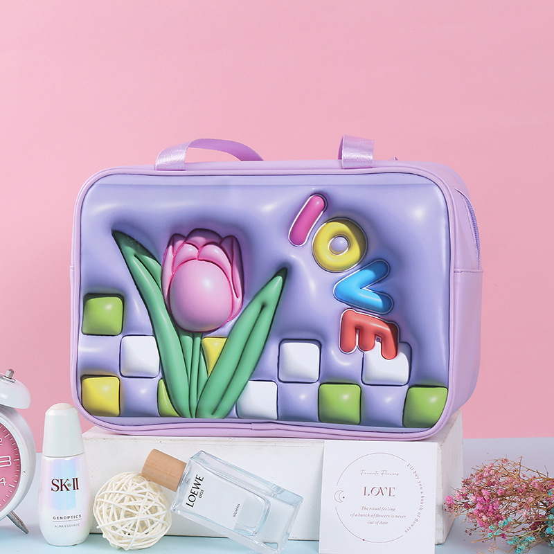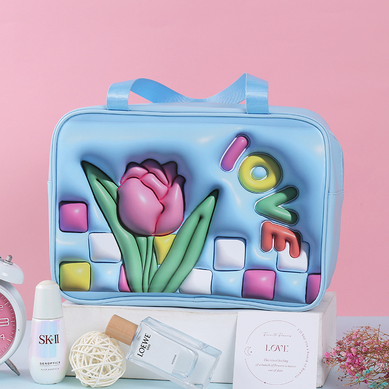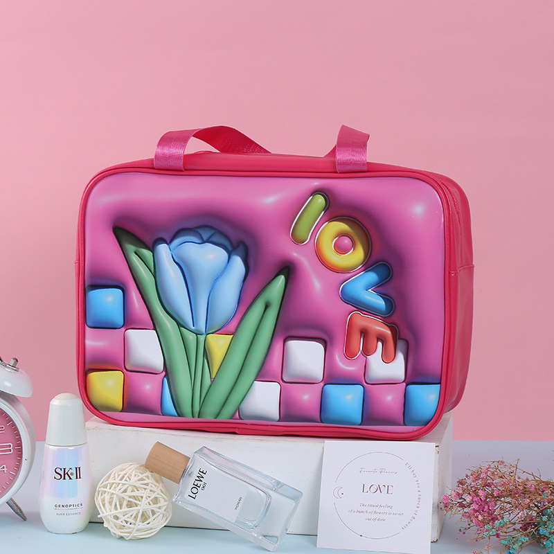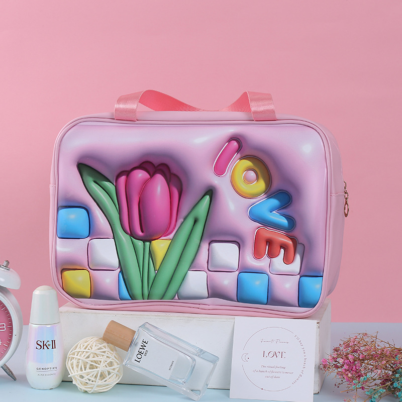 ins潮流化妆包 创意设计花朵印花化妆品收纳包便捷式户外洗漱包