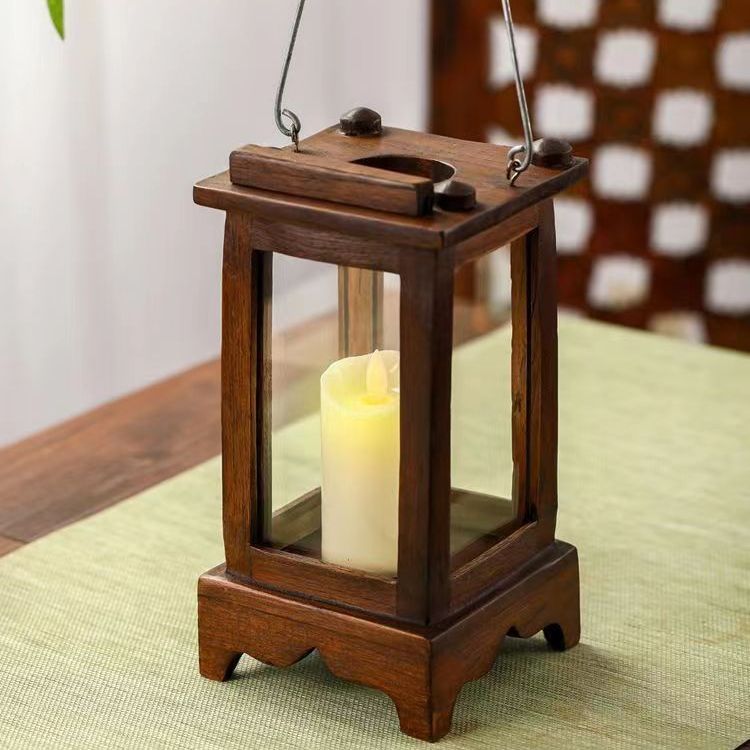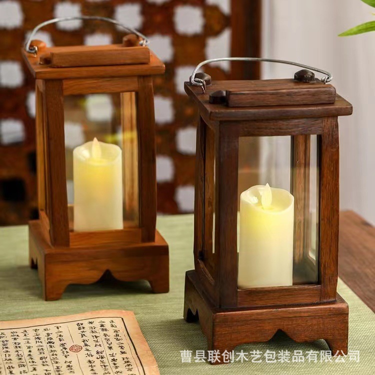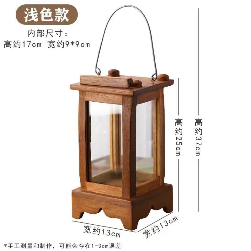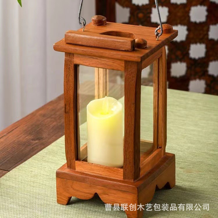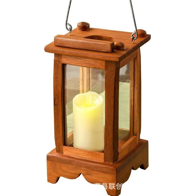 实木中式蜡烛小宫灯可手提烛台烛光晚餐装饰品木质庭院氛围烛灯