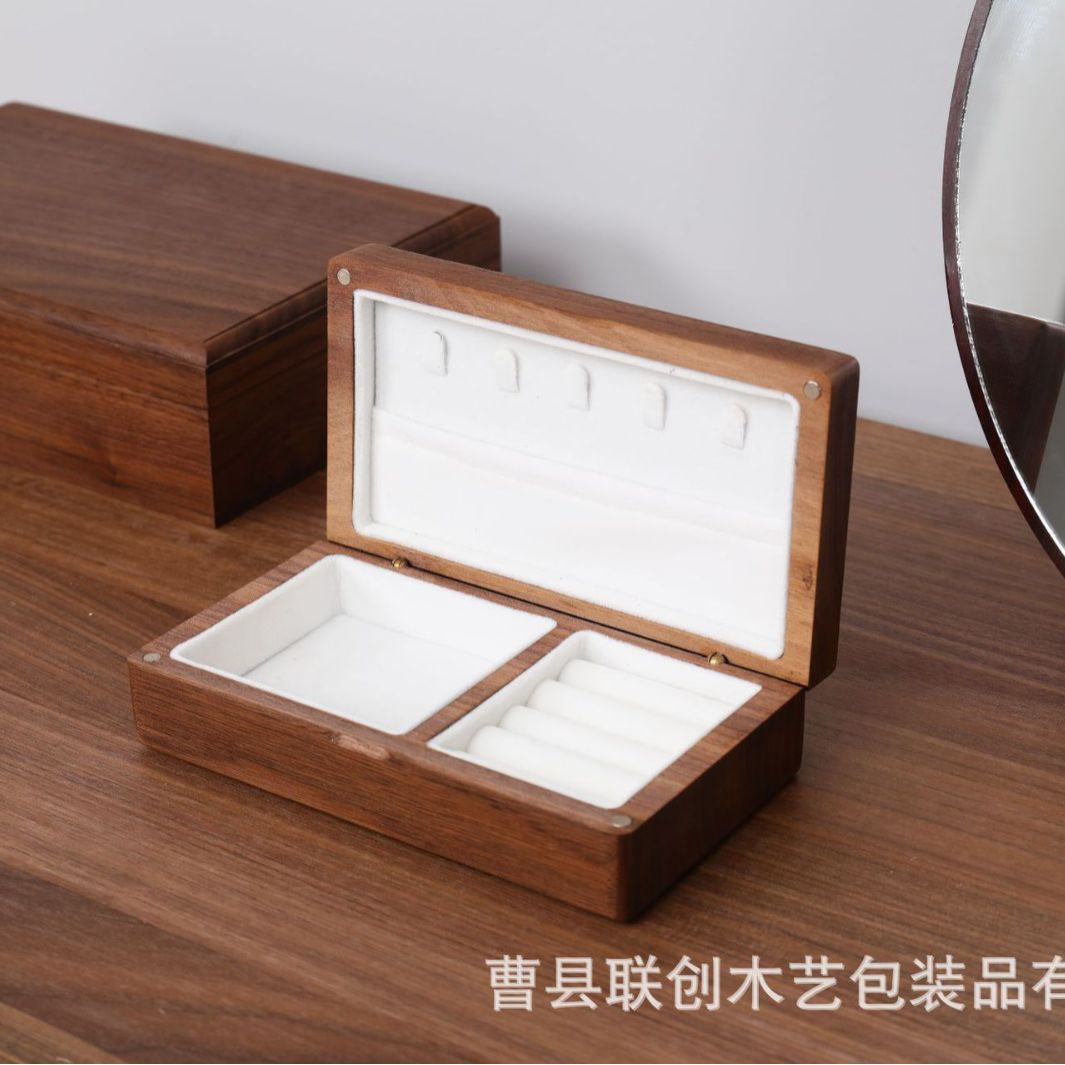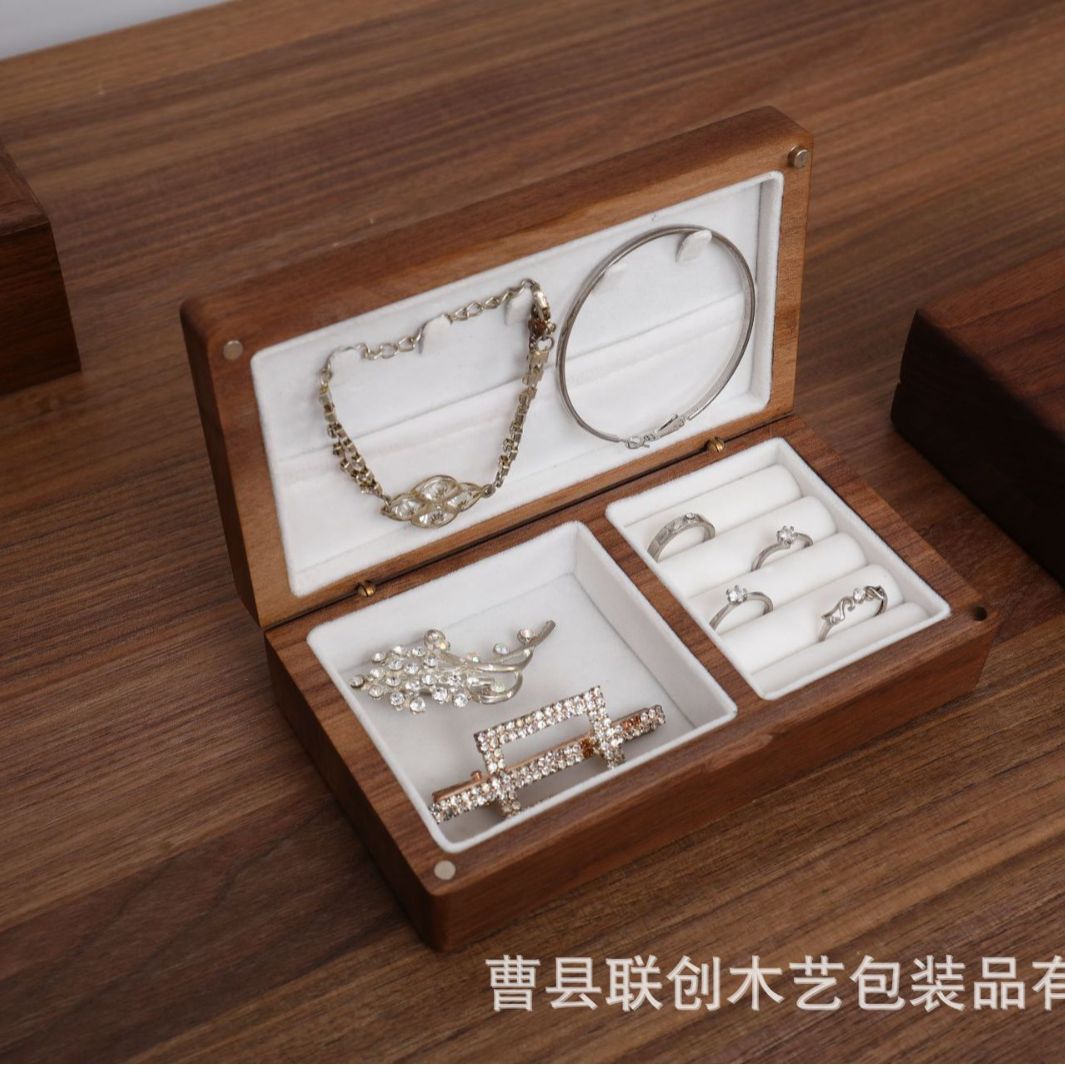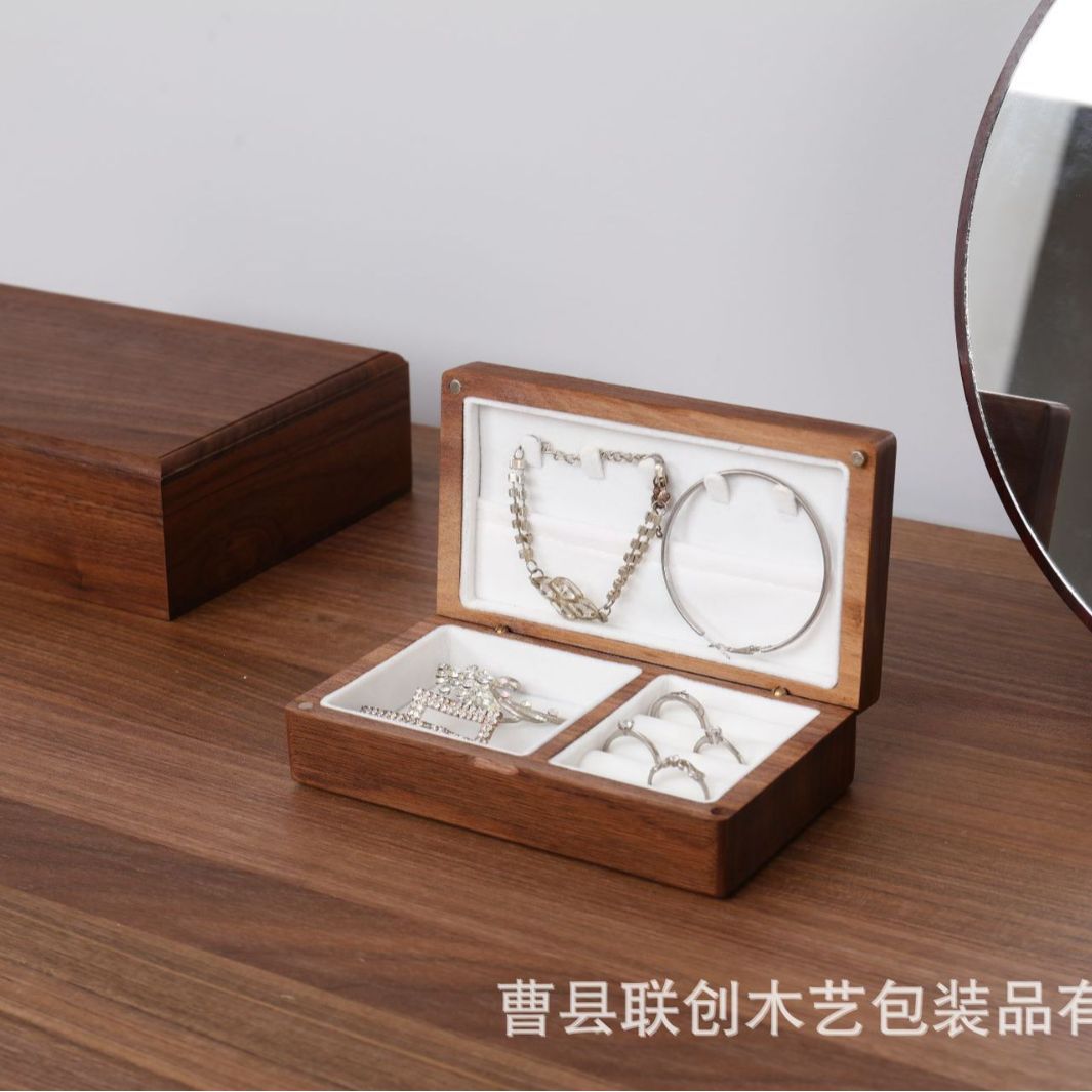 中式木质首饰盒家用手链耳钉戒指分类整理盒旅游便携式实木饰品盒