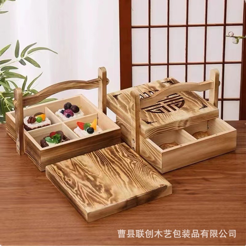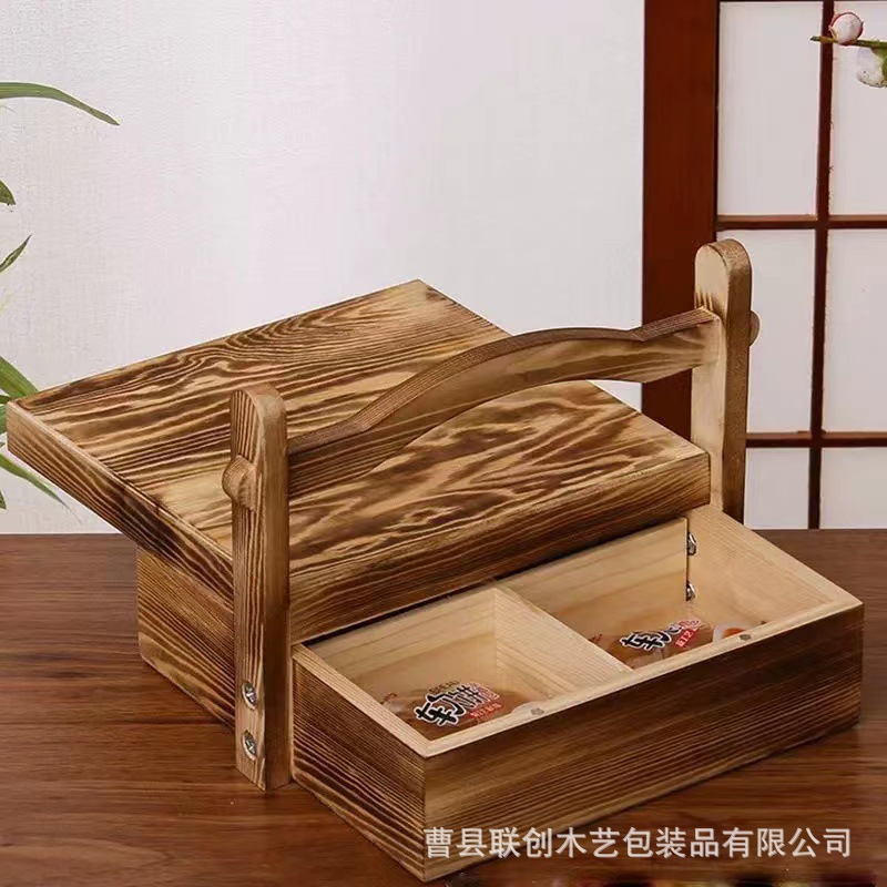 木质手提式中秋月饼礼品盒中式点心糕点包装盒创意多格茶叶干果盒