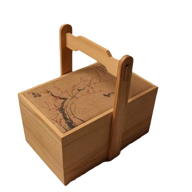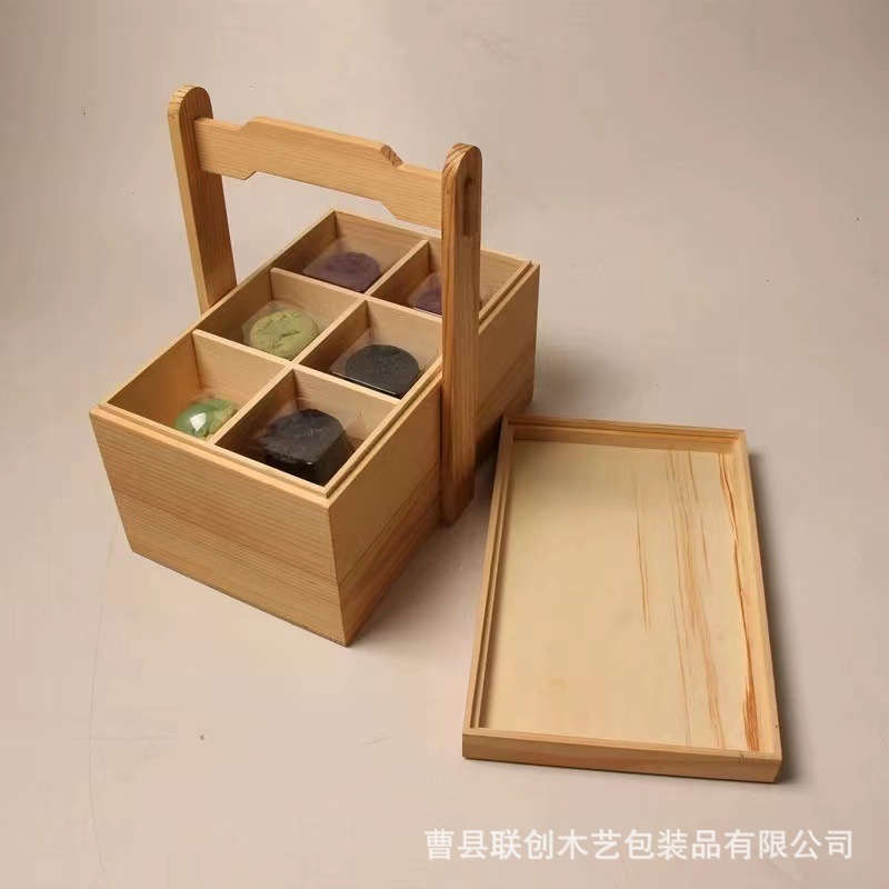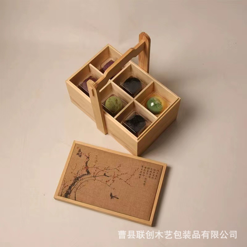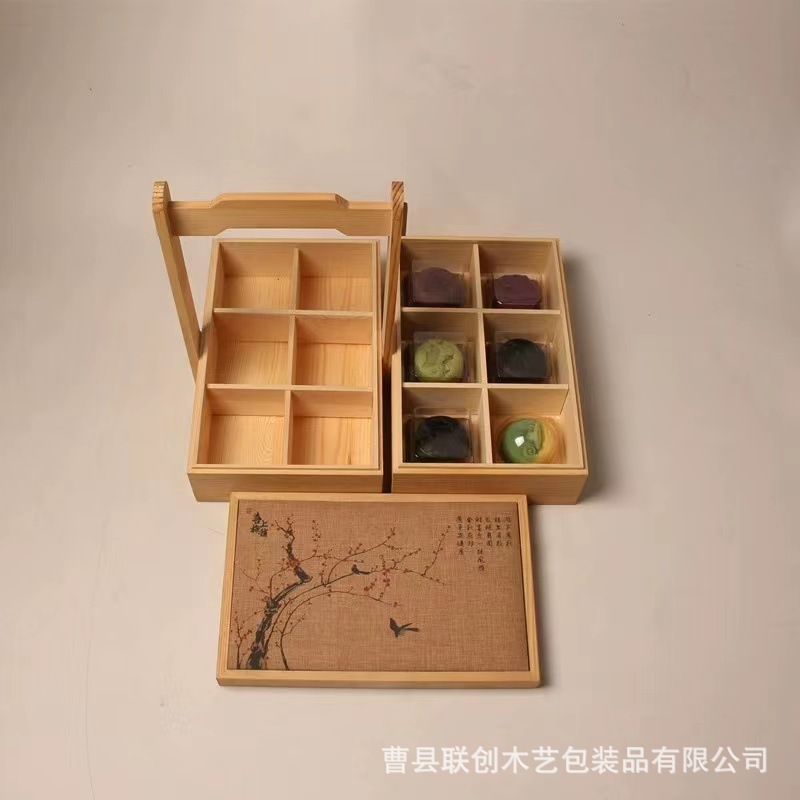 国潮中秋节月饼双层木质礼品盒手提式中式点心糕点粽子包装木盒