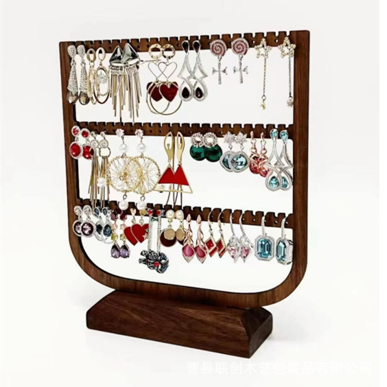 木质多层首饰架商用耳钉耳环展示架直播道具胡桃木家用饰品收纳架