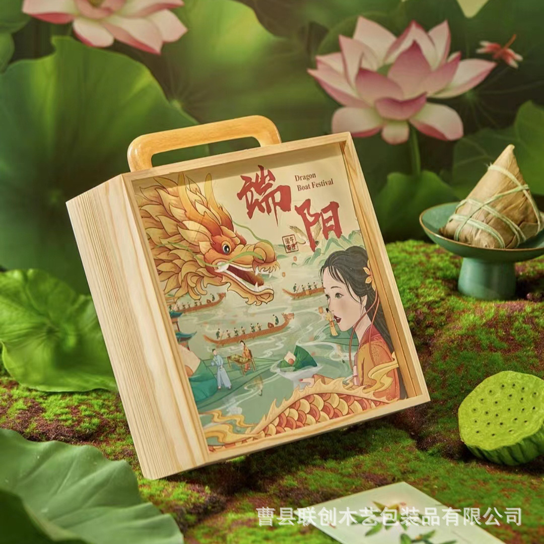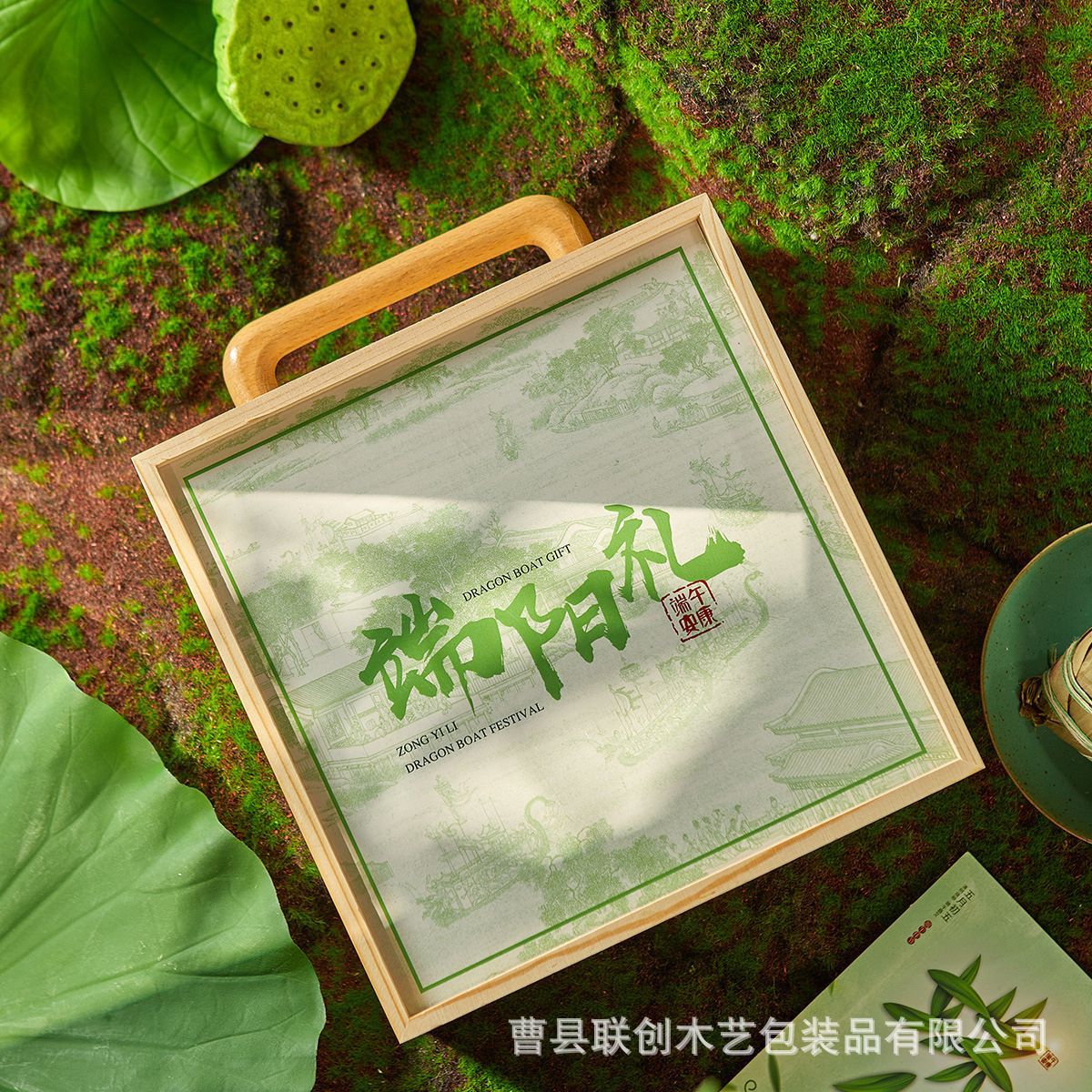 端午节粽子礼盒带手柄端午礼盒伴手礼木盒中秋节月饼实木礼品盒