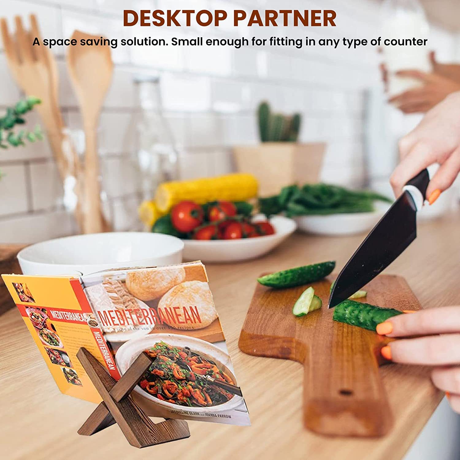 松木烧色食谱架简约可拆装木质书架阅读架唱片展示架实木菜谱架