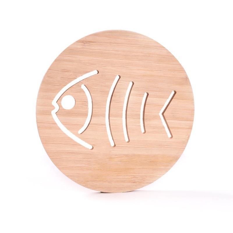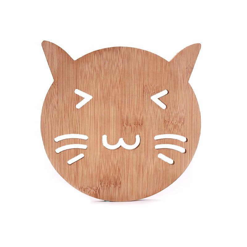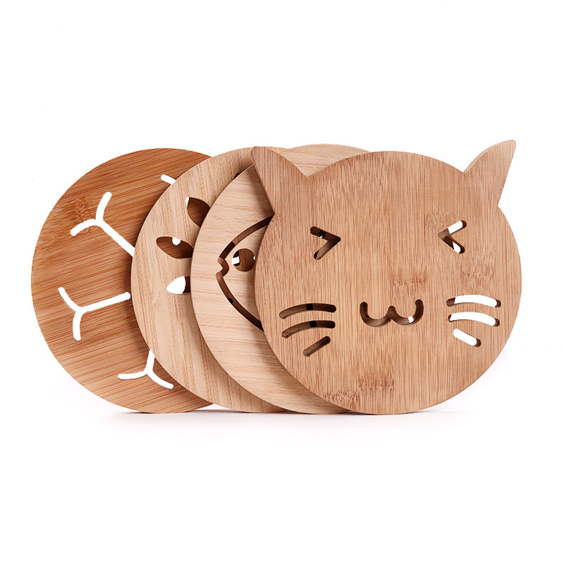 卡通镂空木质杯垫厨房餐具加厚防烫隔热垫木制锅碗餐垫实木碗垫