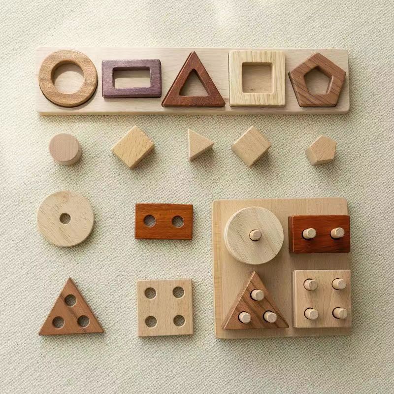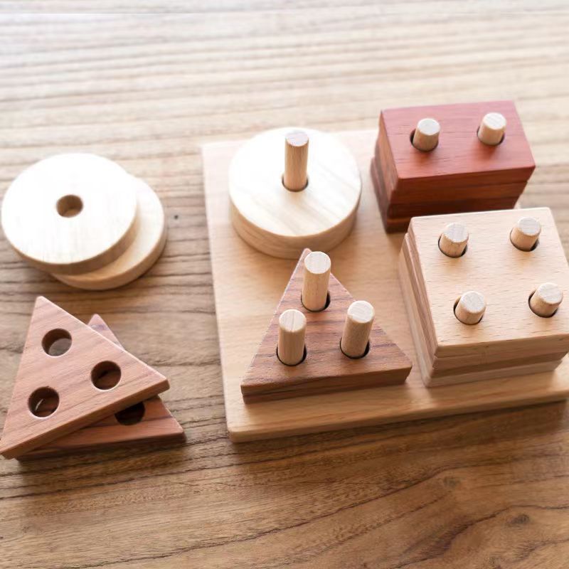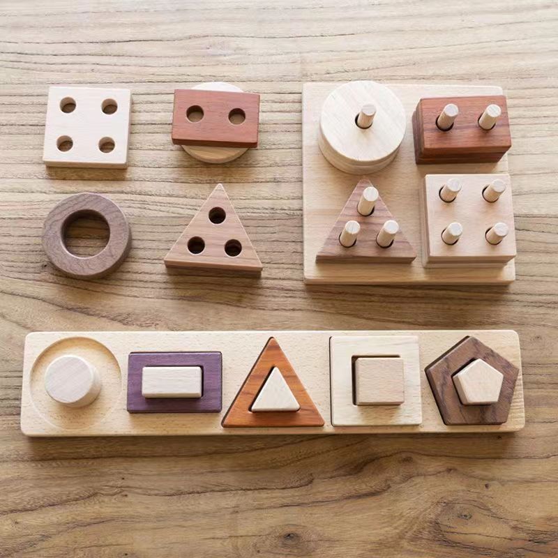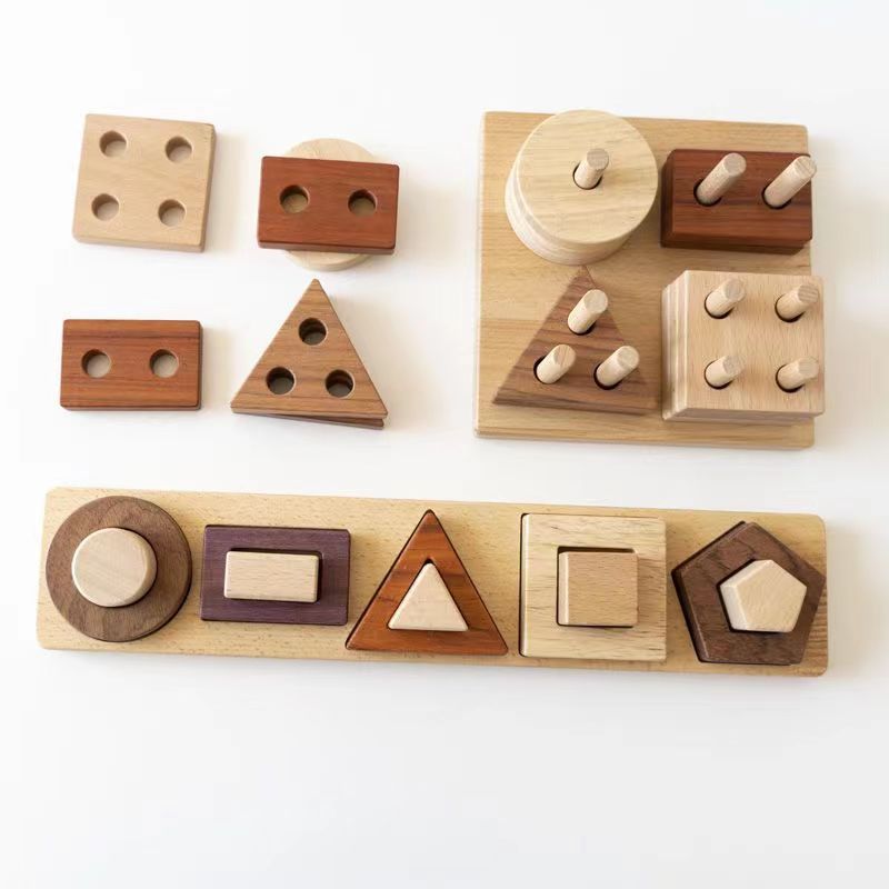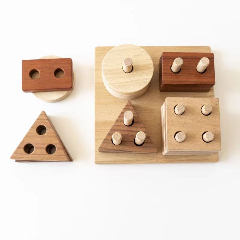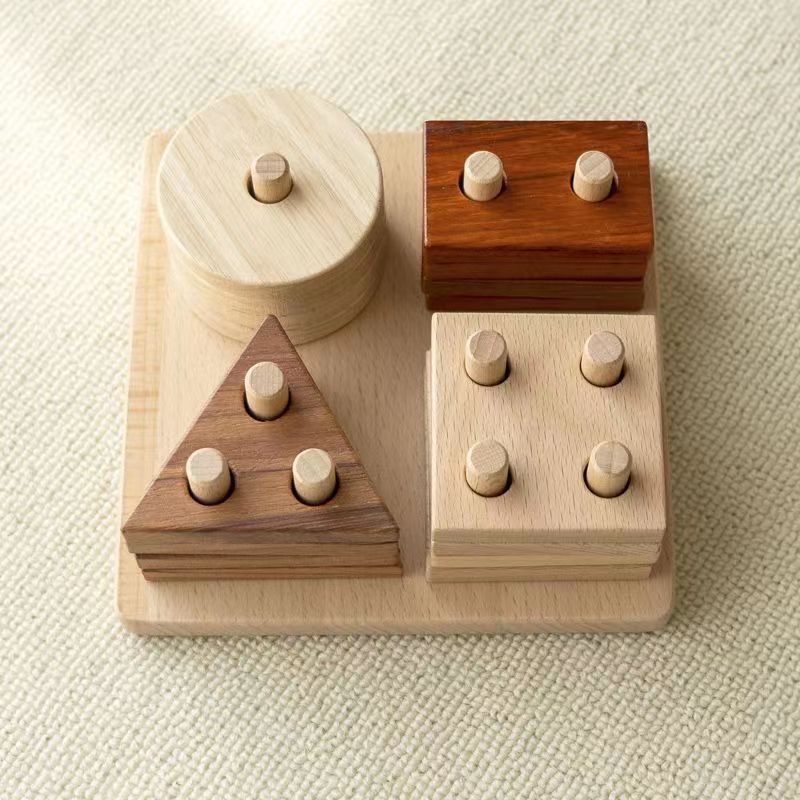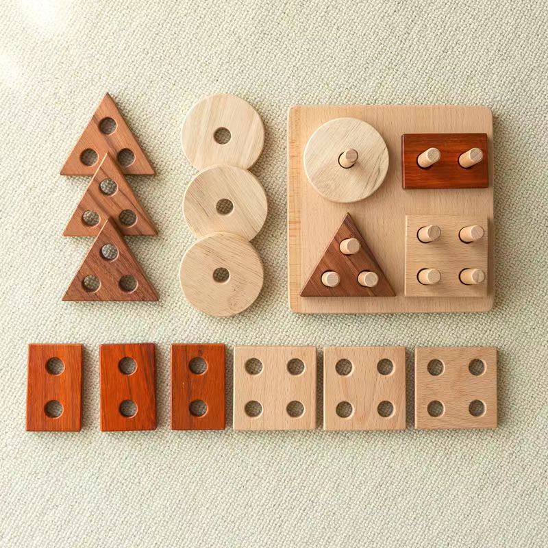 木制四套住玩具儿童益智类几何积木游戏婴幼蒙氏早教认知教具批发
