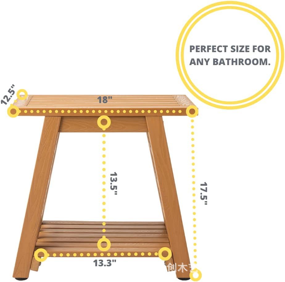 跨境木质方形浴室凳家用浴室淋浴座椅淋浴台可调节淋浴凳带储物架