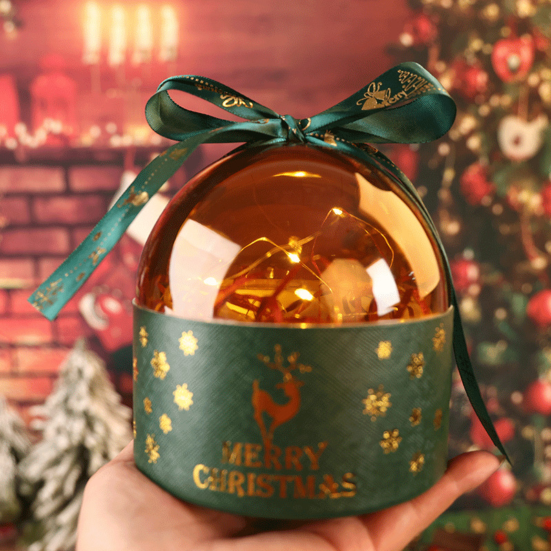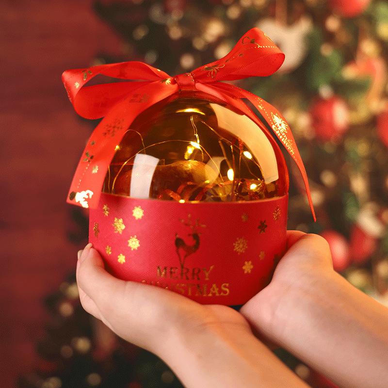 圣诞节礼盒麋鹿波波球苹果盒 圣诞抱抱桶平安夜透明pvc糖果包装盒