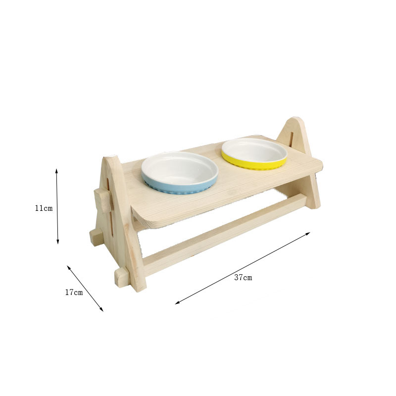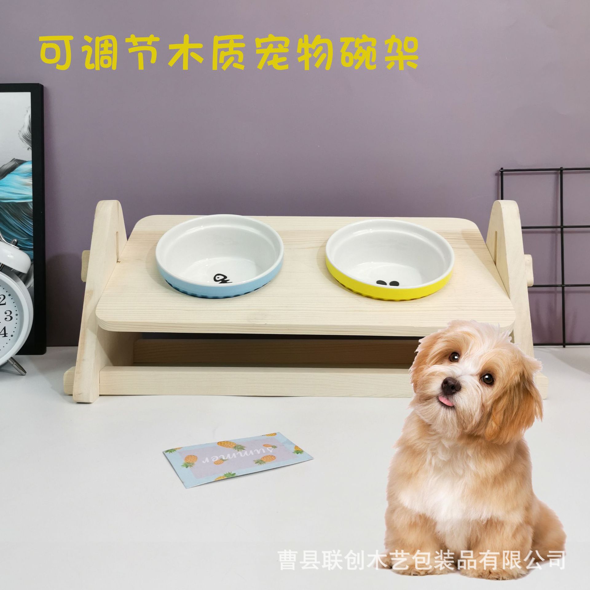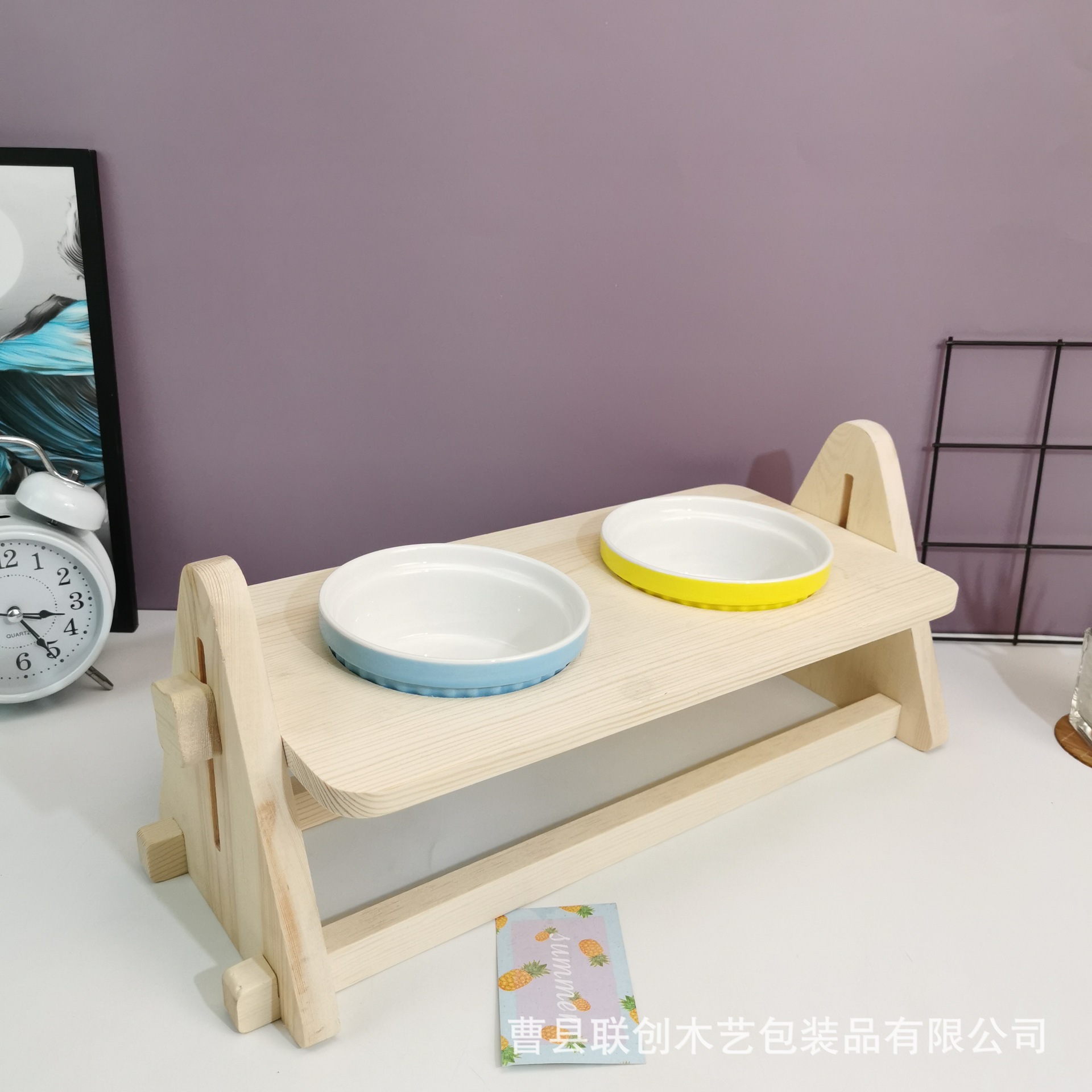 木质宠物猫碗架创意双碗倾斜面可调节可拆卸木架宠物喂食支架