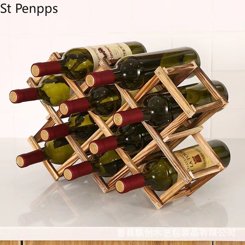 木质红酒架实木葡萄酒架子创意折叠木质酒架摆件客厅红酒展示架