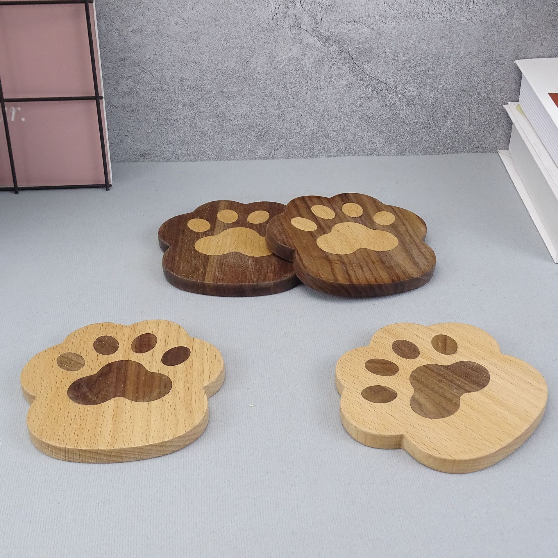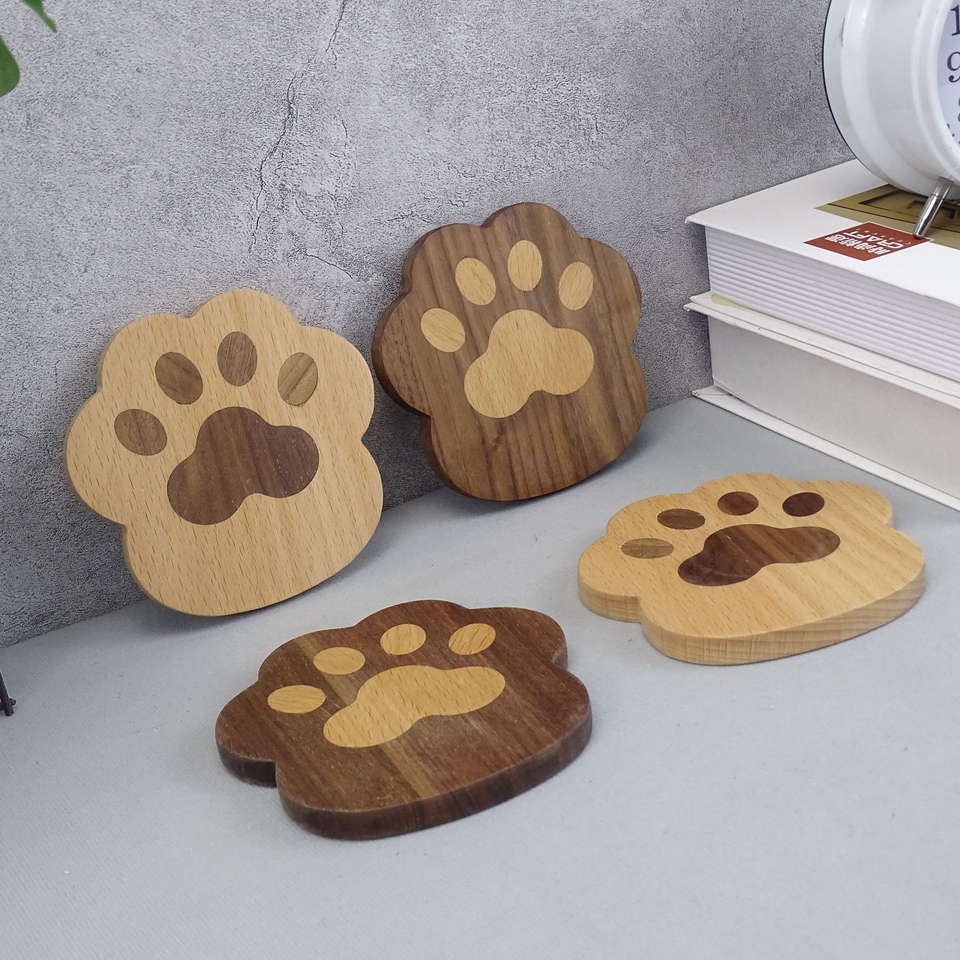 木质杯垫茶杯隔热垫创意卡通猫爪咖啡底托家用桌面餐垫实木锅垫子