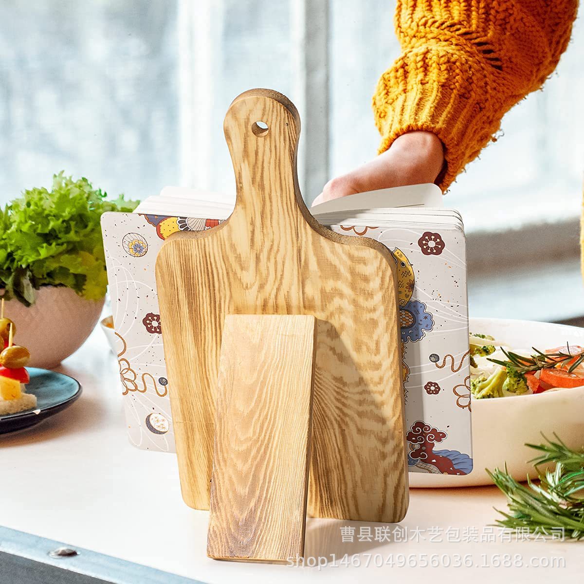 实木桌面手机支架厨房菜谱书籍展示架台面砧板设计书籍架整理架