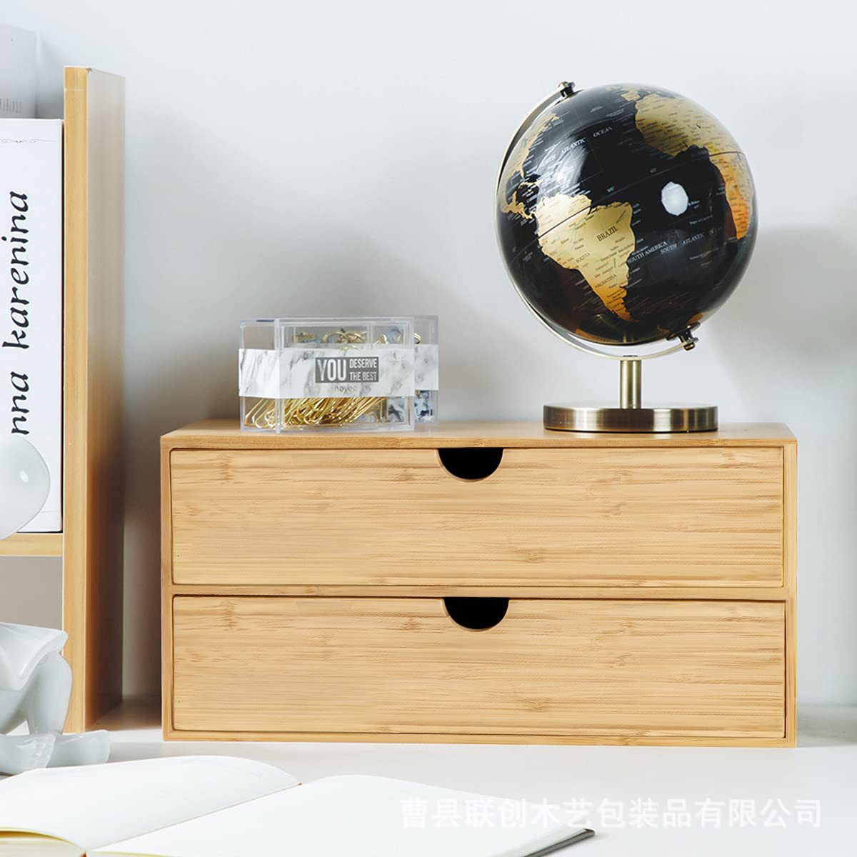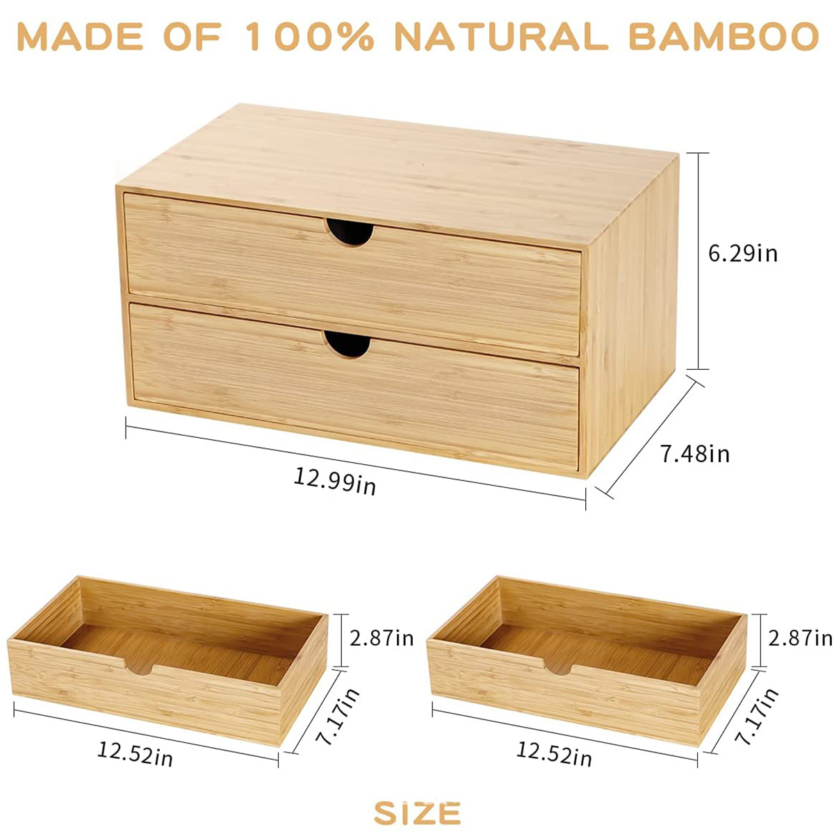 竹木桌面储物盒带抽拉抽屉木质收纳盒卧室化妆架饰品实木收纳盒