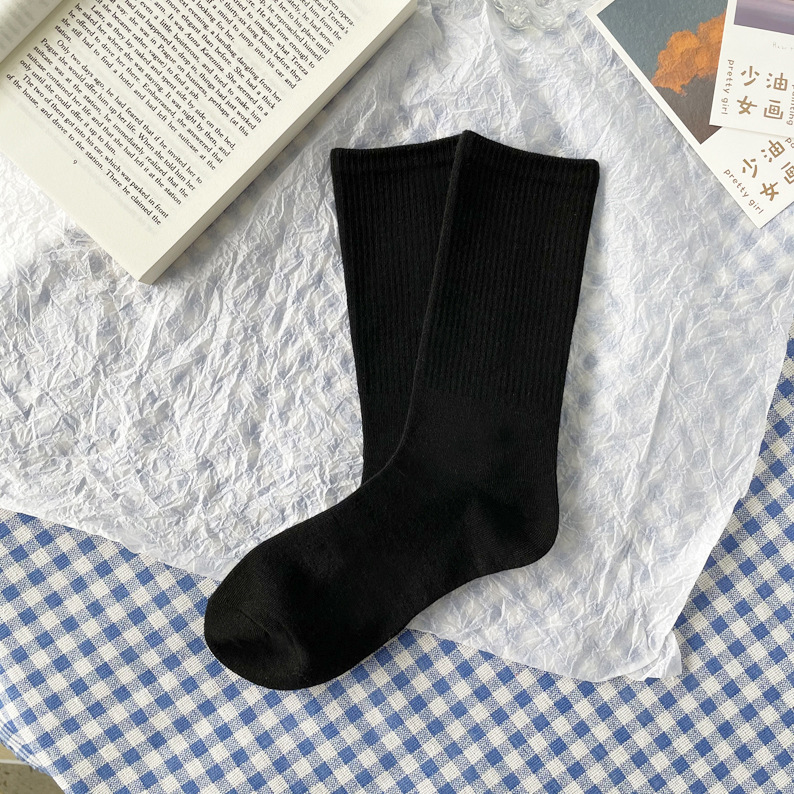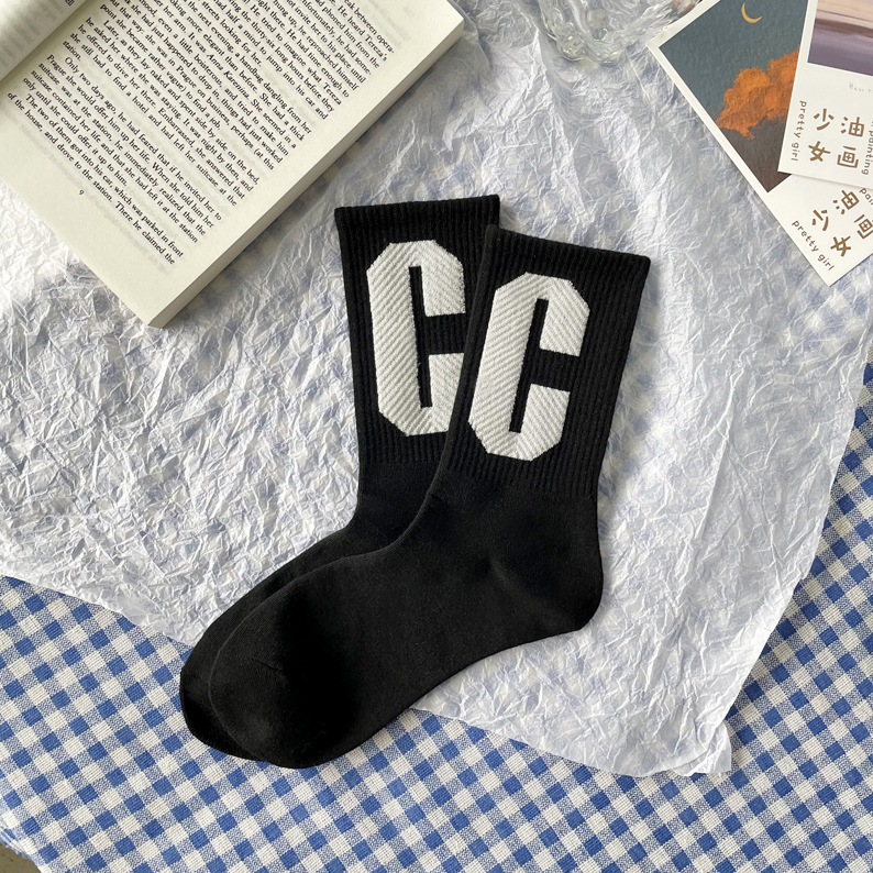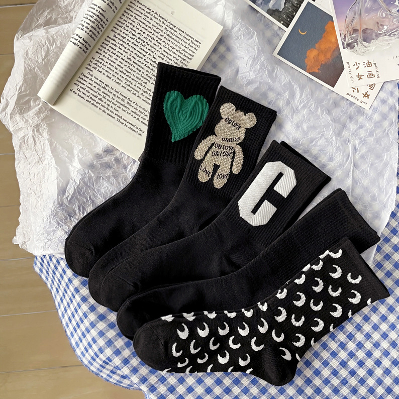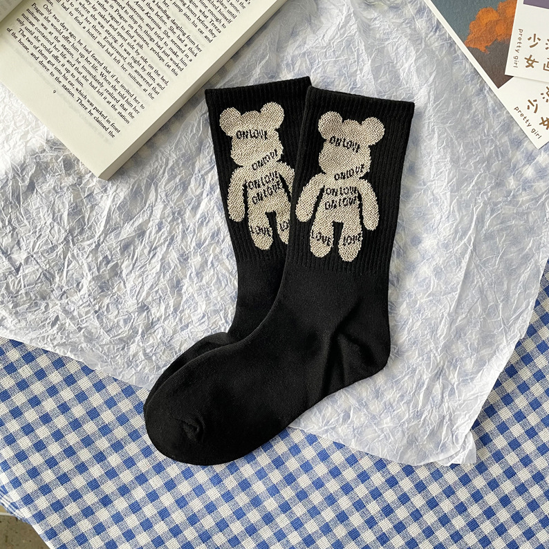 紫洋秋冬新款中筒女袜黑色潮袜学生袜长袜棉袜卡通小熊袜字母C袜