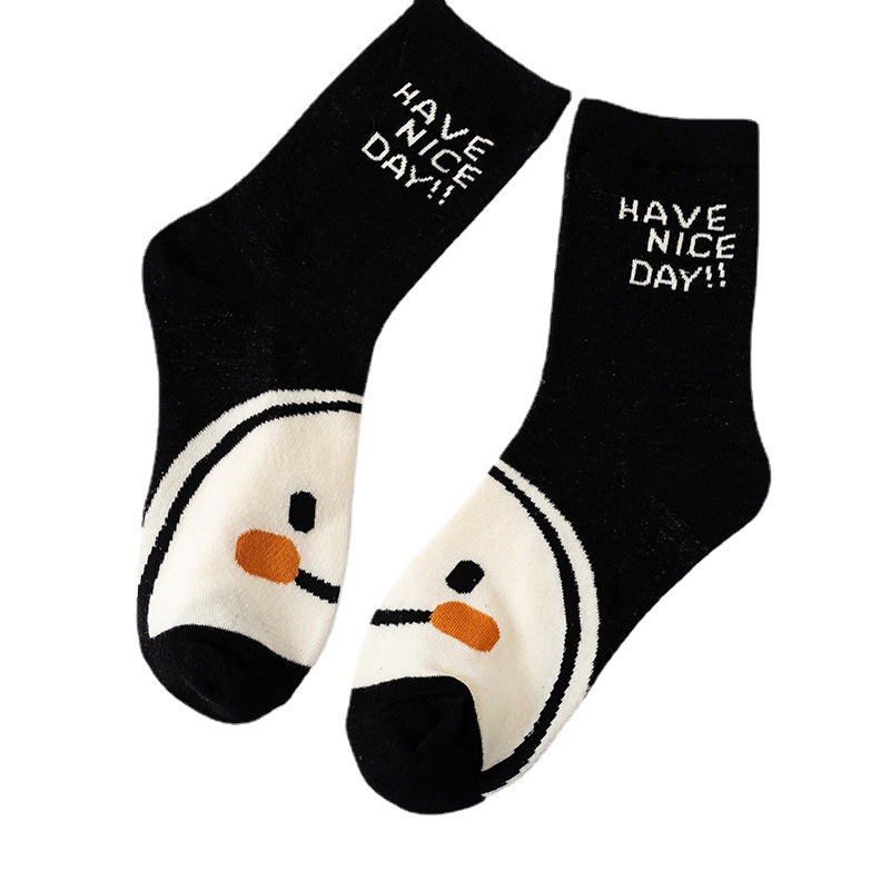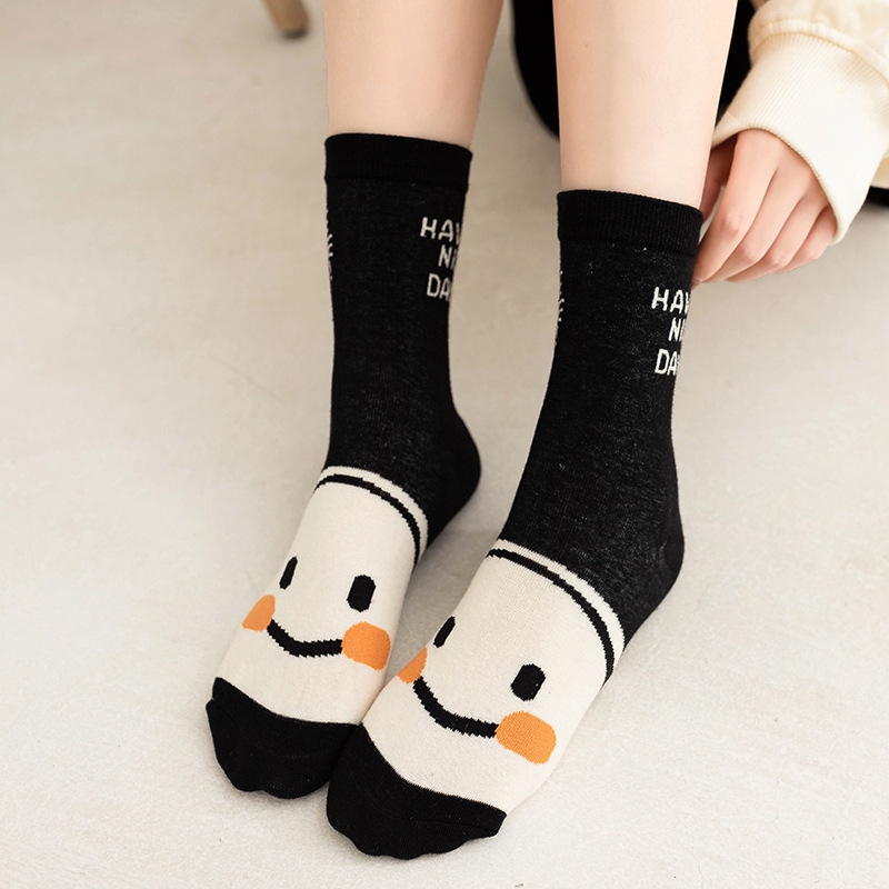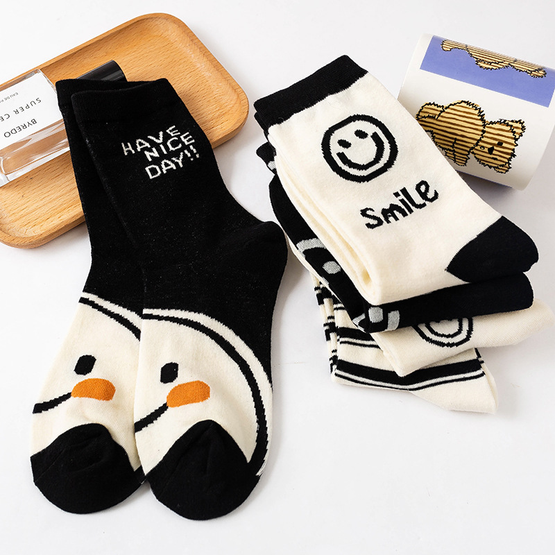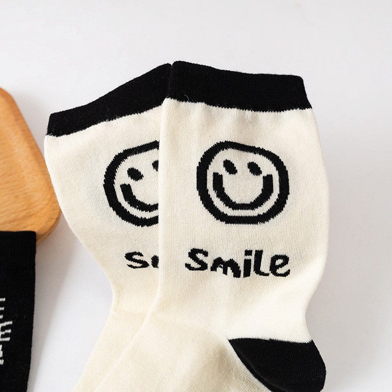 黑白笑脸袜子女ins潮可爱街头学院风中筒袜潮流日系运动长袜外穿