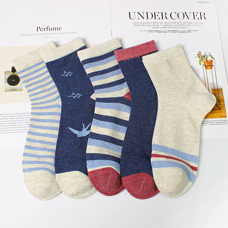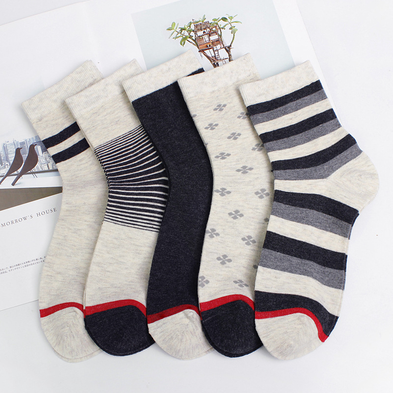 秋冬季棉袜子 男士中筒袜日系简约户外保暖袜子 运动长袜厂家批发