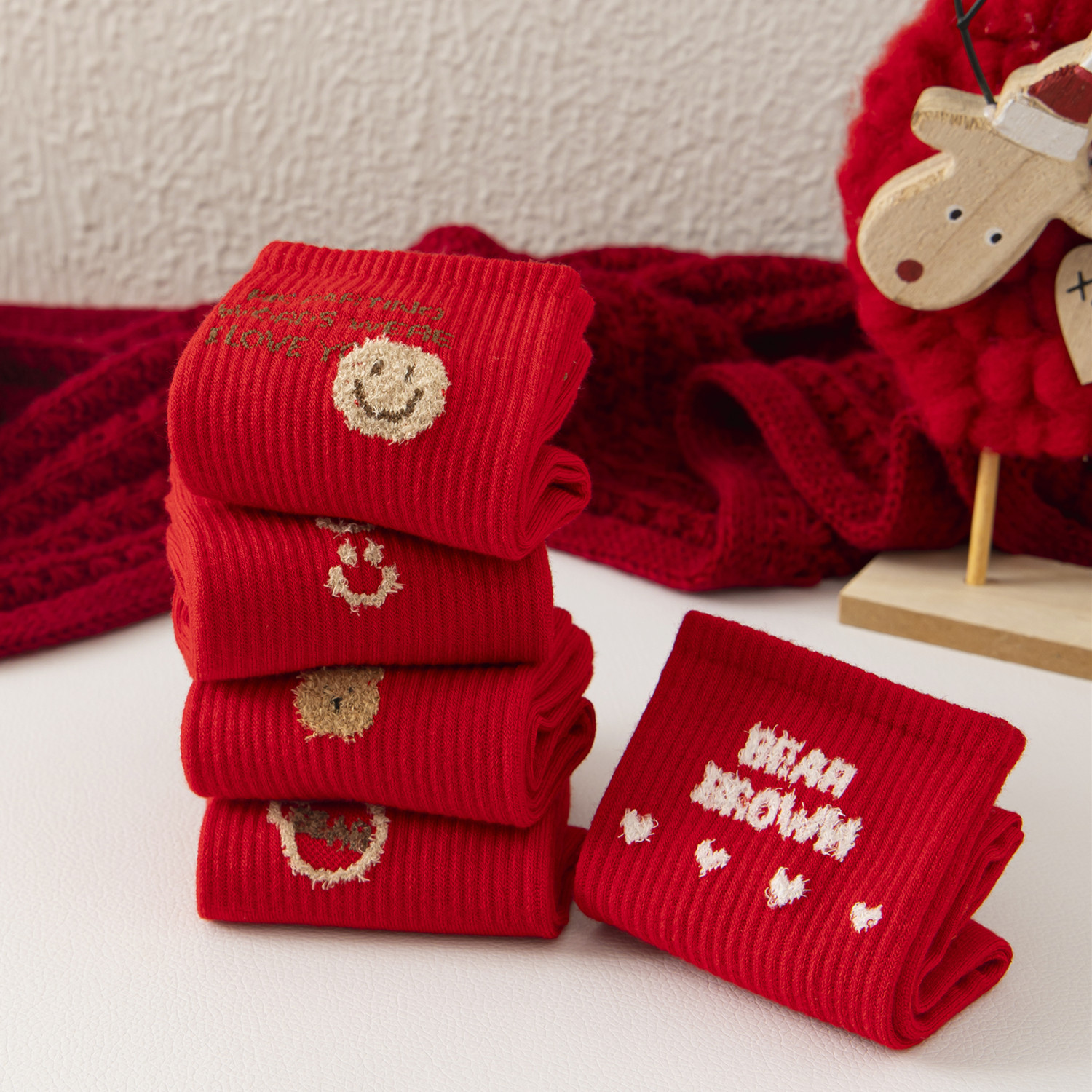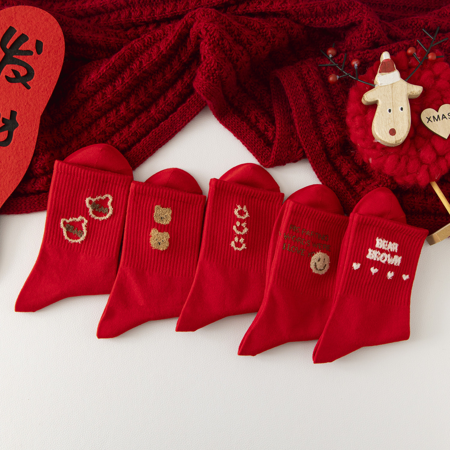龙年本命年袜子女卡通个性中筒袜秋冬款新年礼物可爱红袜子女