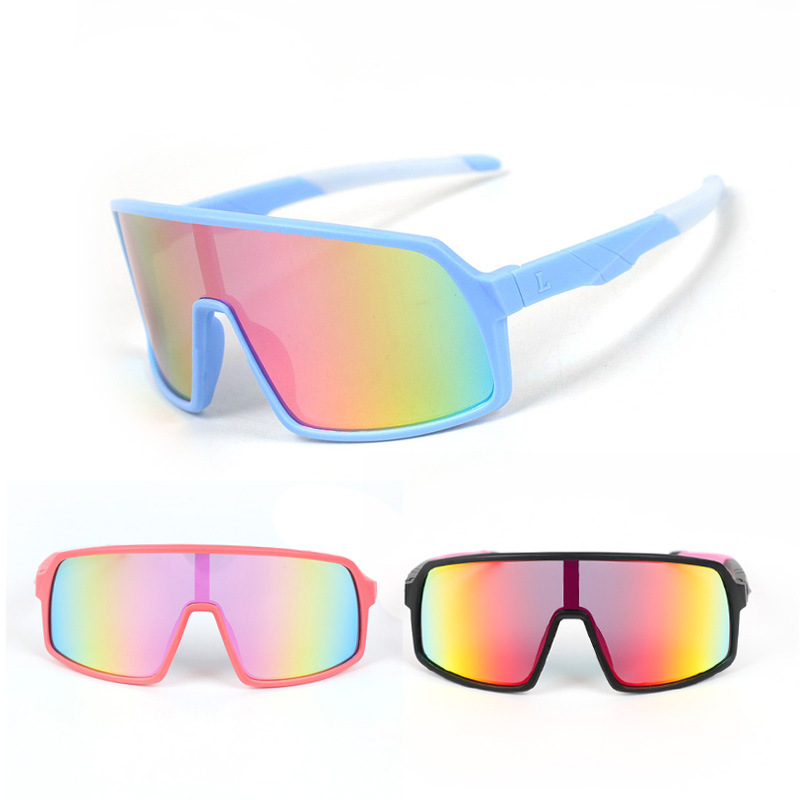 儿童炫彩运动骑行太阳镜跨境货源小孩彩色连体镜片大框防紫外线潮