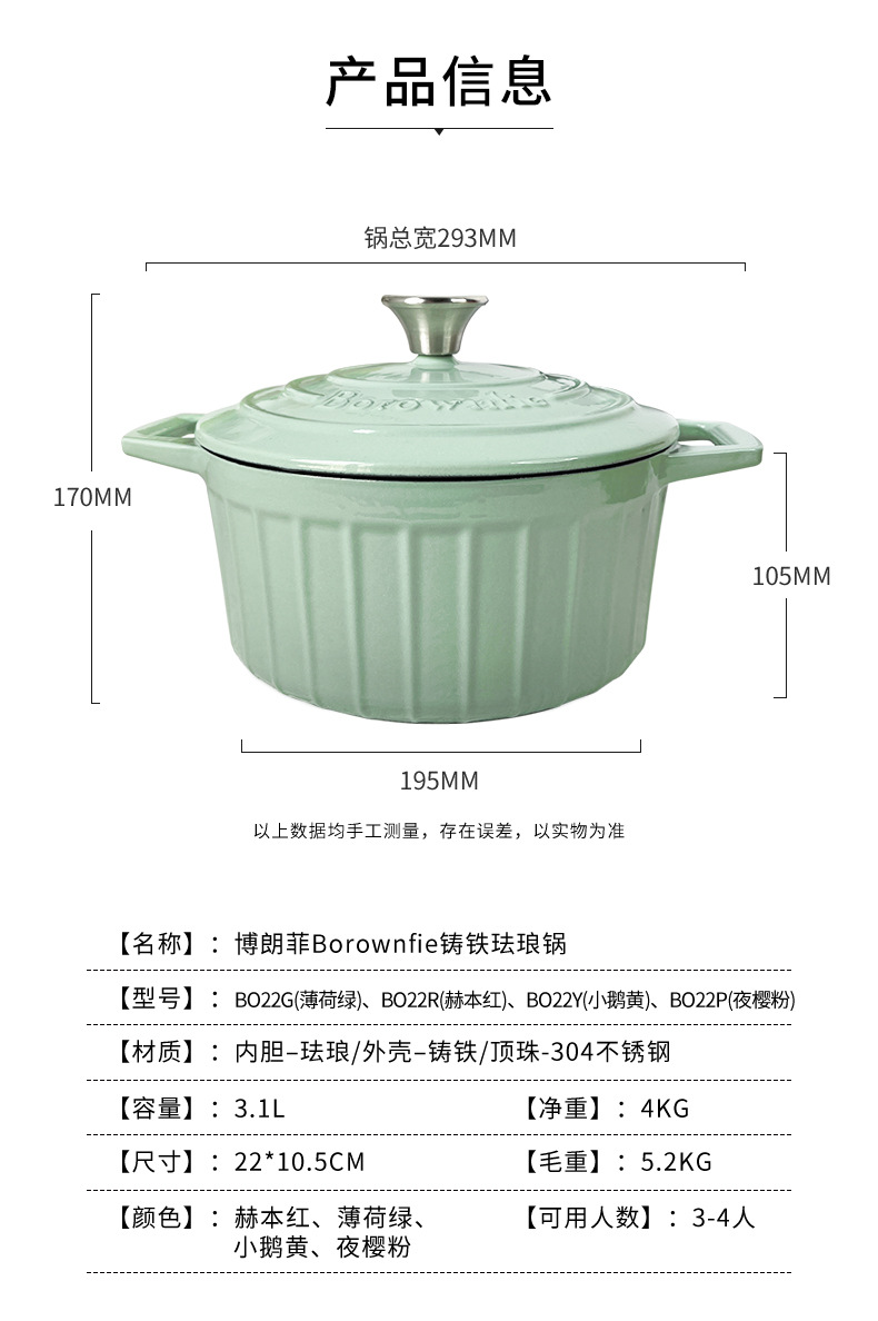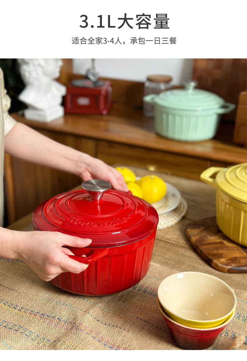 礼品批发铸铁珐琅锅博朗菲双耳搪瓷不粘汤锅无涂层微压焖炖珐琅锅