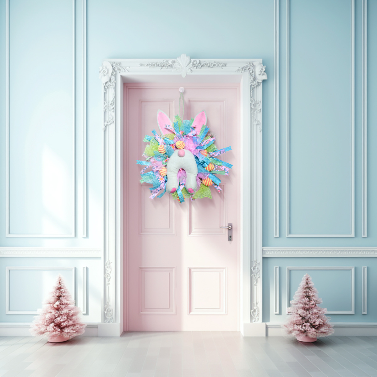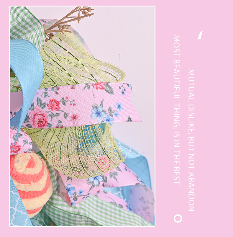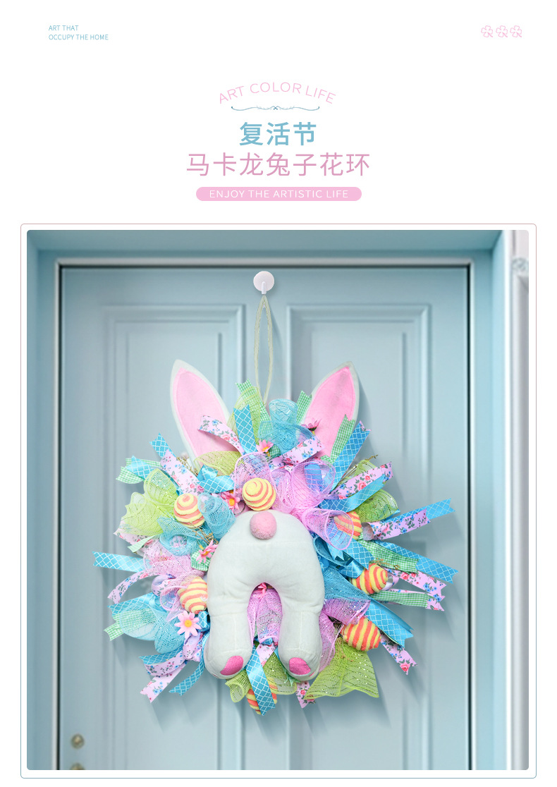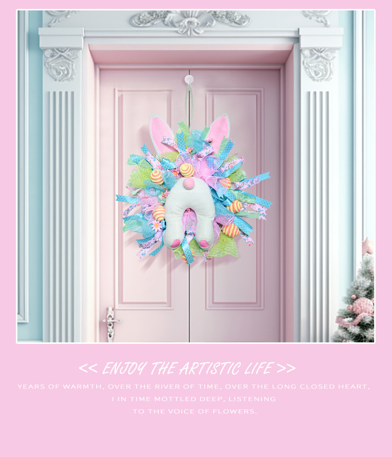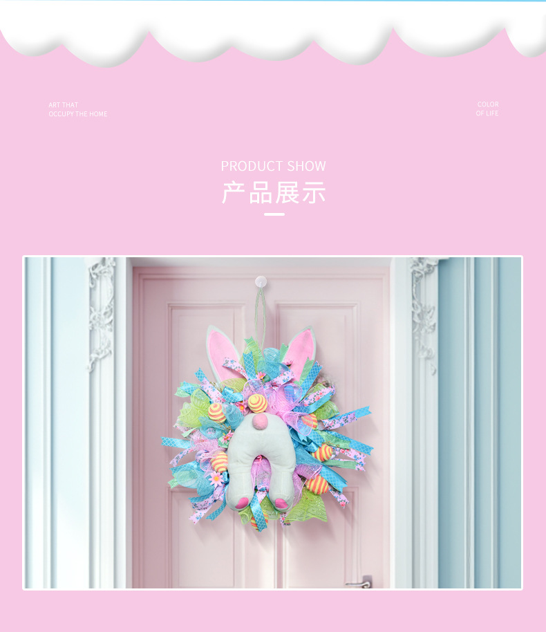 复活节兔子花环仿真春季动物门挂田园风家居花圈挂件圣诞节装饰品