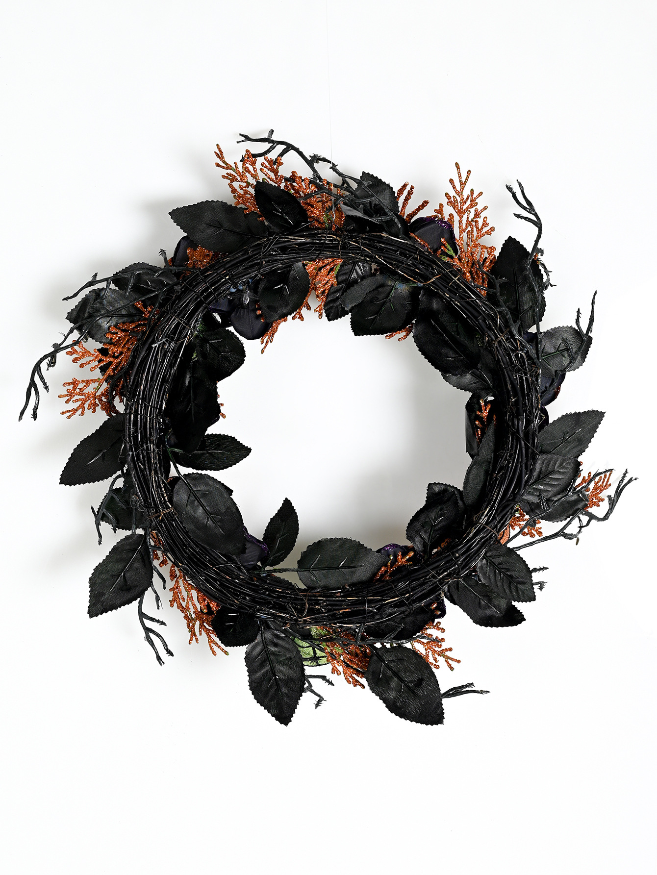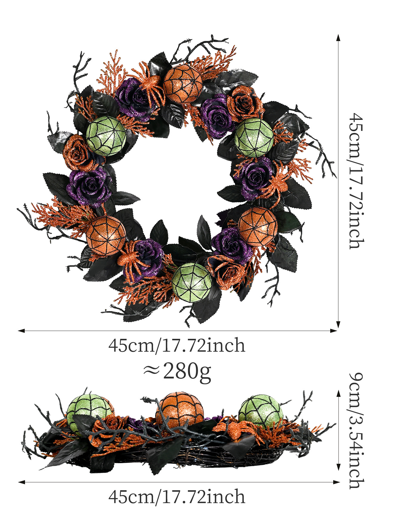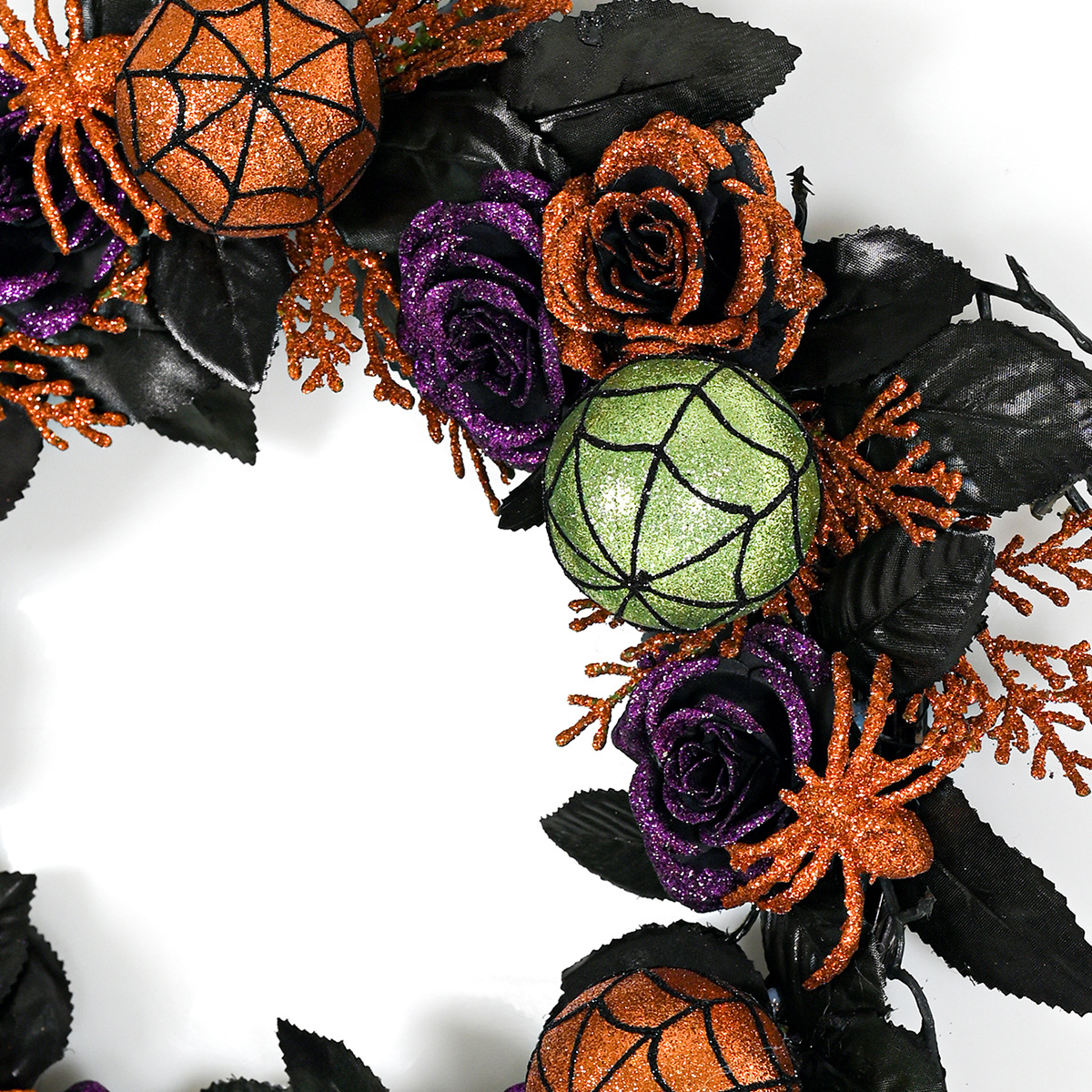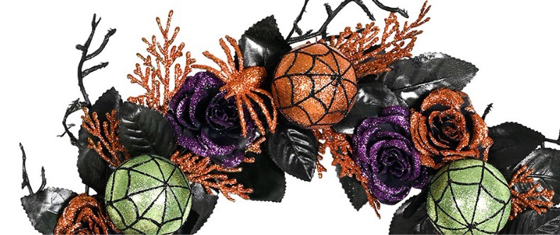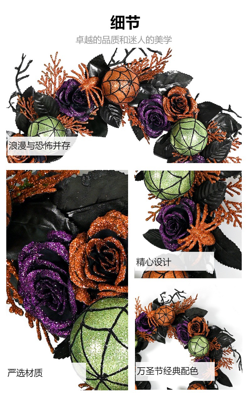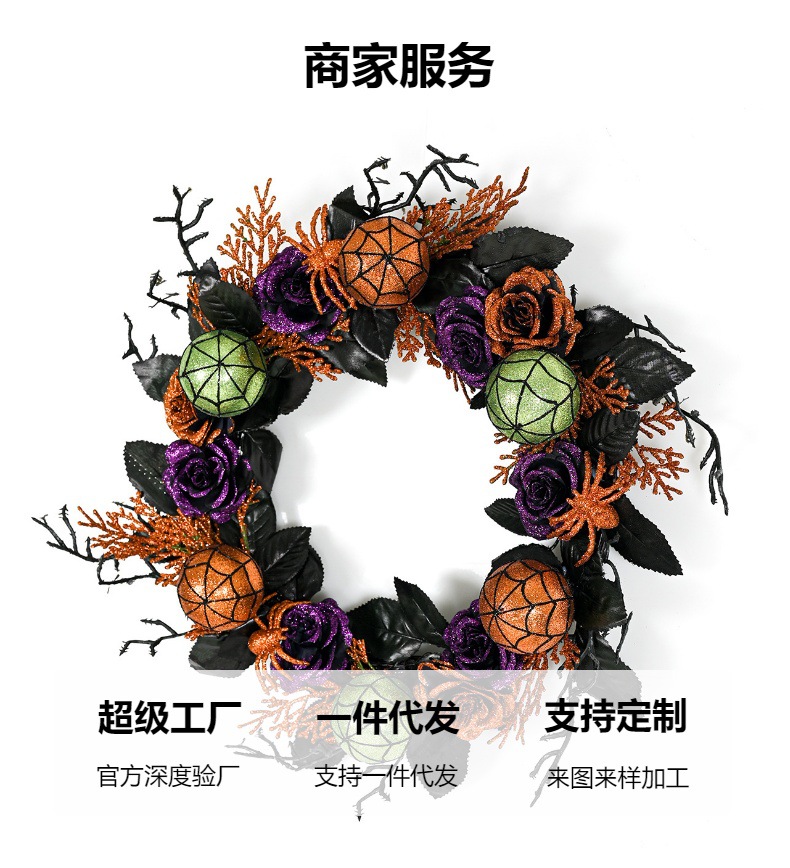 跨境藤圈装饰蜘蛛网枯枝花圈鬼节派对布置挂件挂饰新款万圣节花环