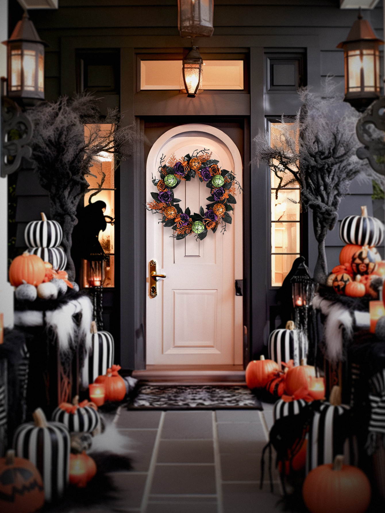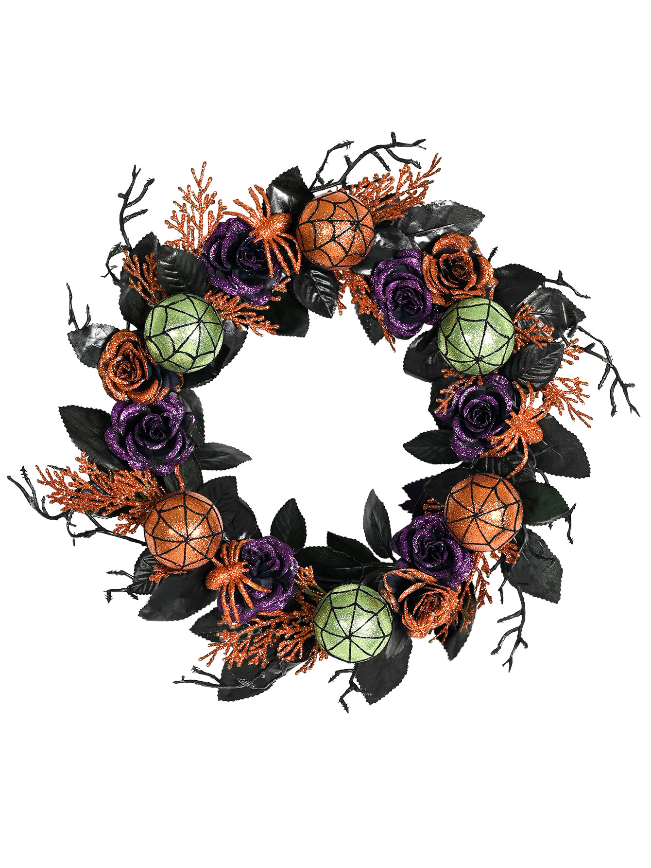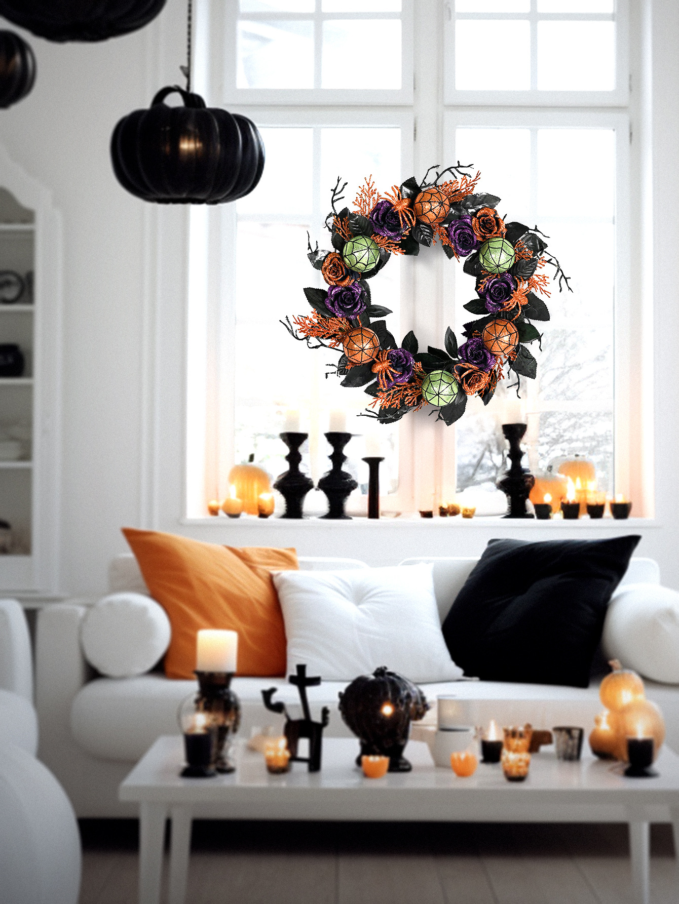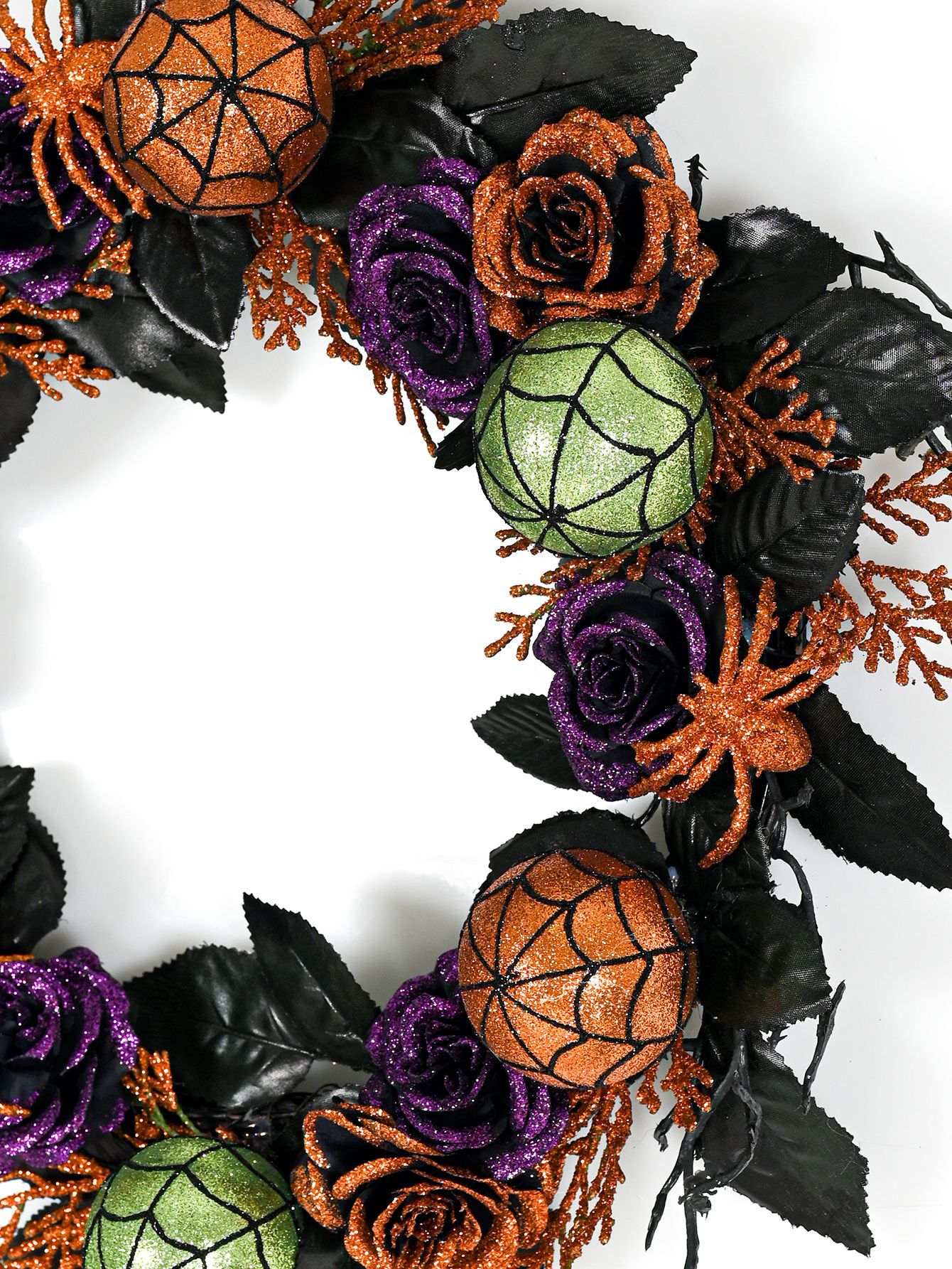 跨境藤圈装饰蜘蛛网枯枝花圈鬼节派对布置挂件挂饰新款万圣节花环