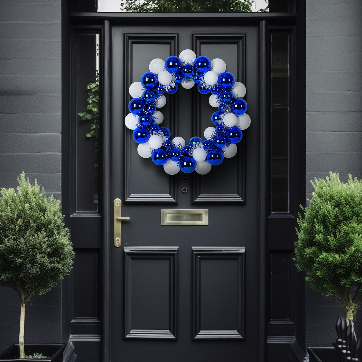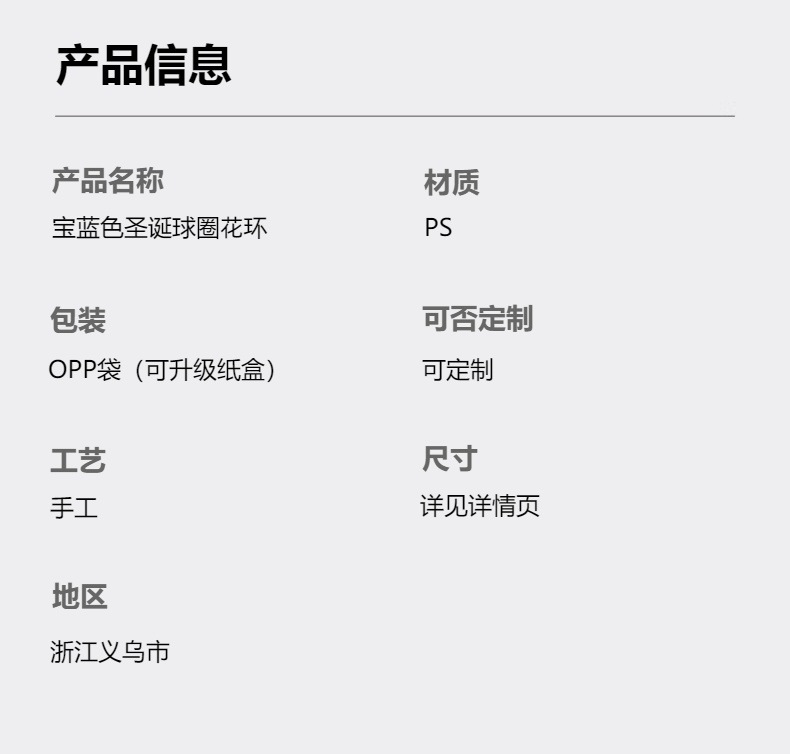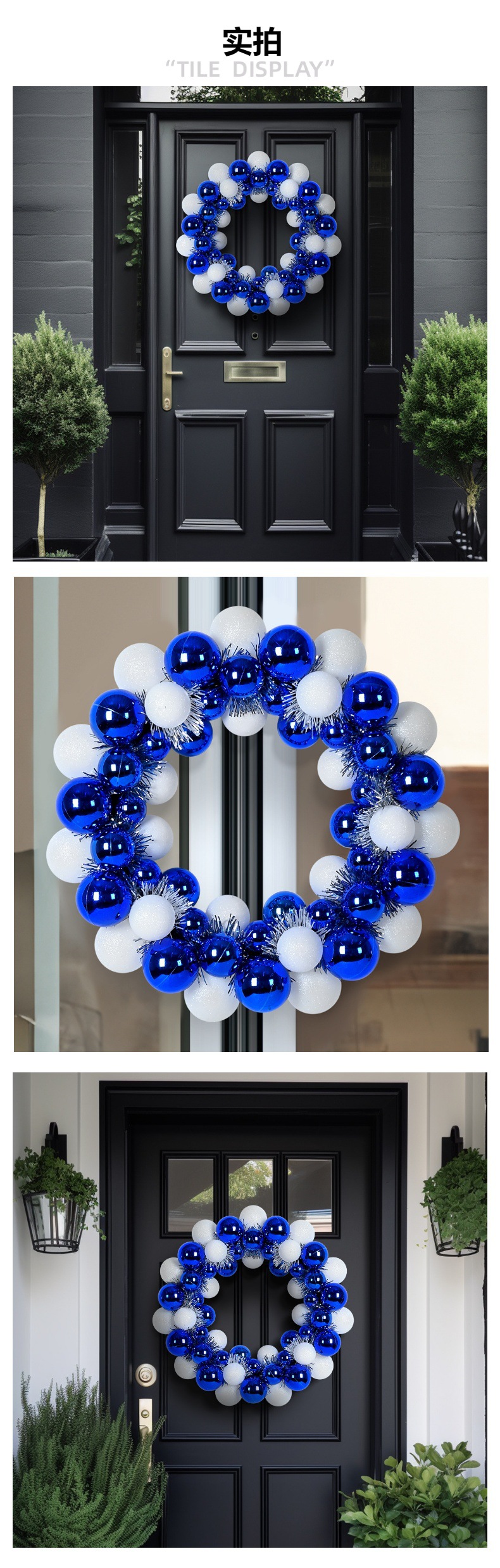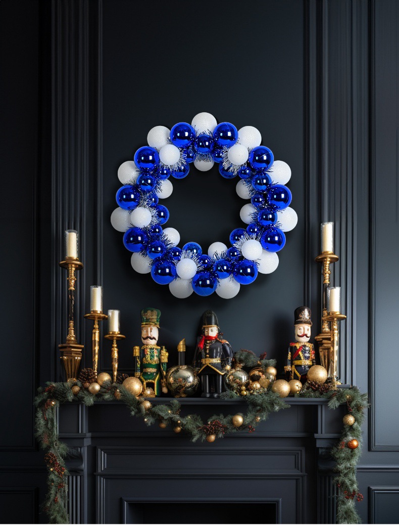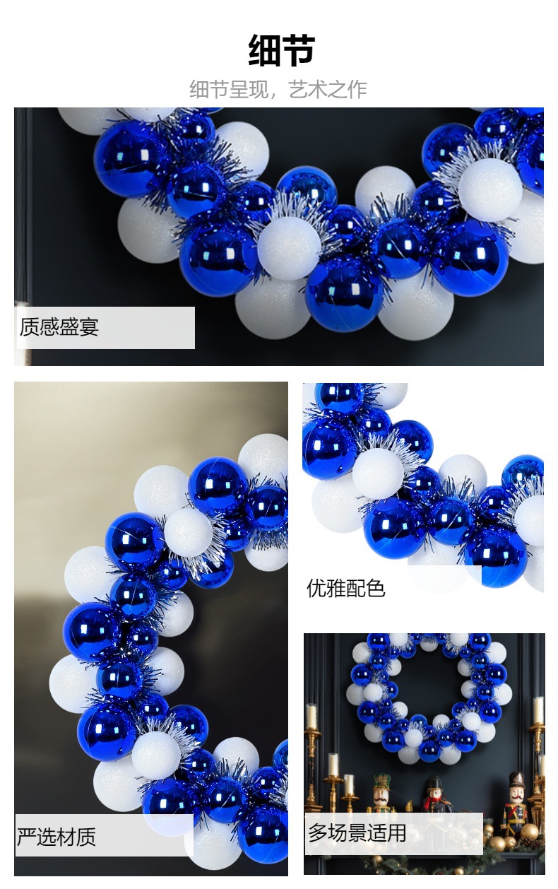 圣诞节装饰品35cm塑料蓝白色电镀亮光派对布置挂件挂饰圣诞球花环