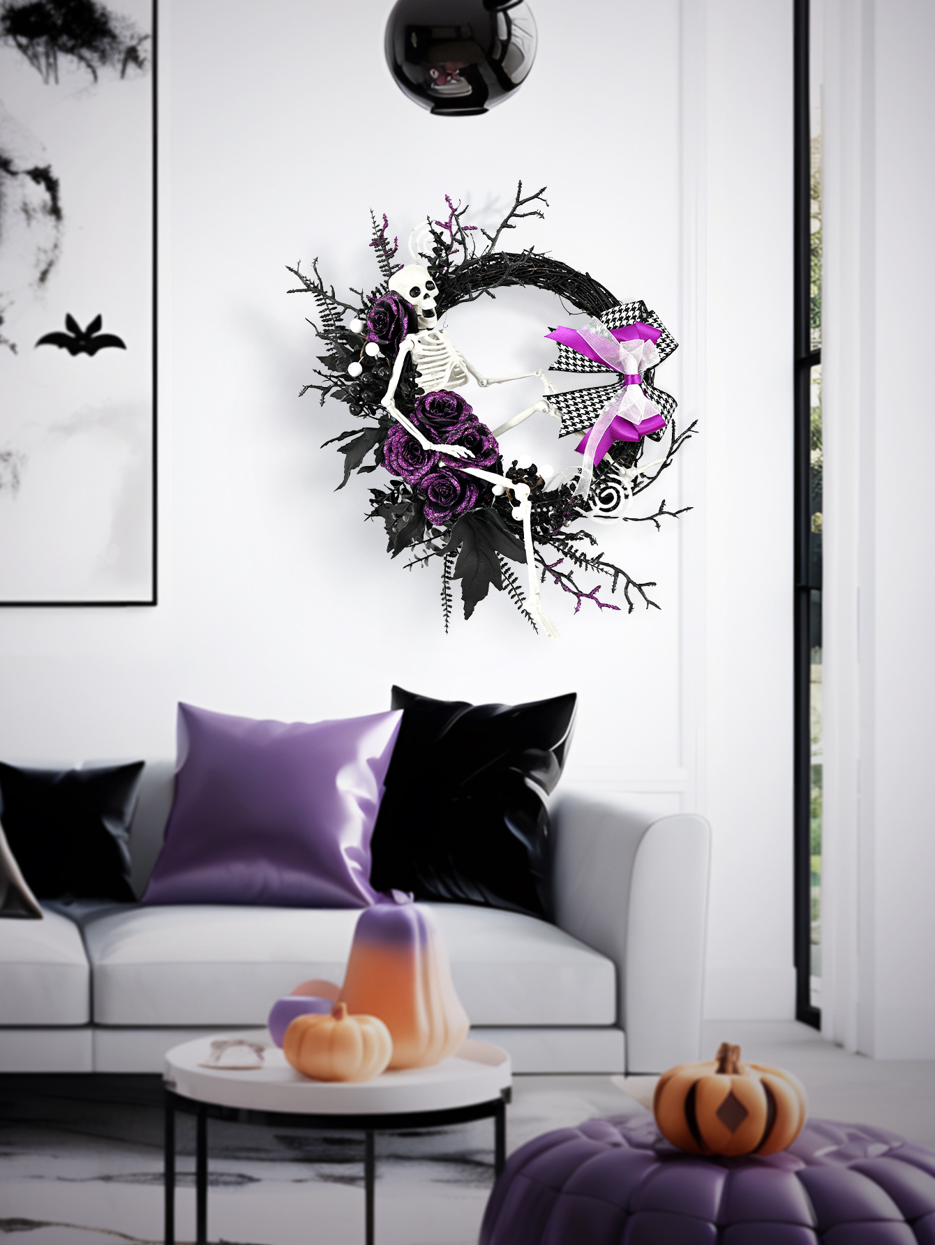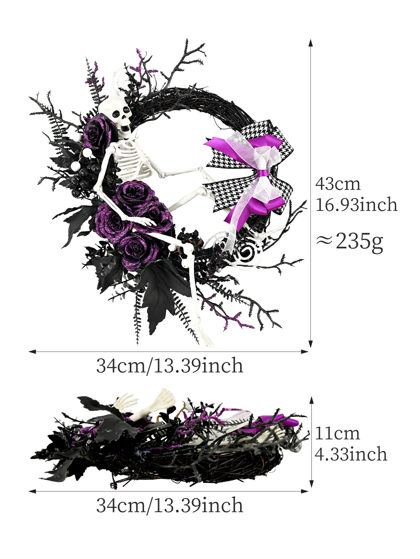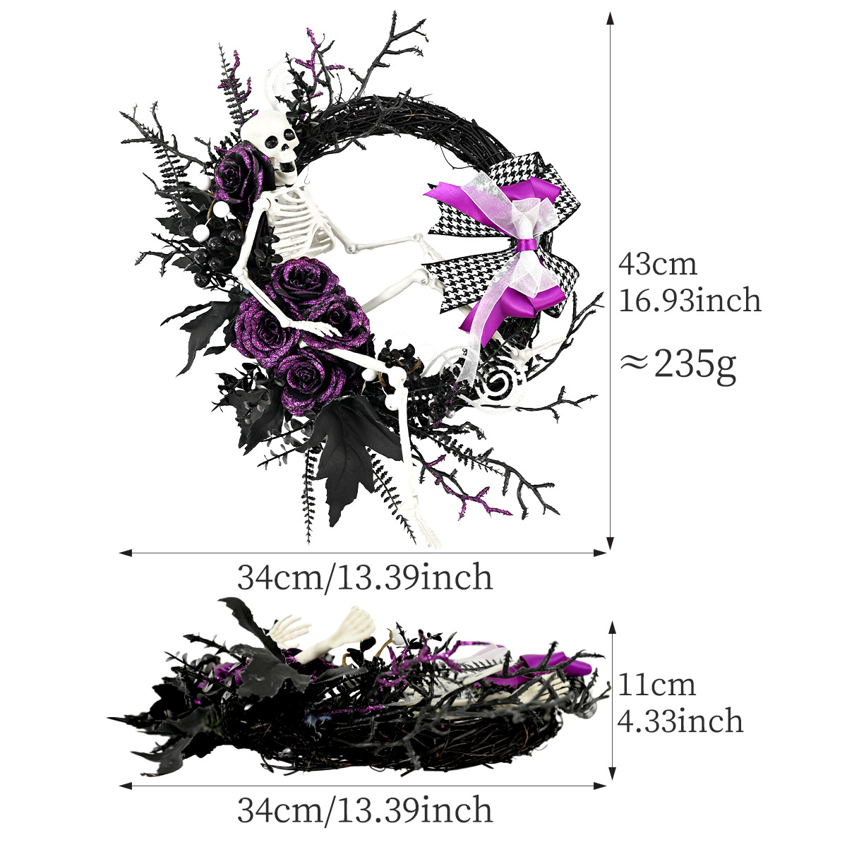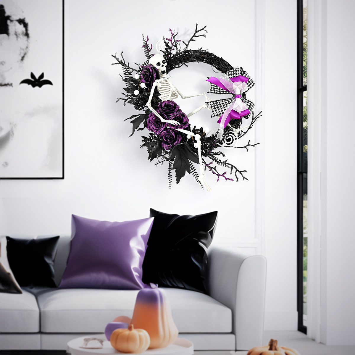 跨境鬼节装饰花圈骷髅蝴蝶结枫叶藤圈派对鬼屋布置道具万圣节花环