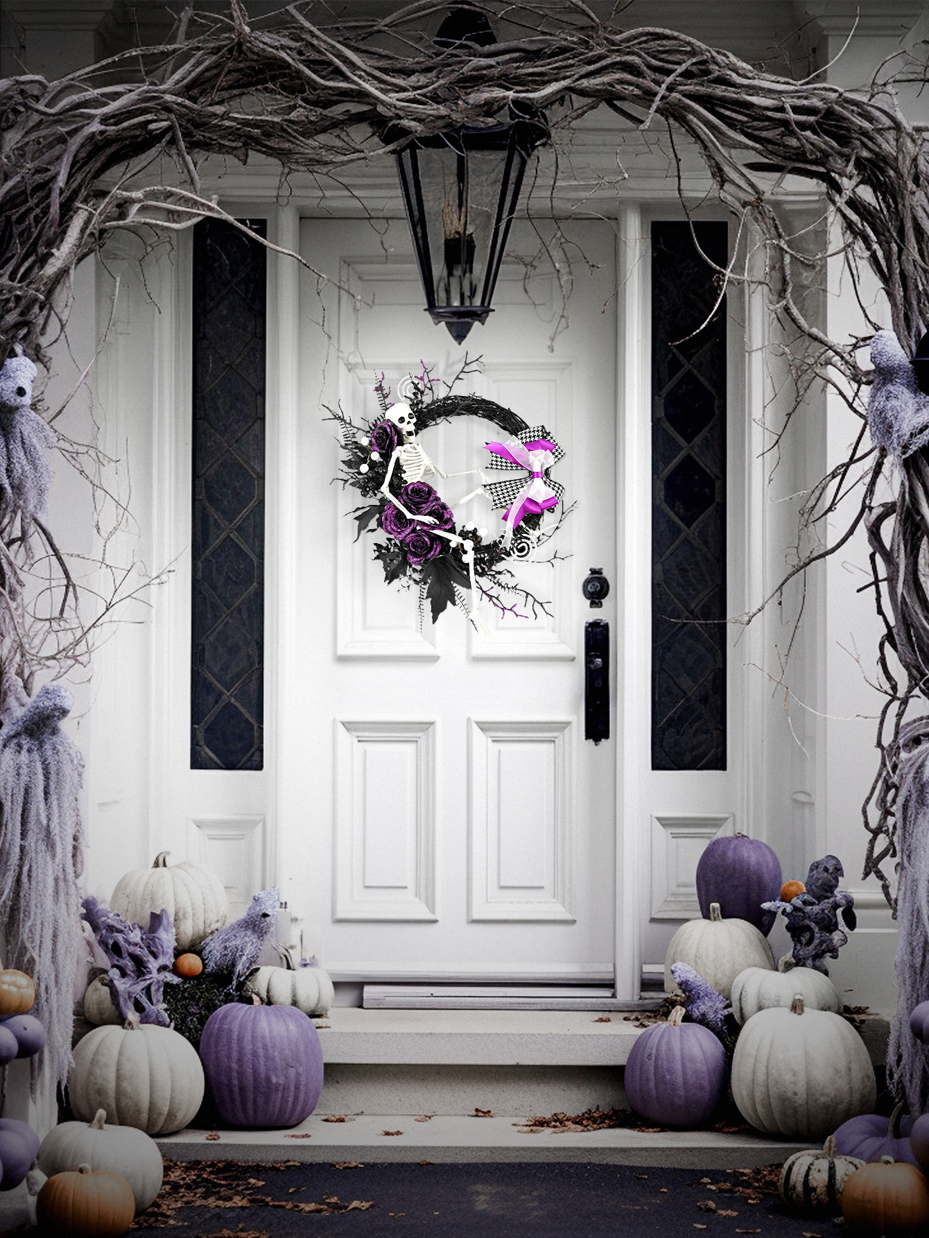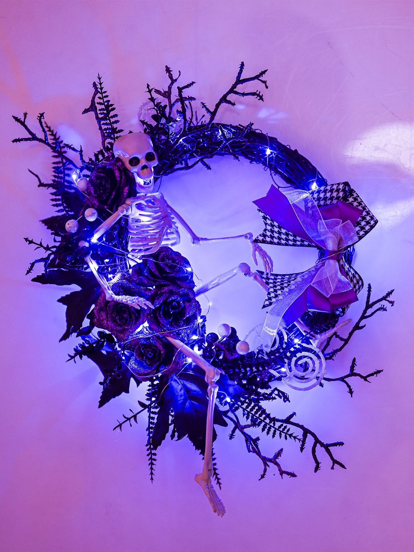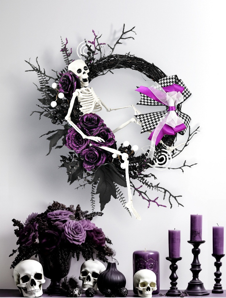 跨境鬼节装饰花圈骷髅蝴蝶结枫叶藤圈派对鬼屋布置道具万圣节花环