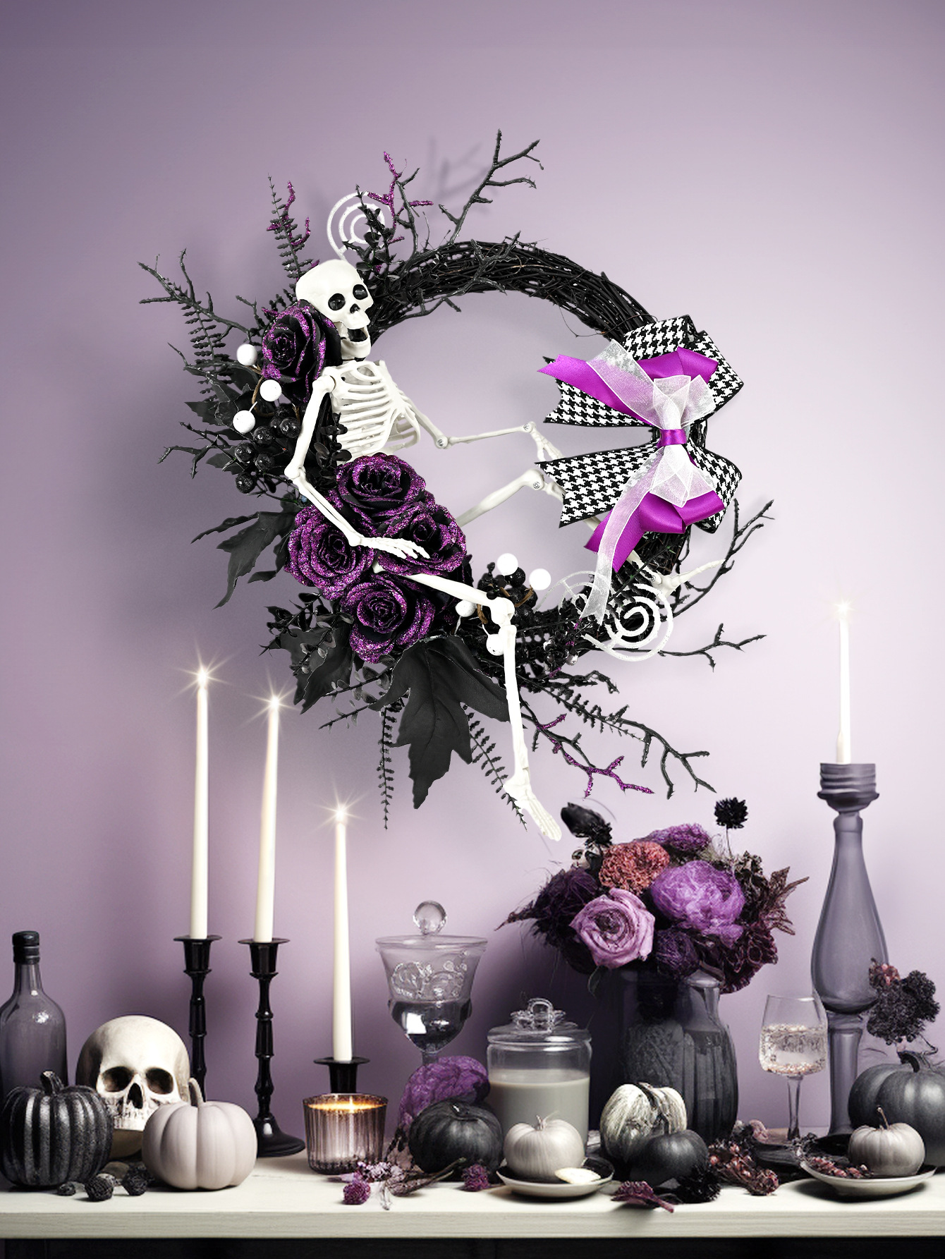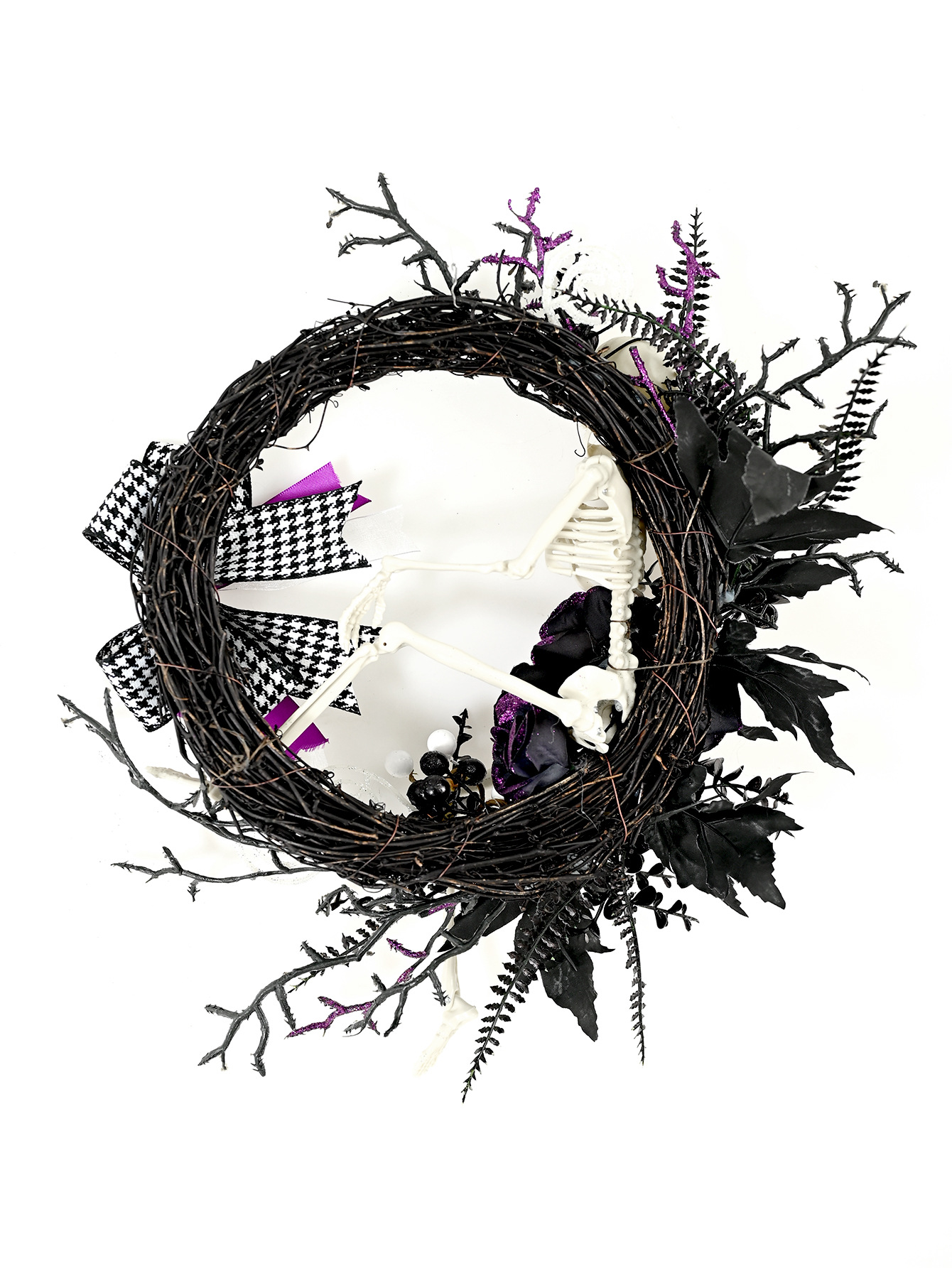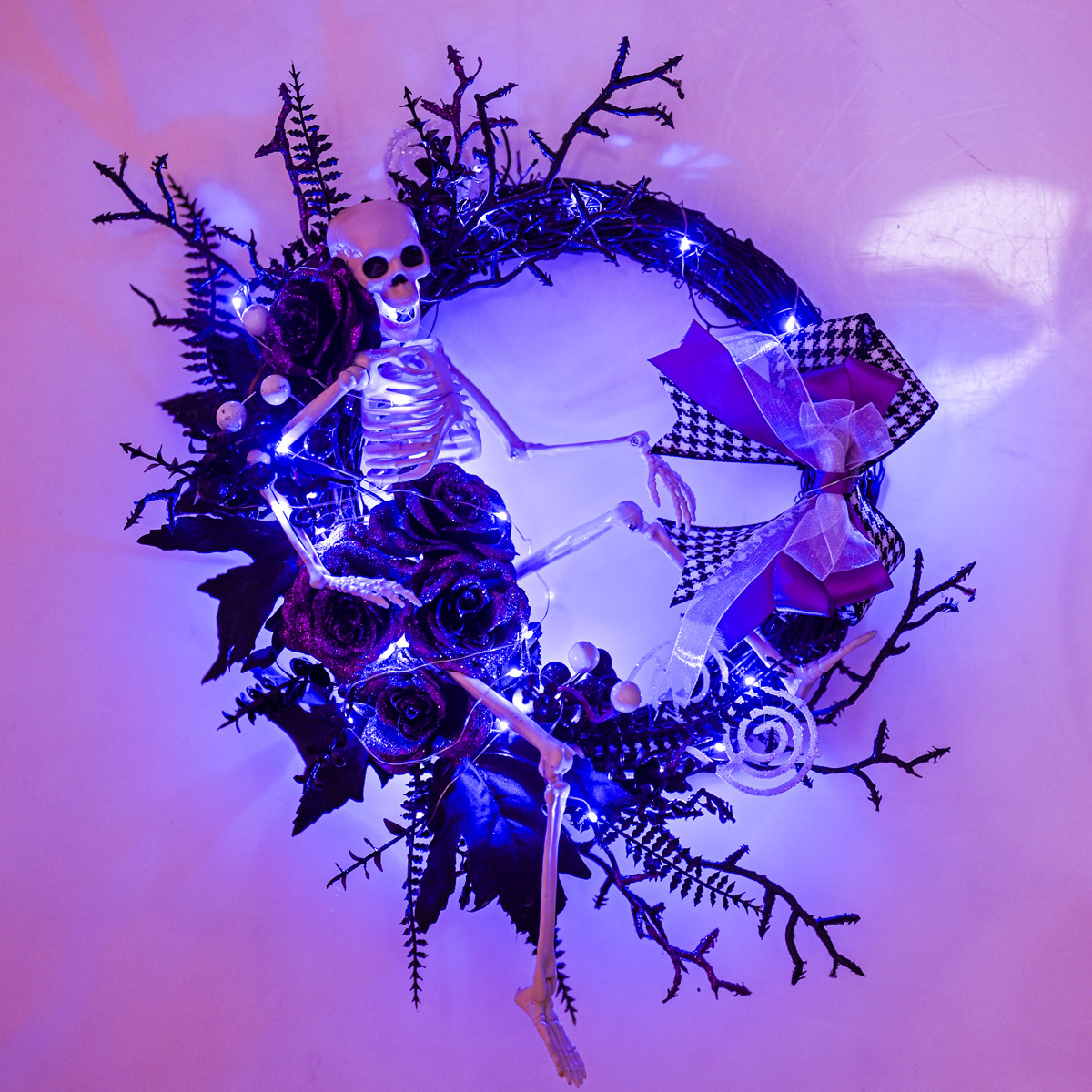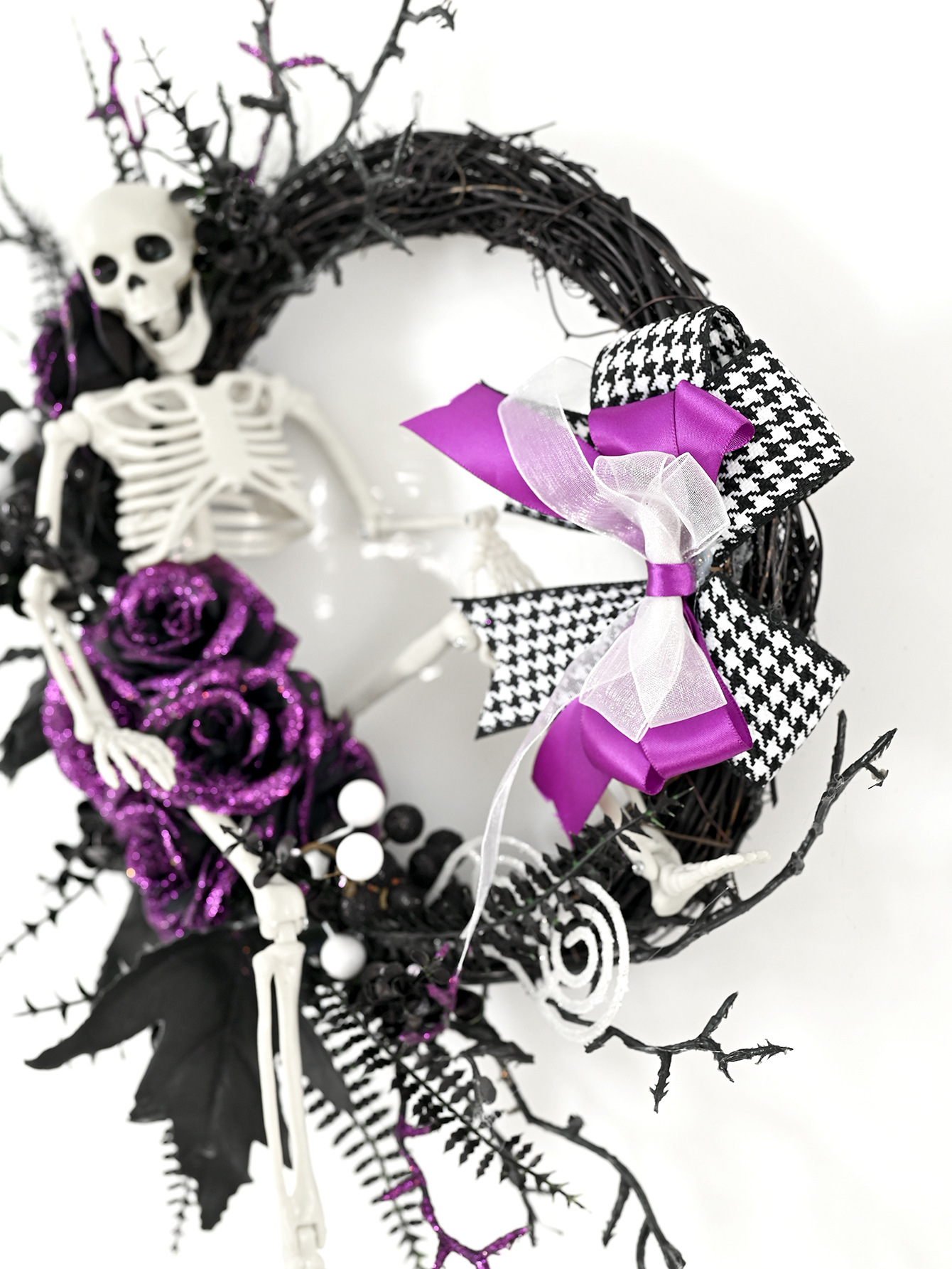 跨境鬼节装饰花圈骷髅蝴蝶结枫叶藤圈派对鬼屋布置道具万圣节花环