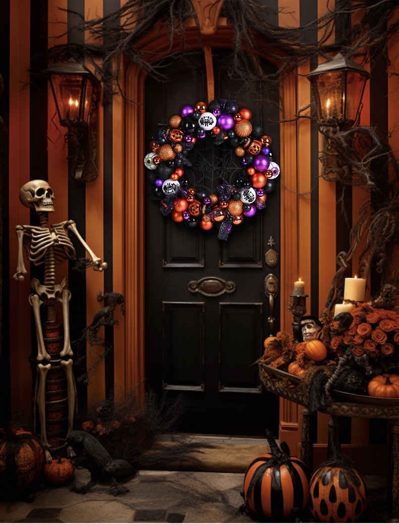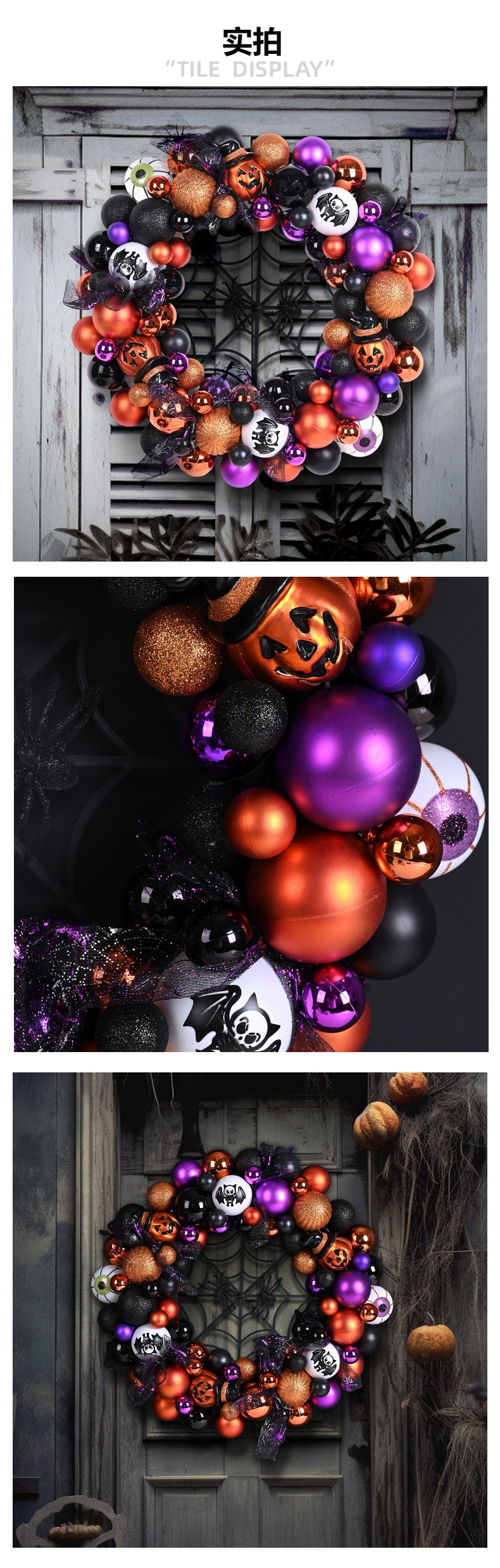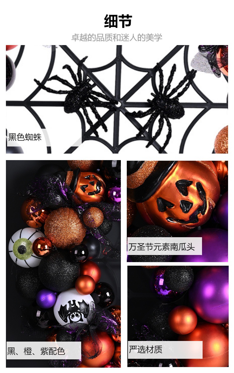 跨境万圣节装饰品南瓜塑料派对圣诞球摆件挂件藤圈花圈万圣节花环