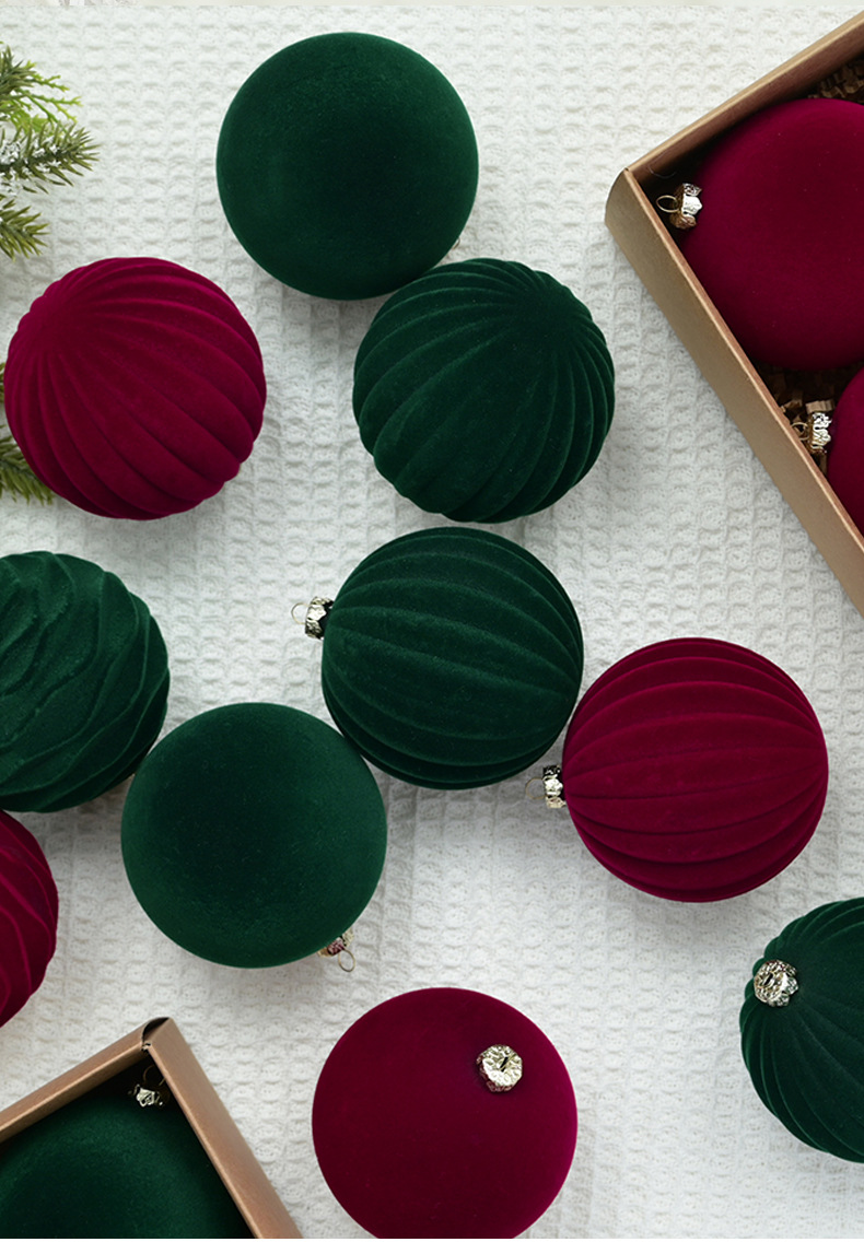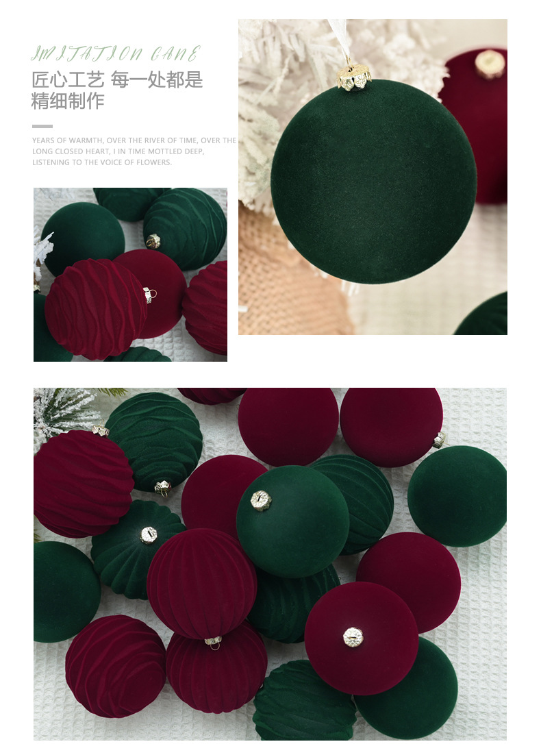 跨境新品8cm植绒圣诞球圣诞树挂件酒红墨绿圣诞植绒球圣诞装饰品