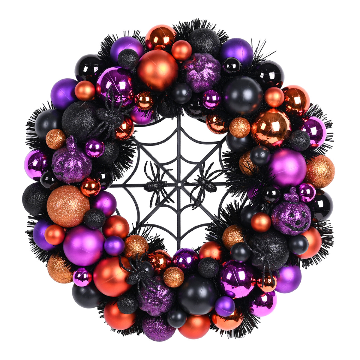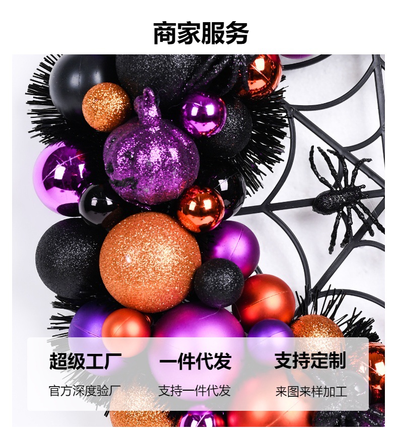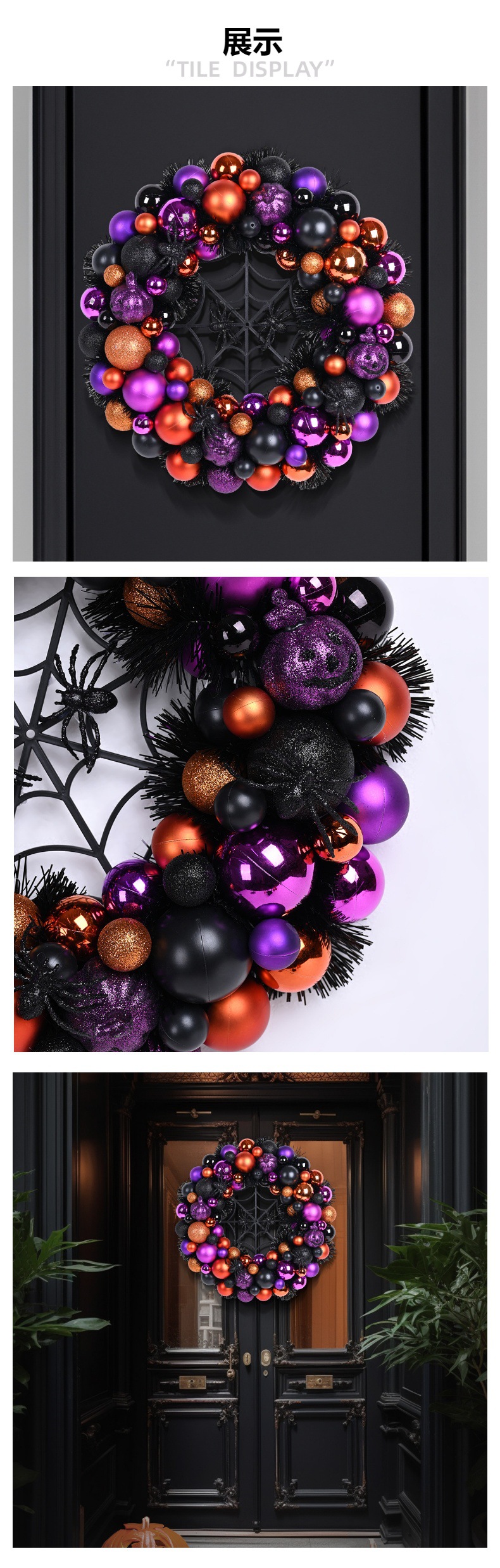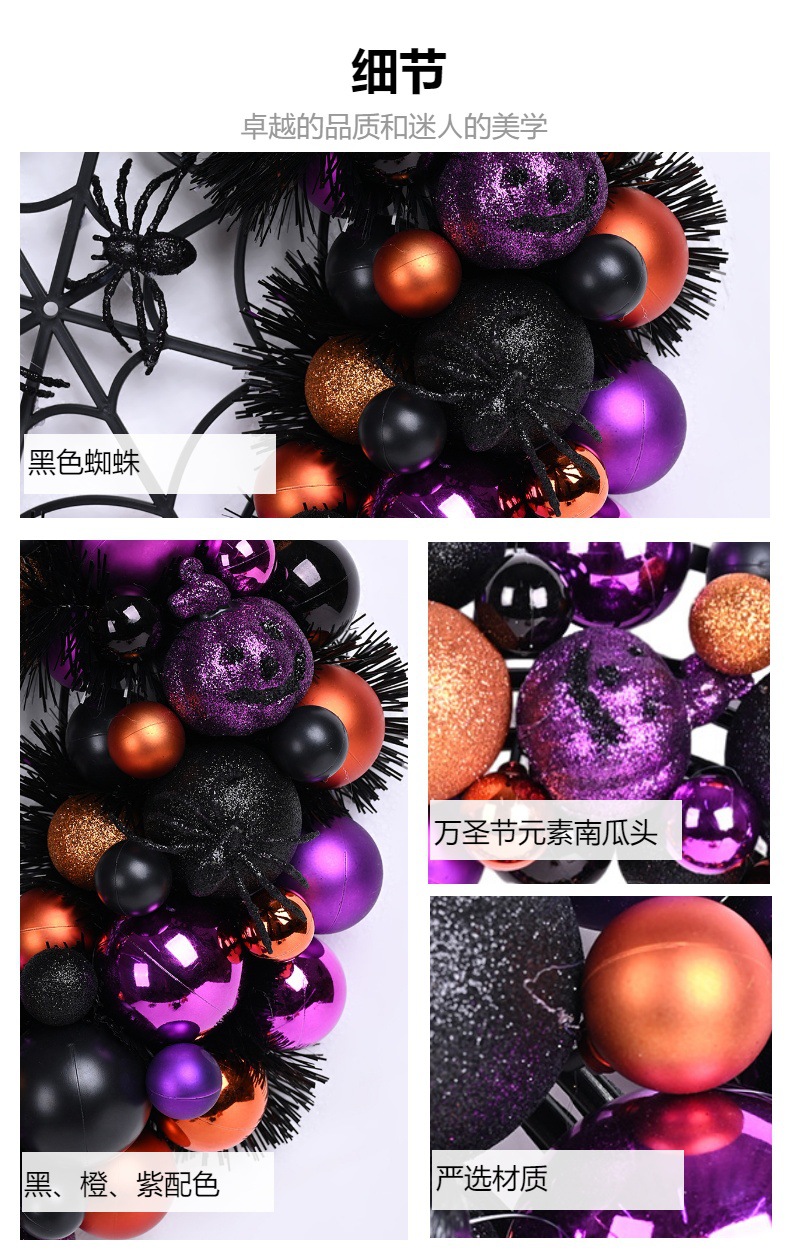 跨境万圣节花环45CM球圈南瓜头塑料球蜘蛛聚会派对挂件装饰品藤圈