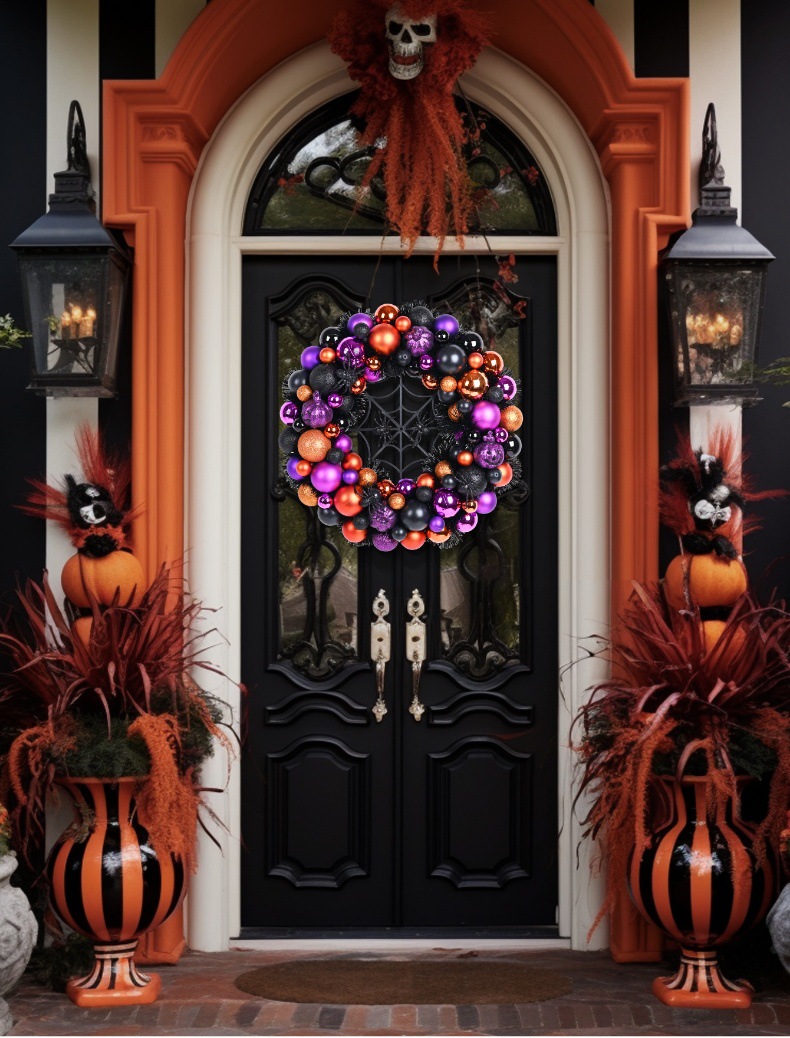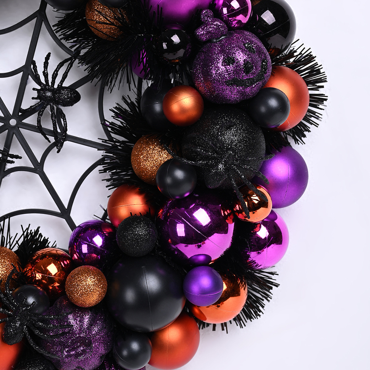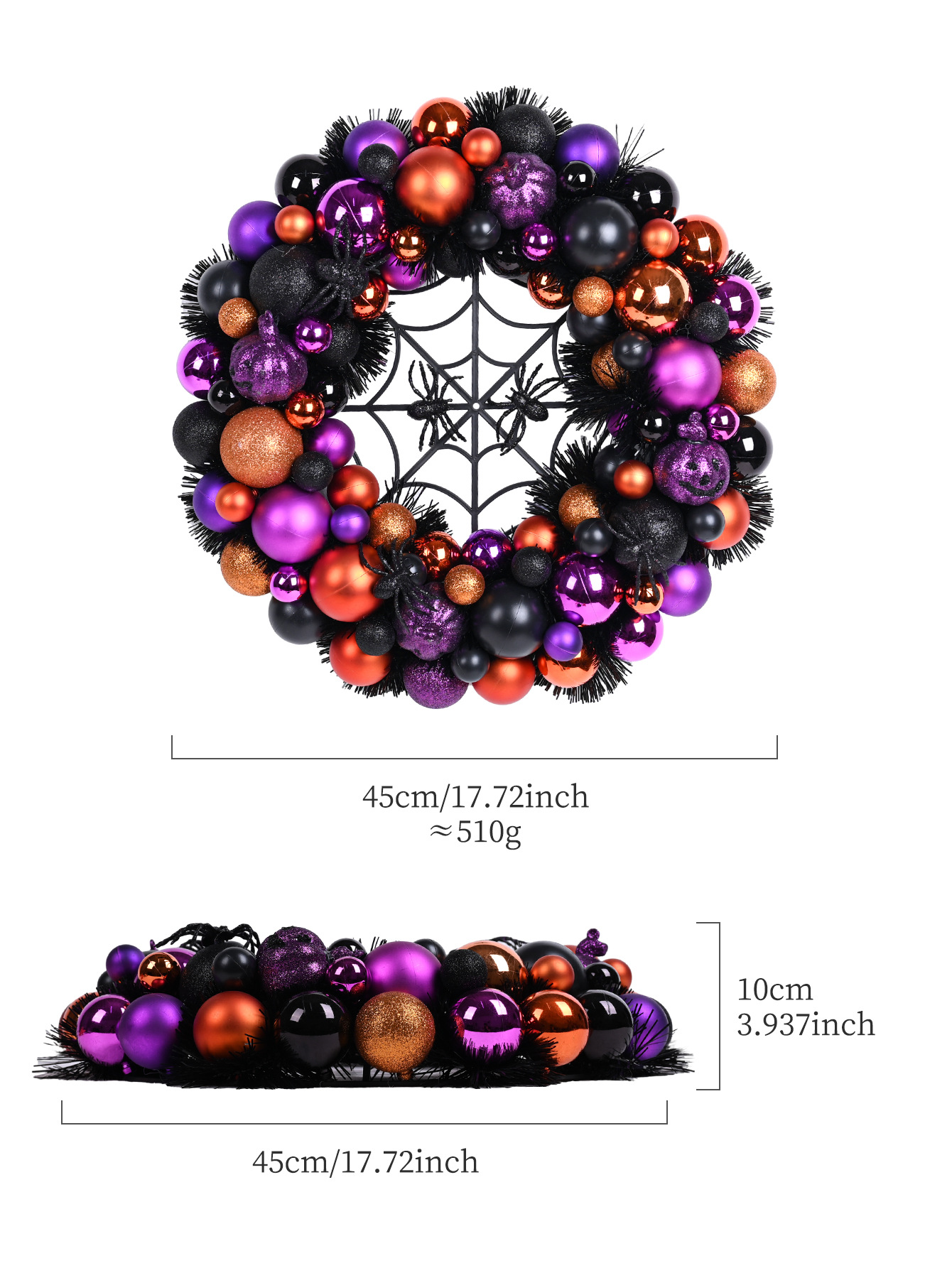 跨境万圣节花环45CM球圈南瓜头塑料球蜘蛛聚会派对挂件装饰品藤圈