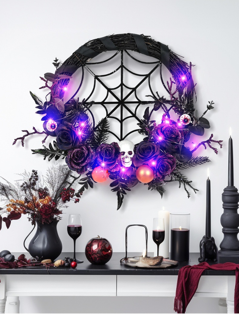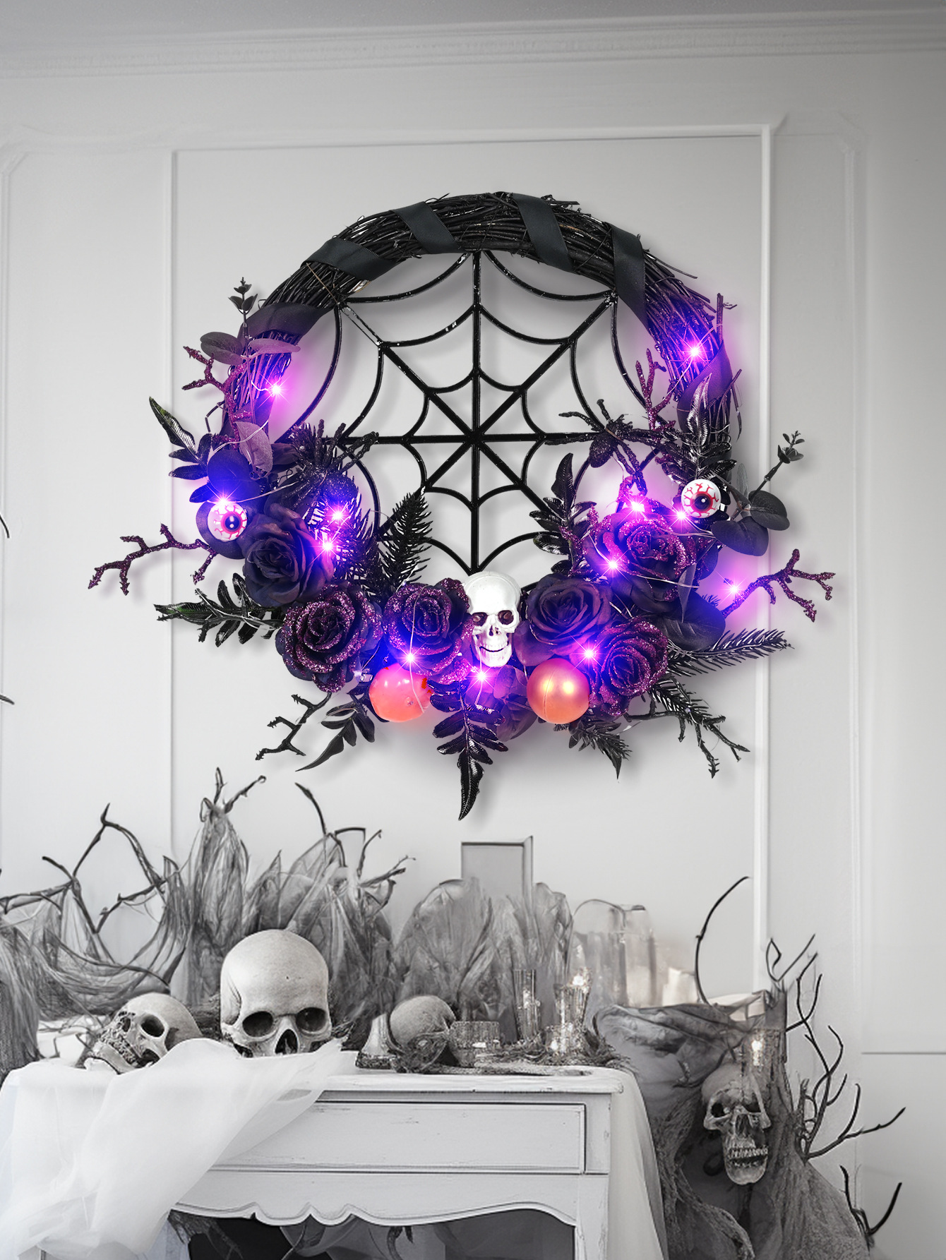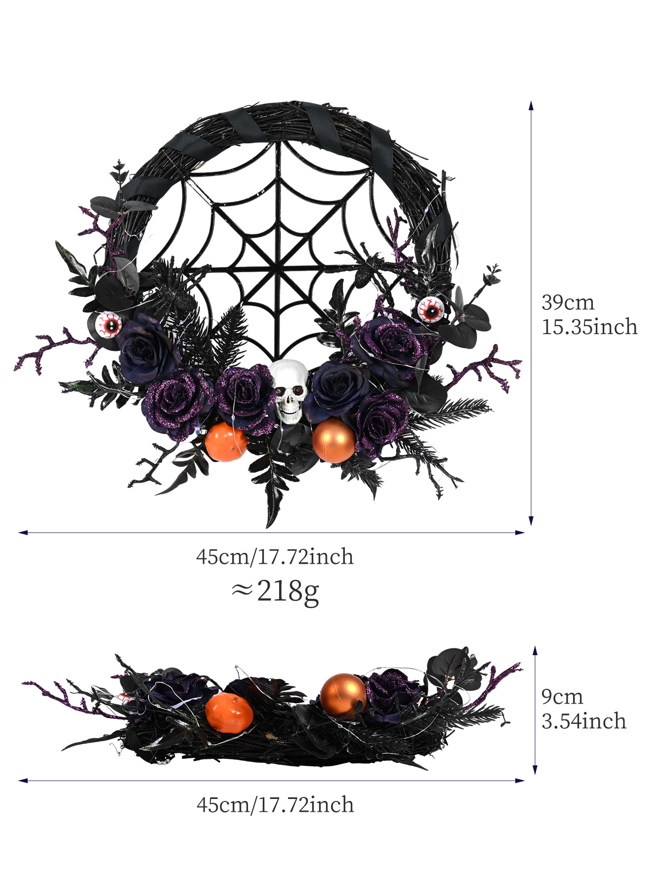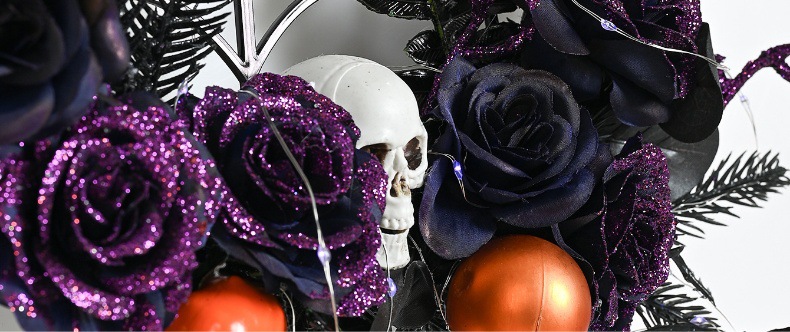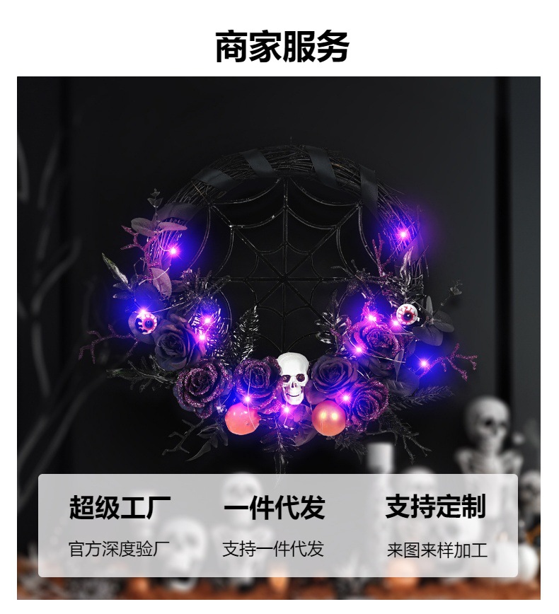 万圣节装饰品蜘蛛骷髅藤圈仿真花派对布置道具挂件手工万圣节花环