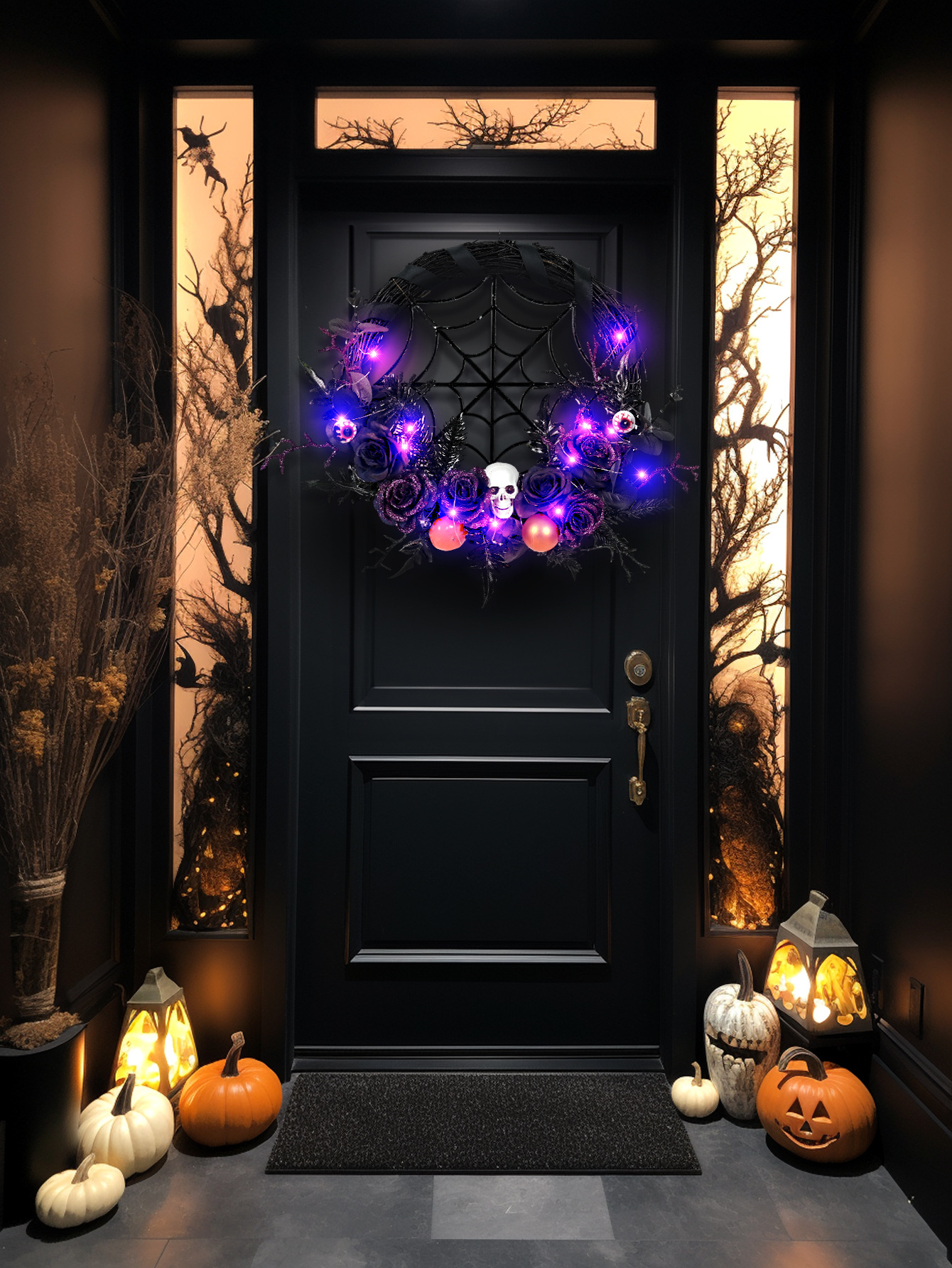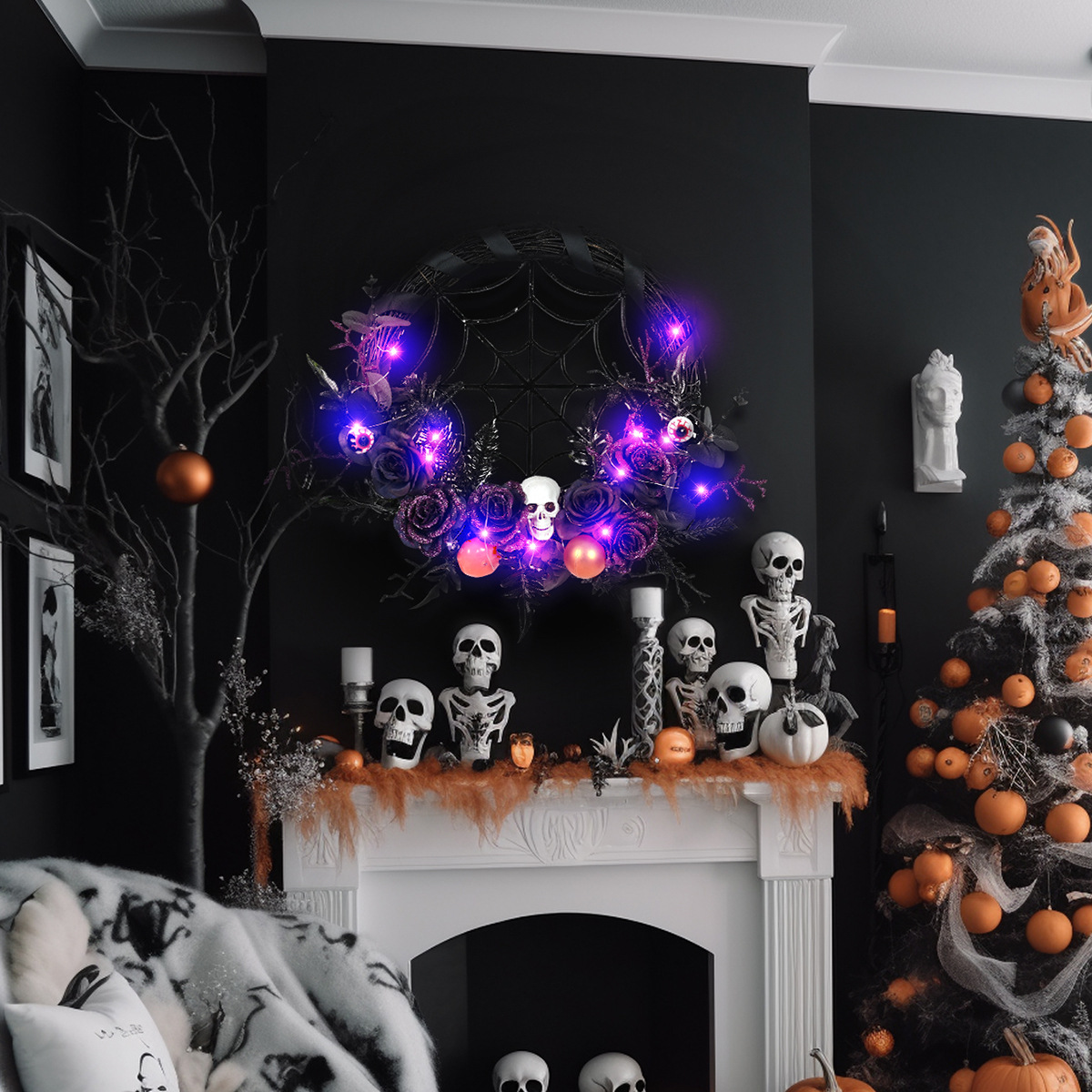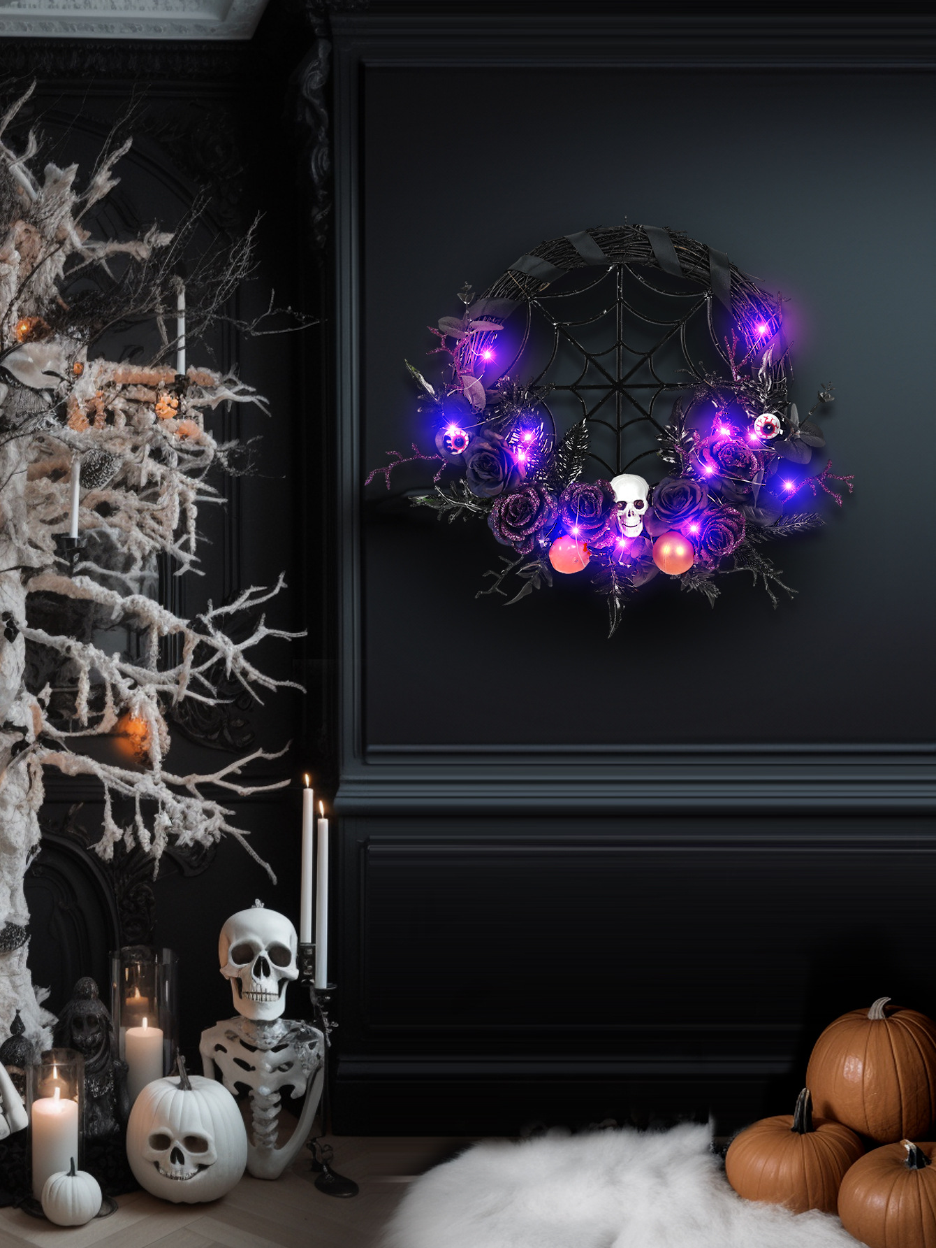 万圣节装饰品蜘蛛骷髅藤圈仿真花派对布置道具挂件手工万圣节花环