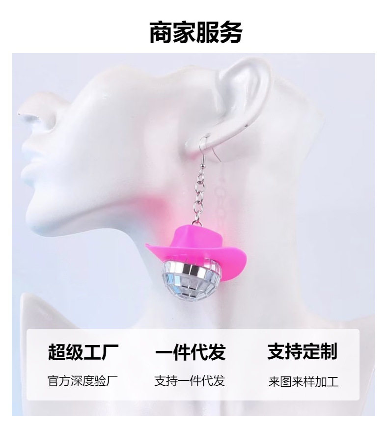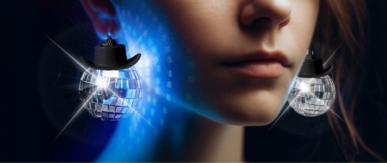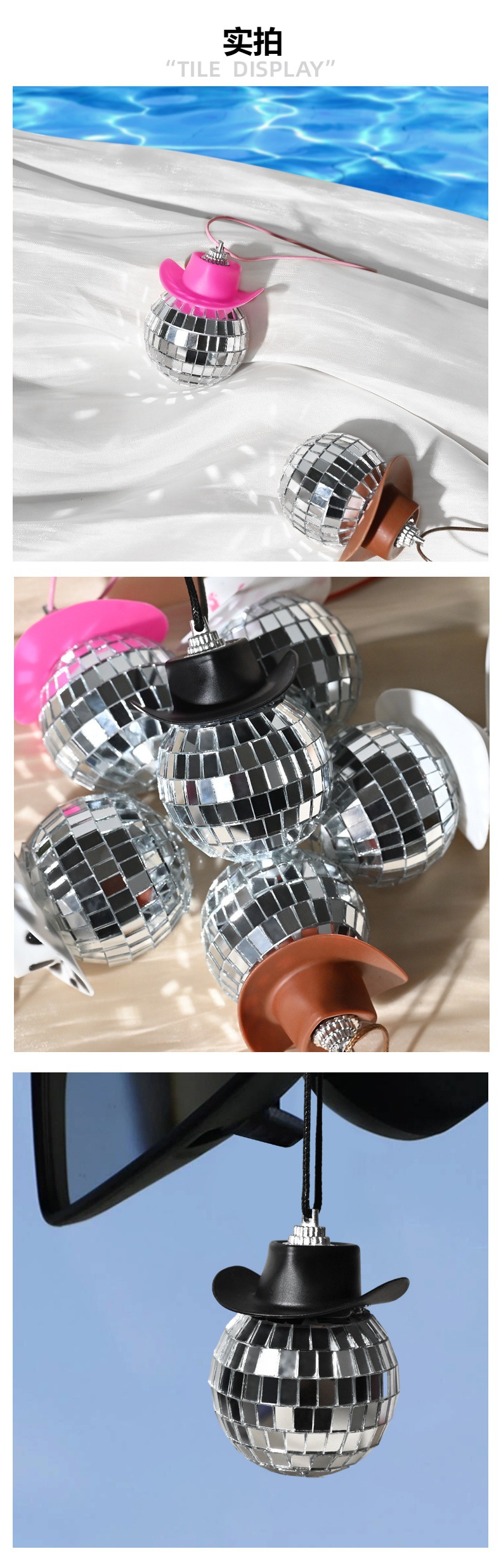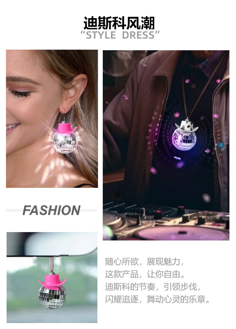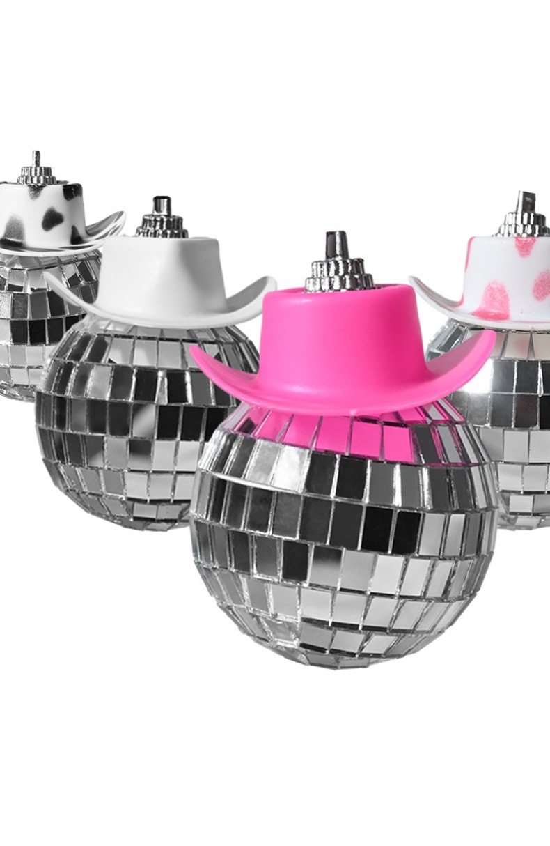 新品牛仔帽镜面球迪斯科球家居派对车载挂件玻璃反光镭射球装饰品