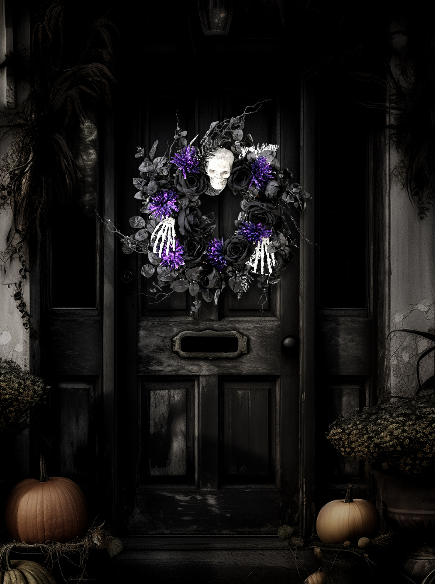 跨境万圣节花环节日手工欧美橱窗装饰品门饰家居挂件仿真花环藤圈