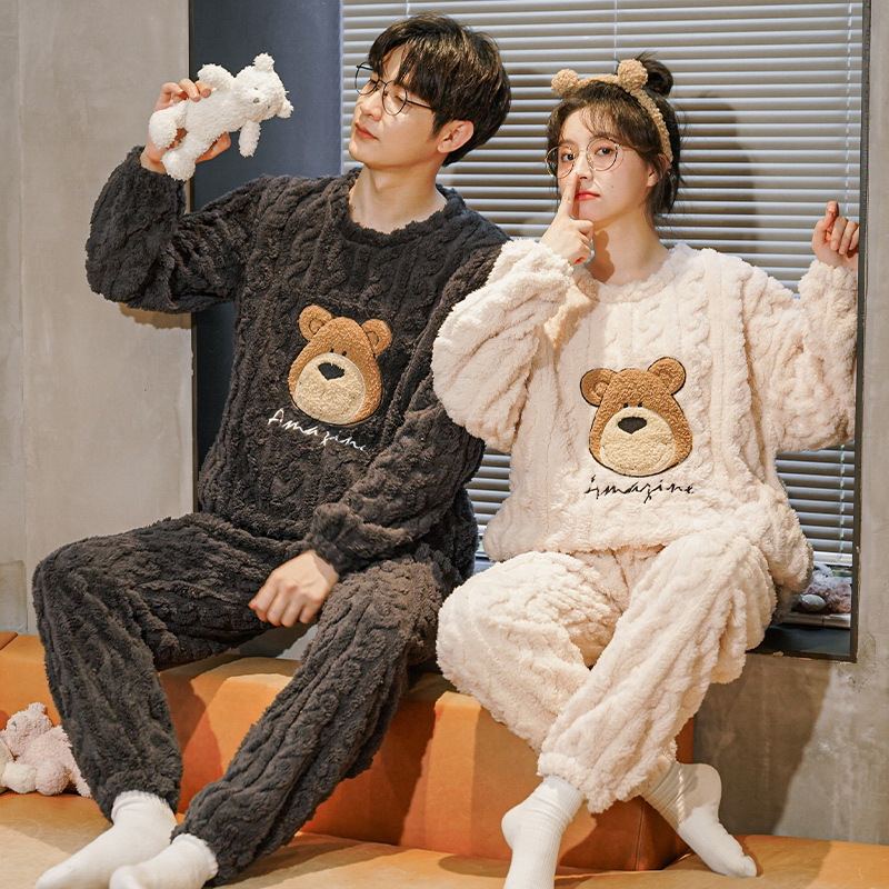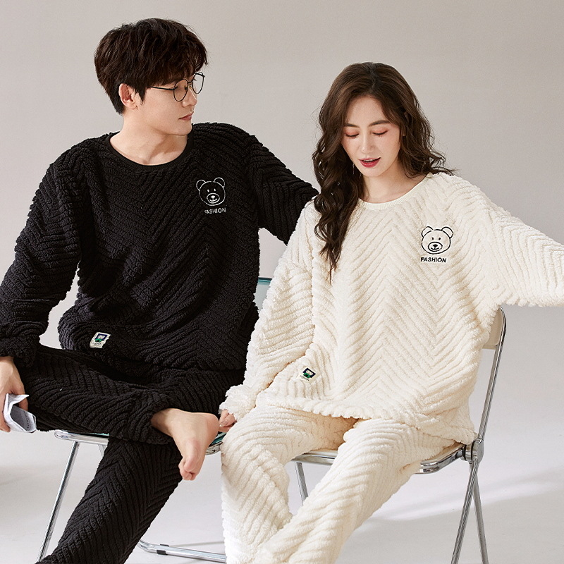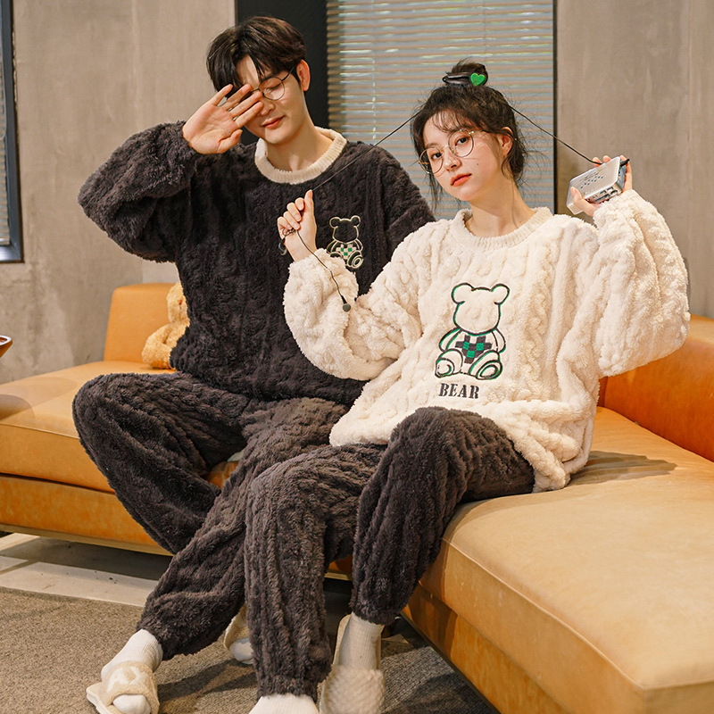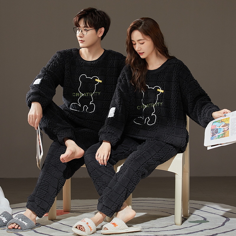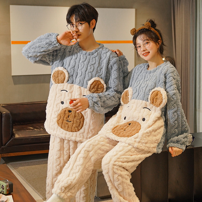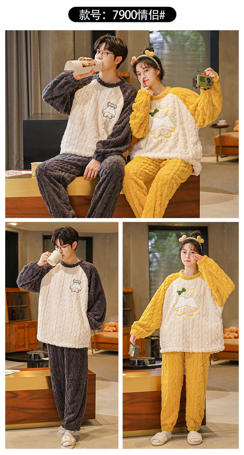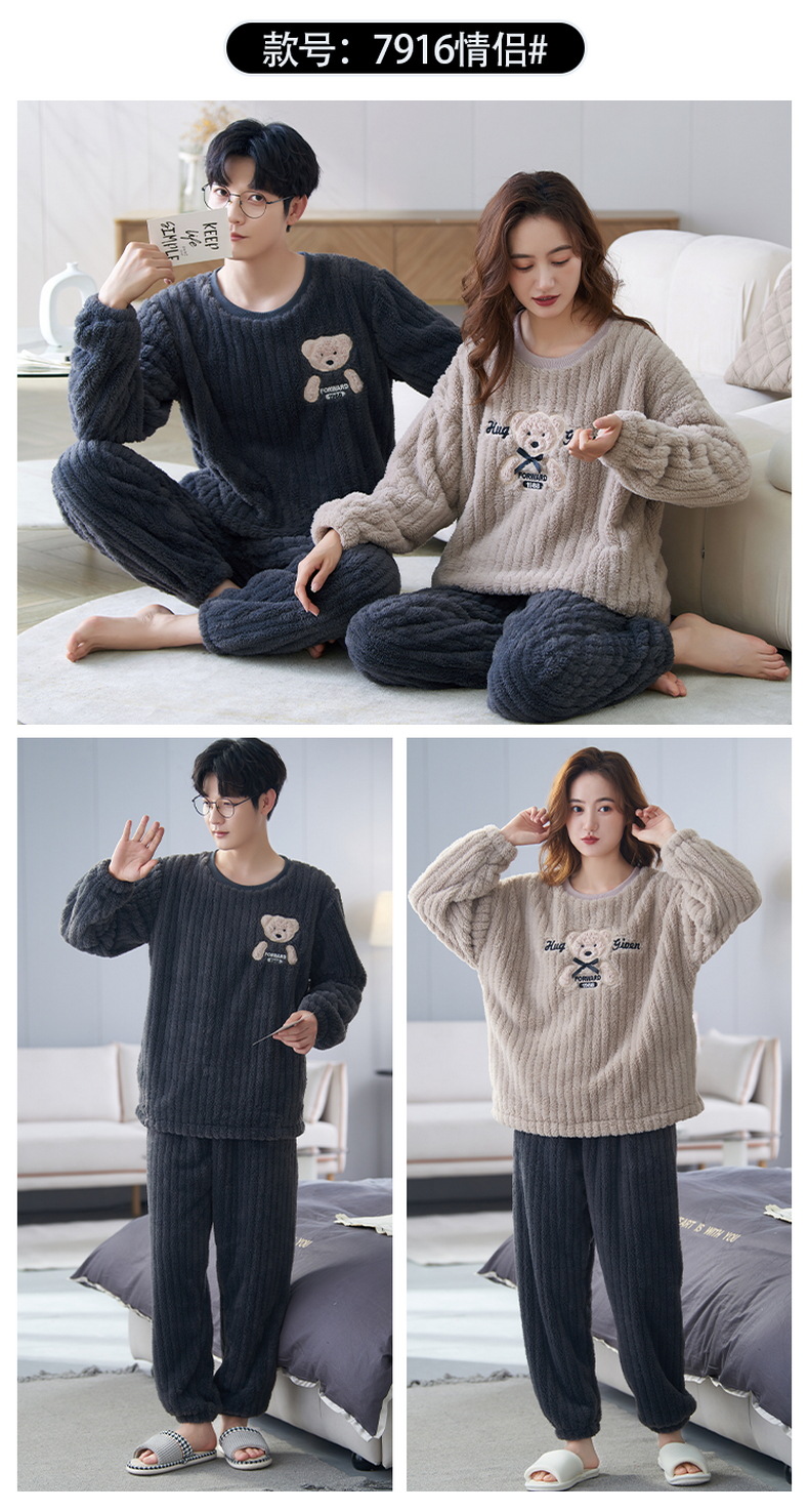 珊瑚绒情侣睡衣女秋冬季保暖加厚法兰绒套头可外穿卡通家居服套装