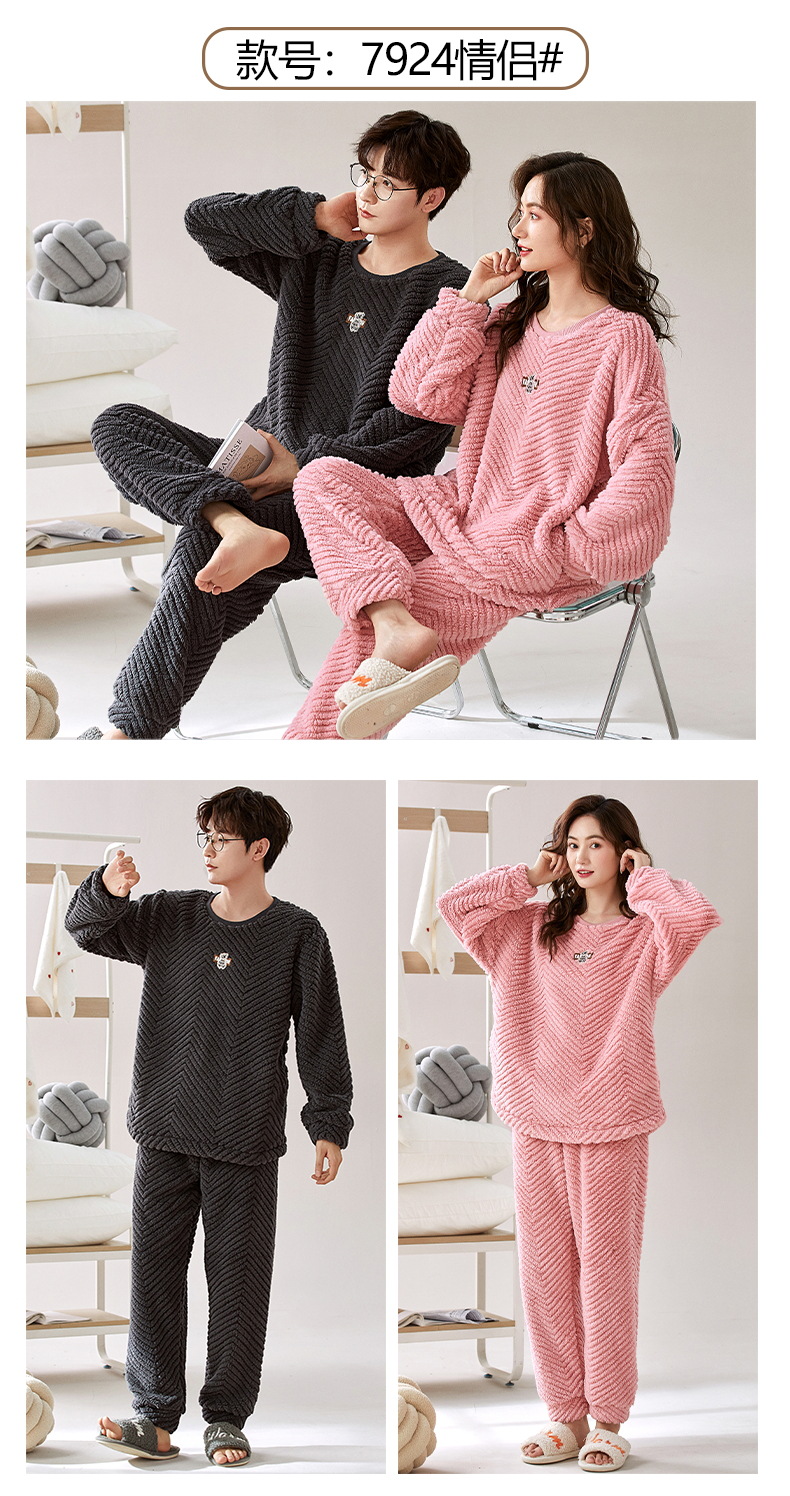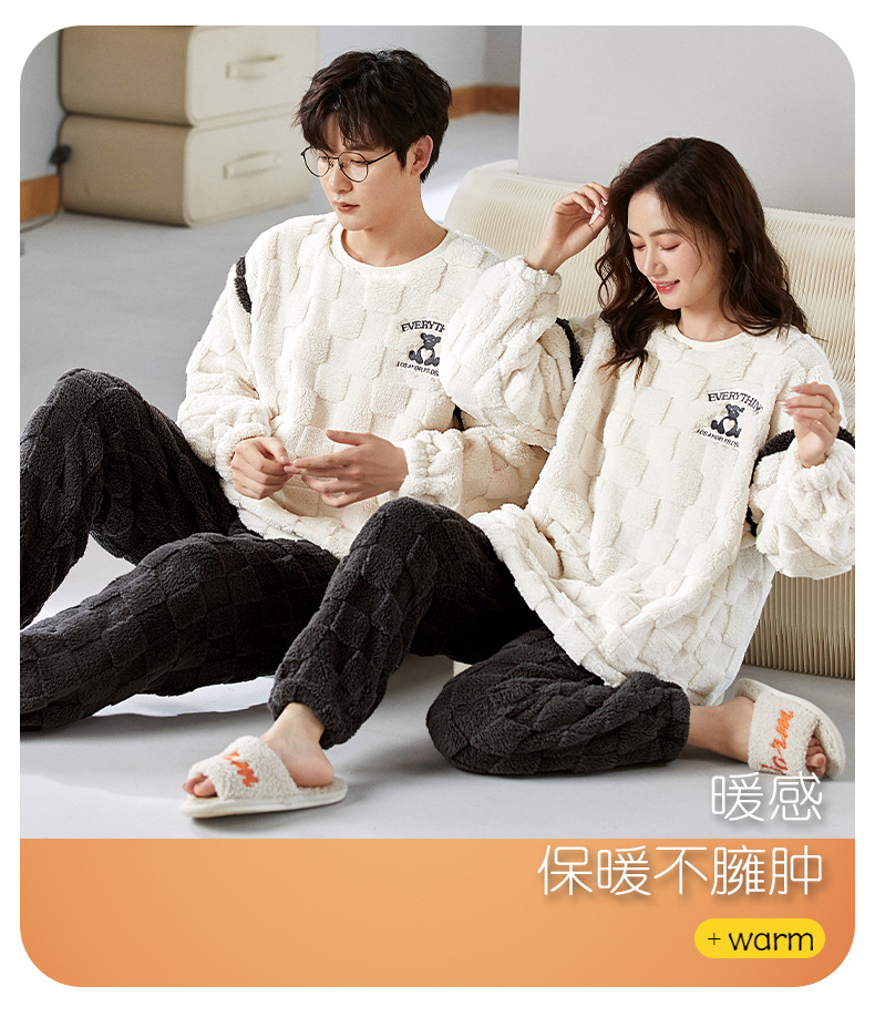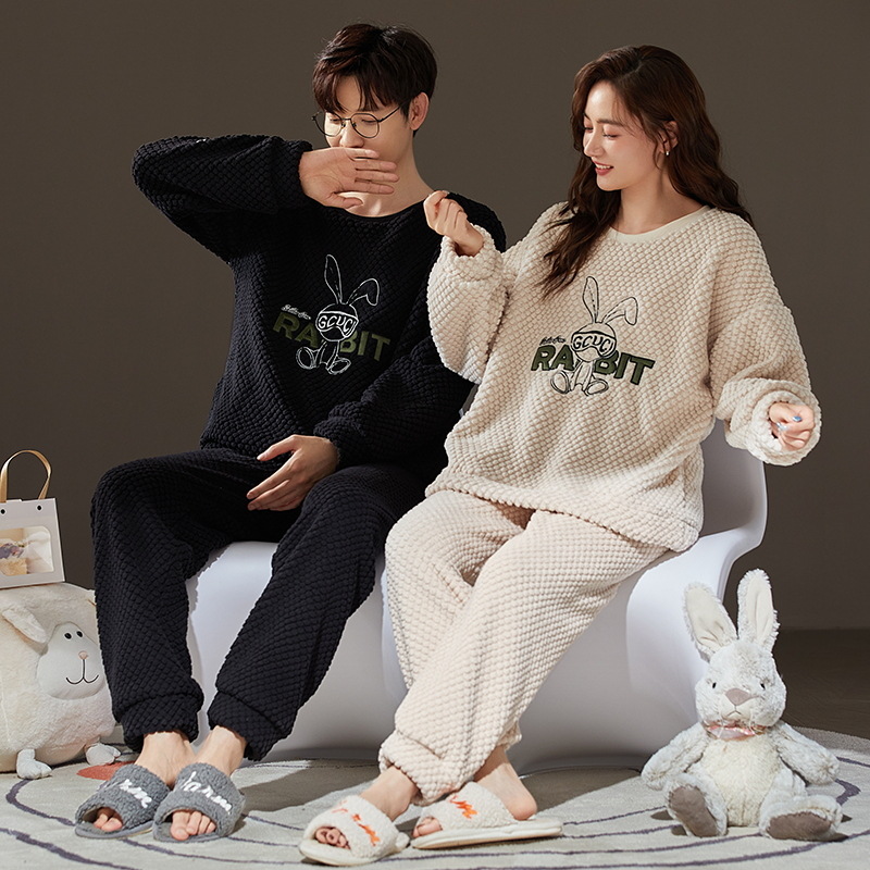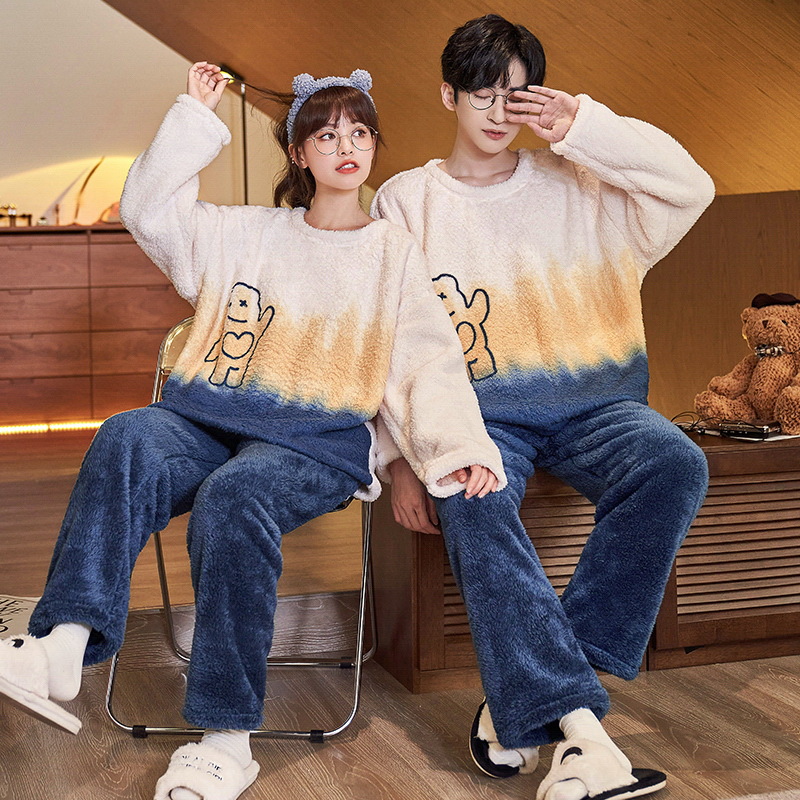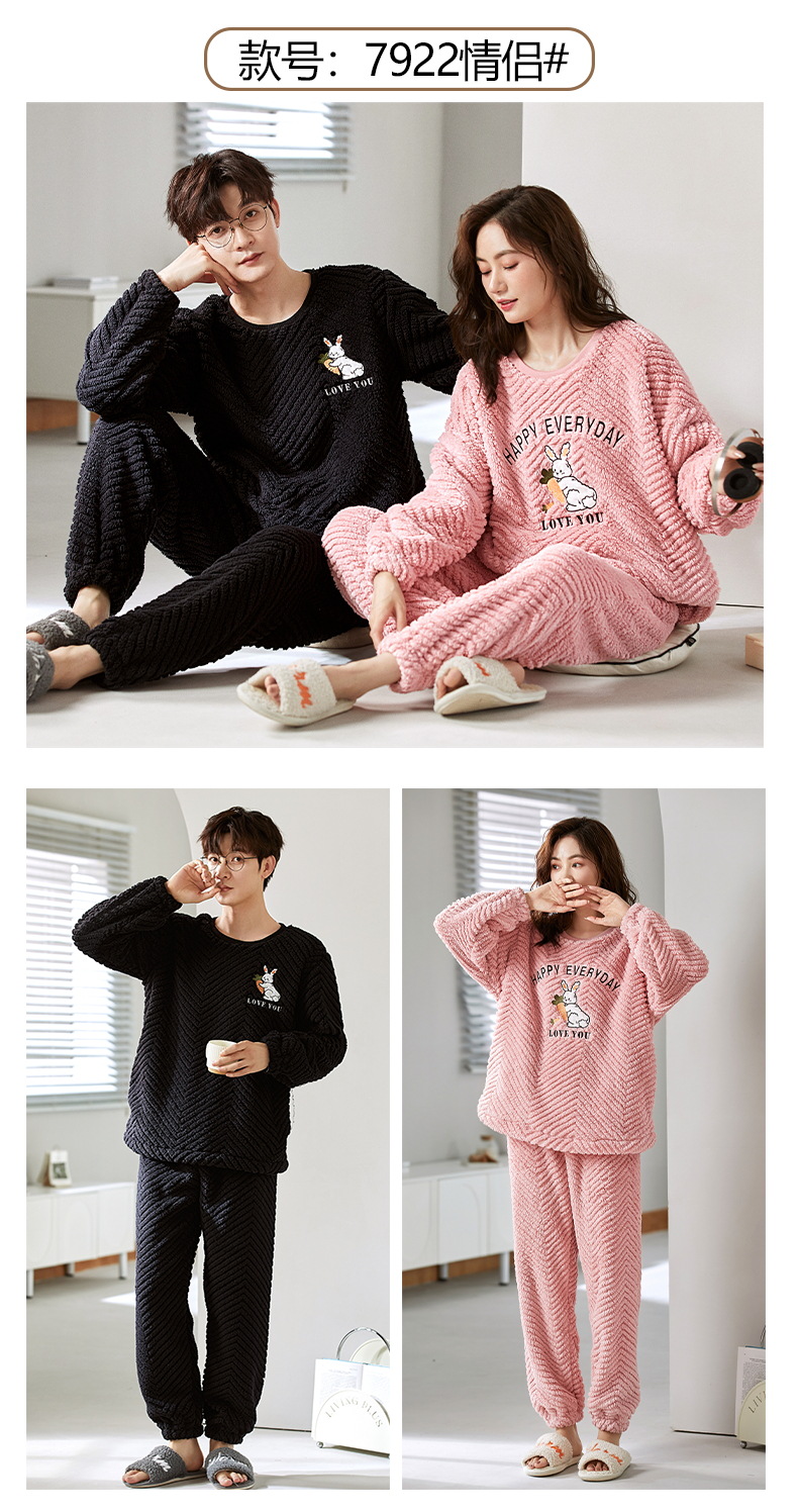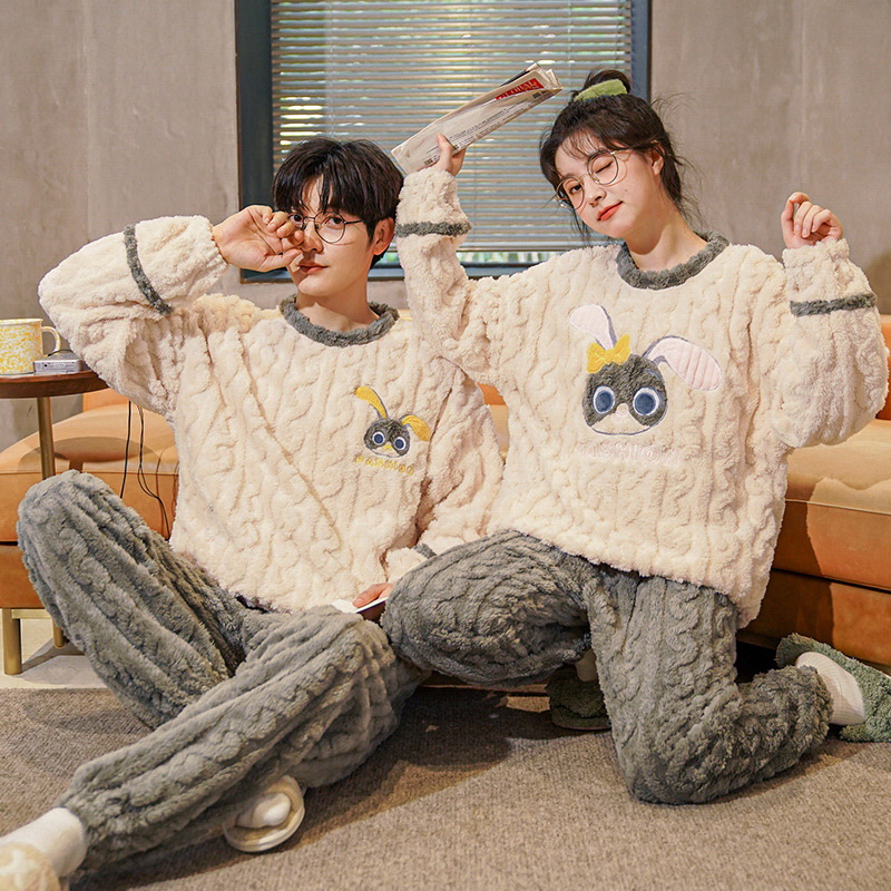 珊瑚绒情侣睡衣女秋冬季保暖加厚法兰绒套头可外穿卡通家居服套装