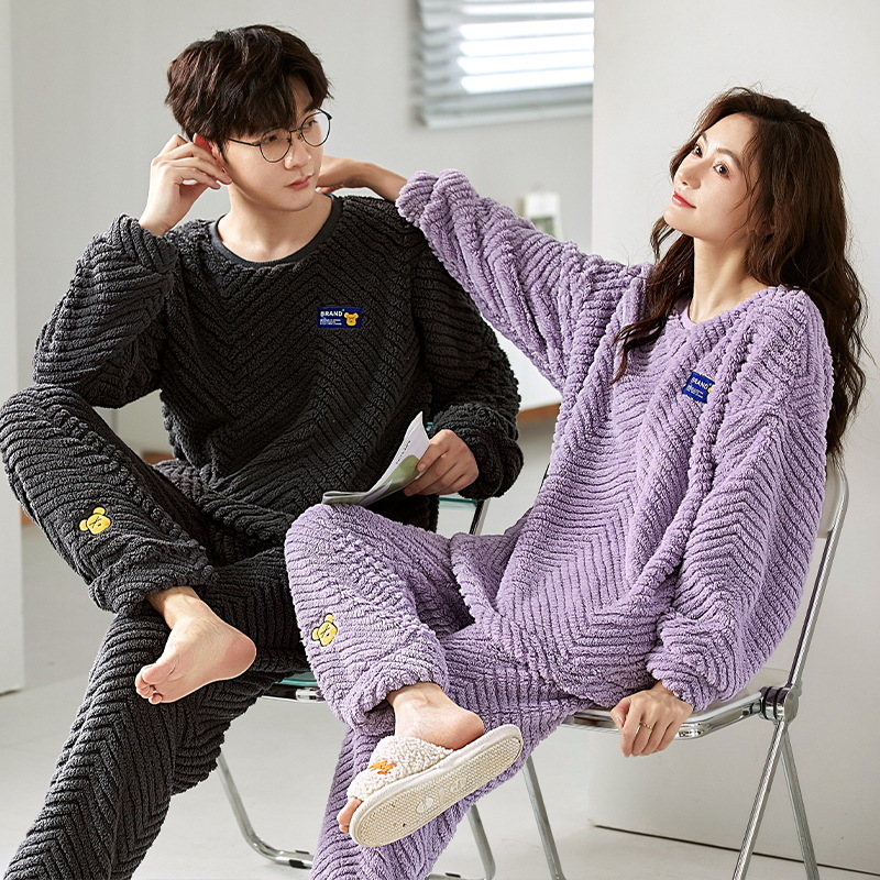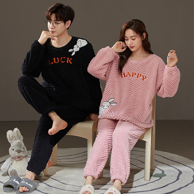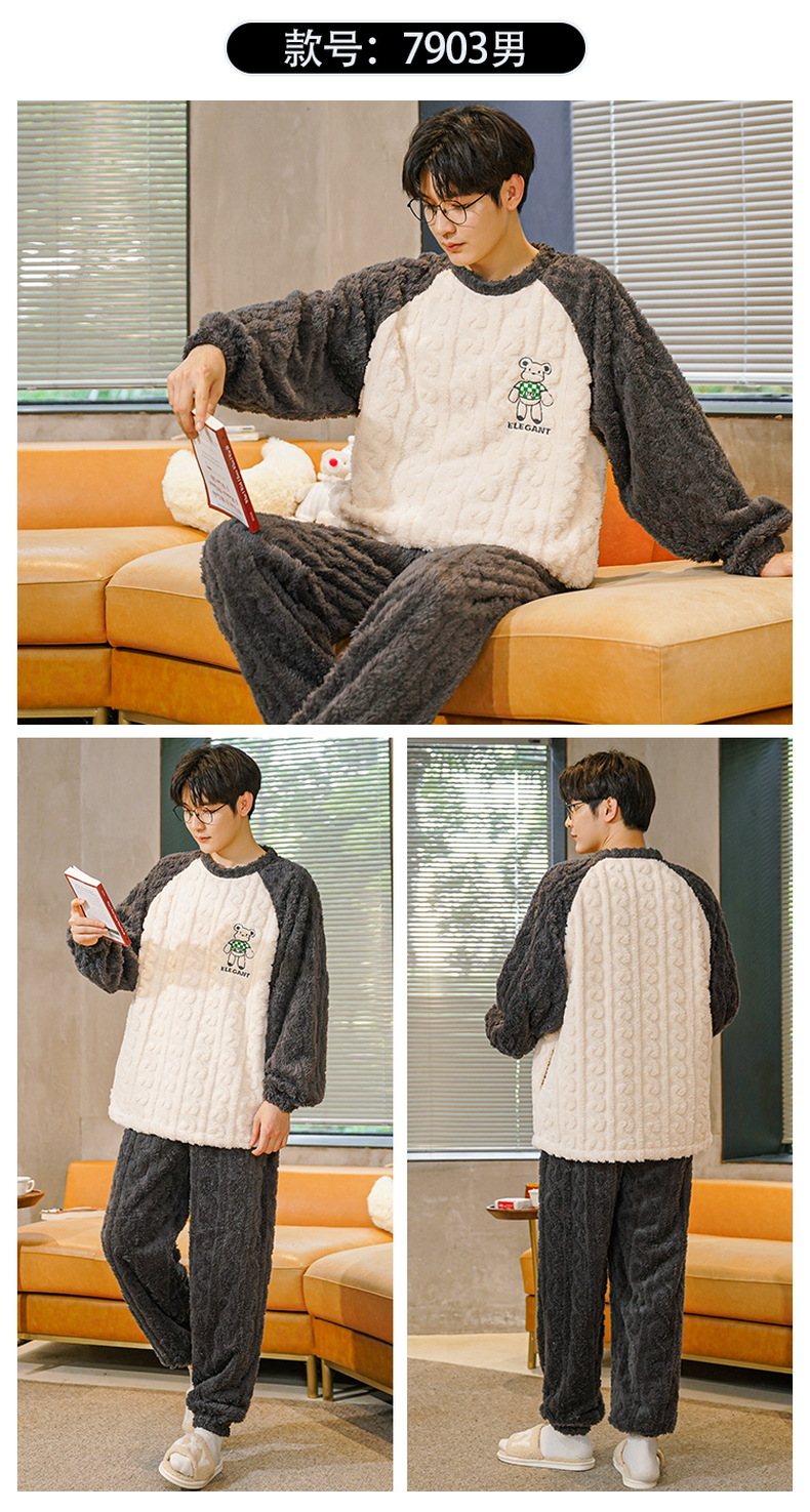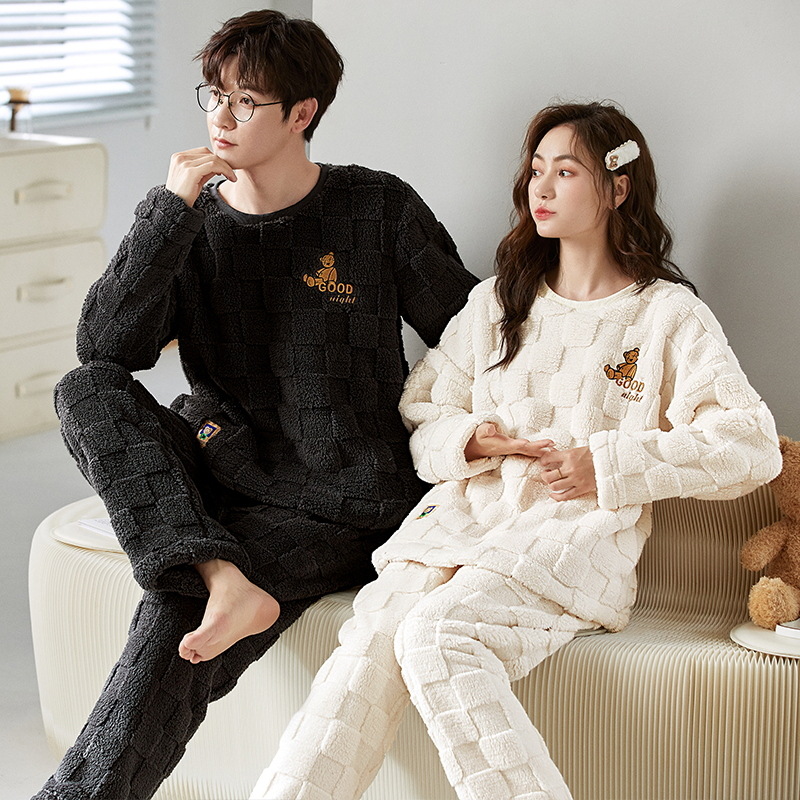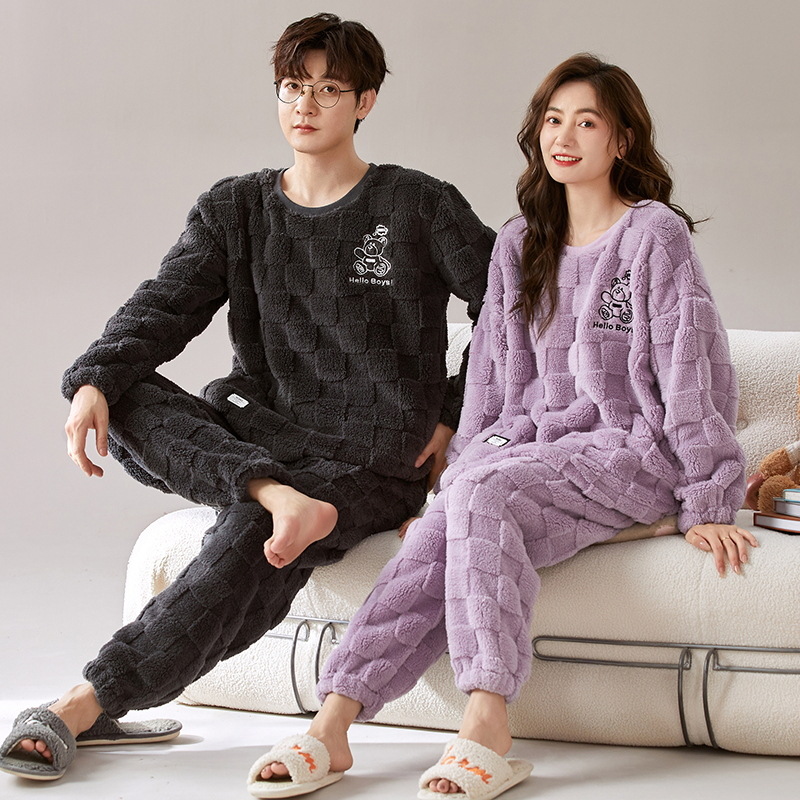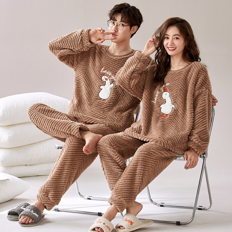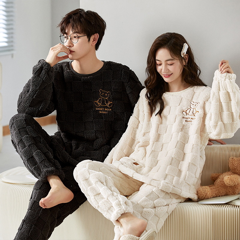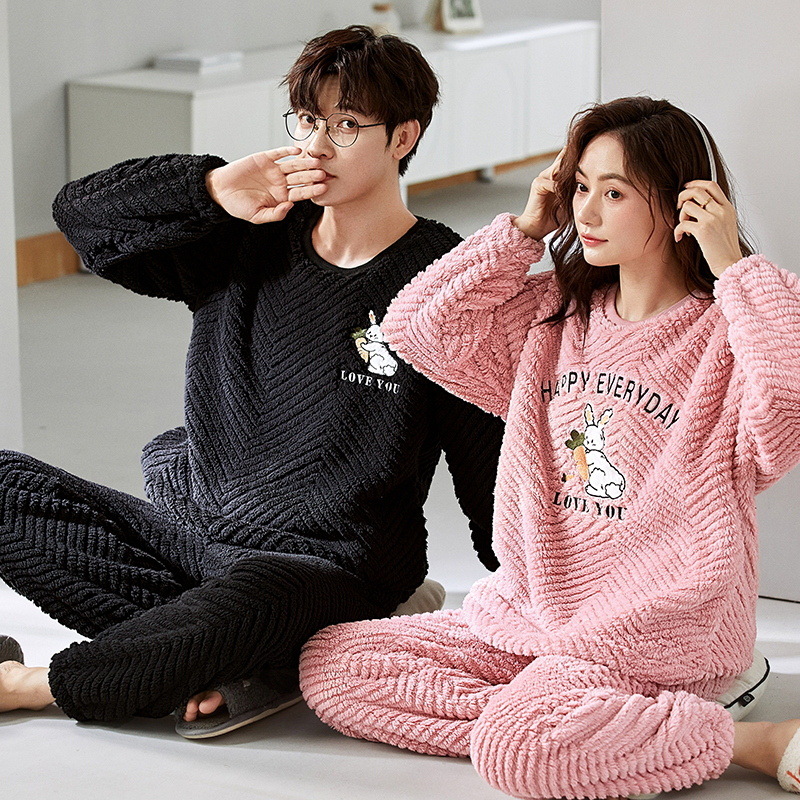 珊瑚绒情侣睡衣女秋冬季保暖加厚法兰绒套头可外穿卡通家居服套装