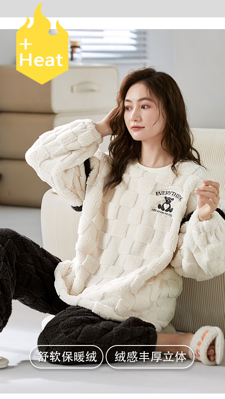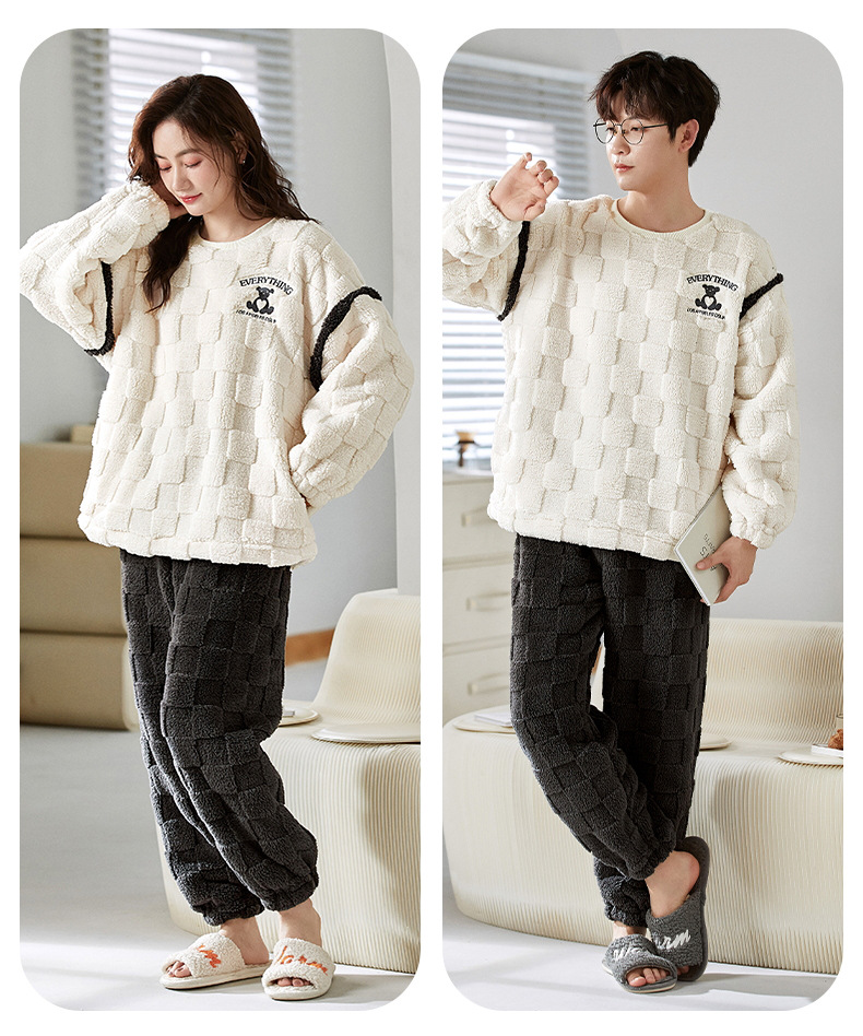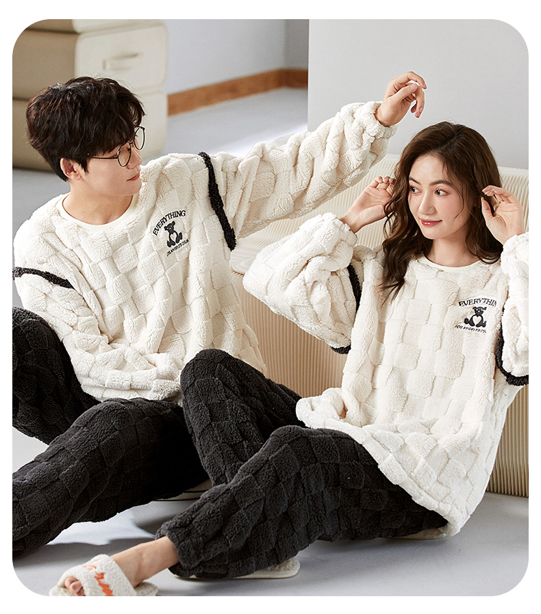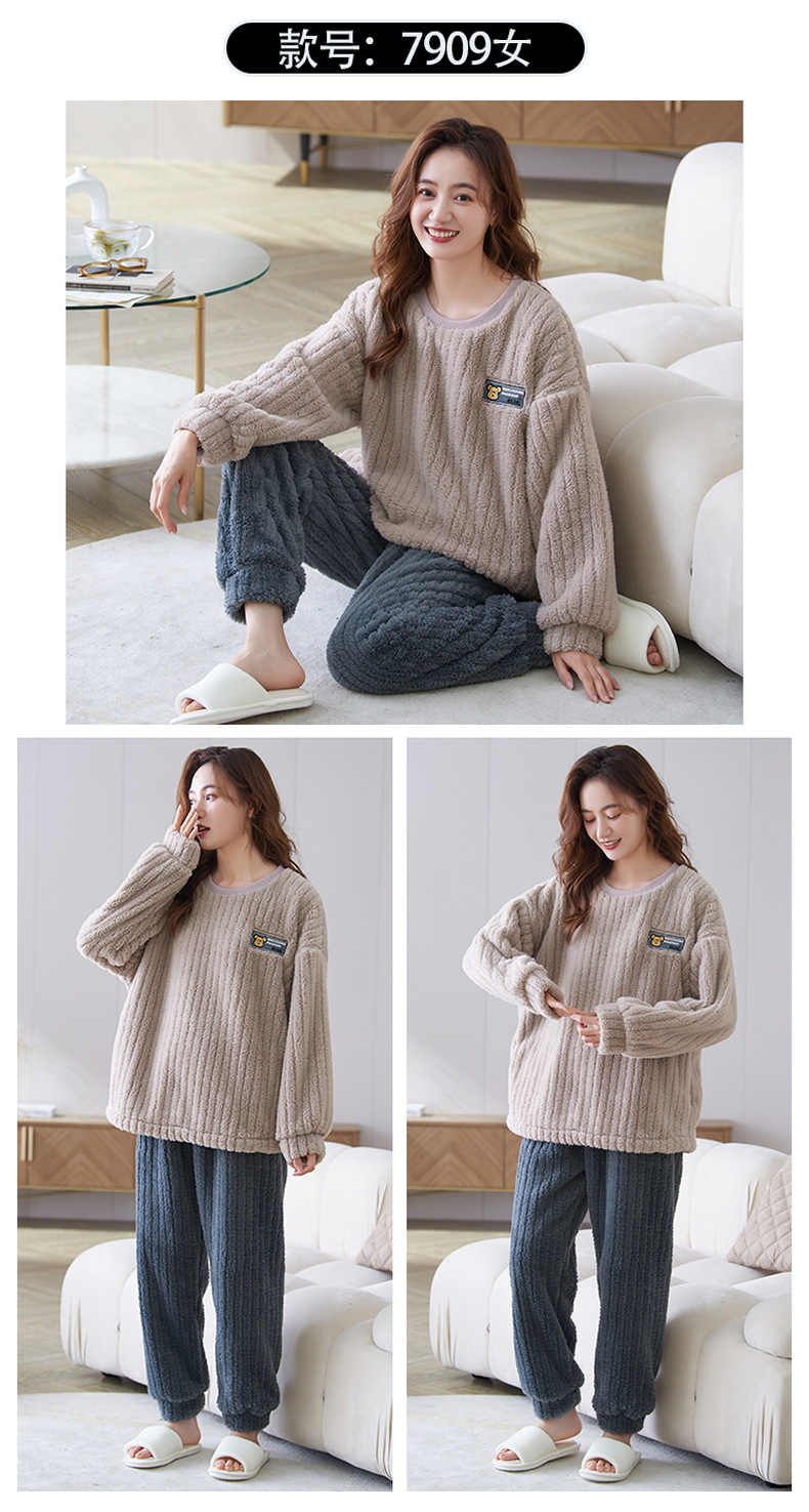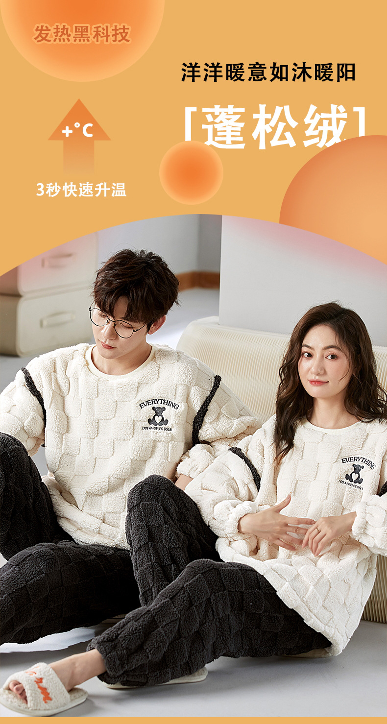 珊瑚绒情侣睡衣女秋冬季保暖加厚法兰绒套头可外穿卡通家居服套装