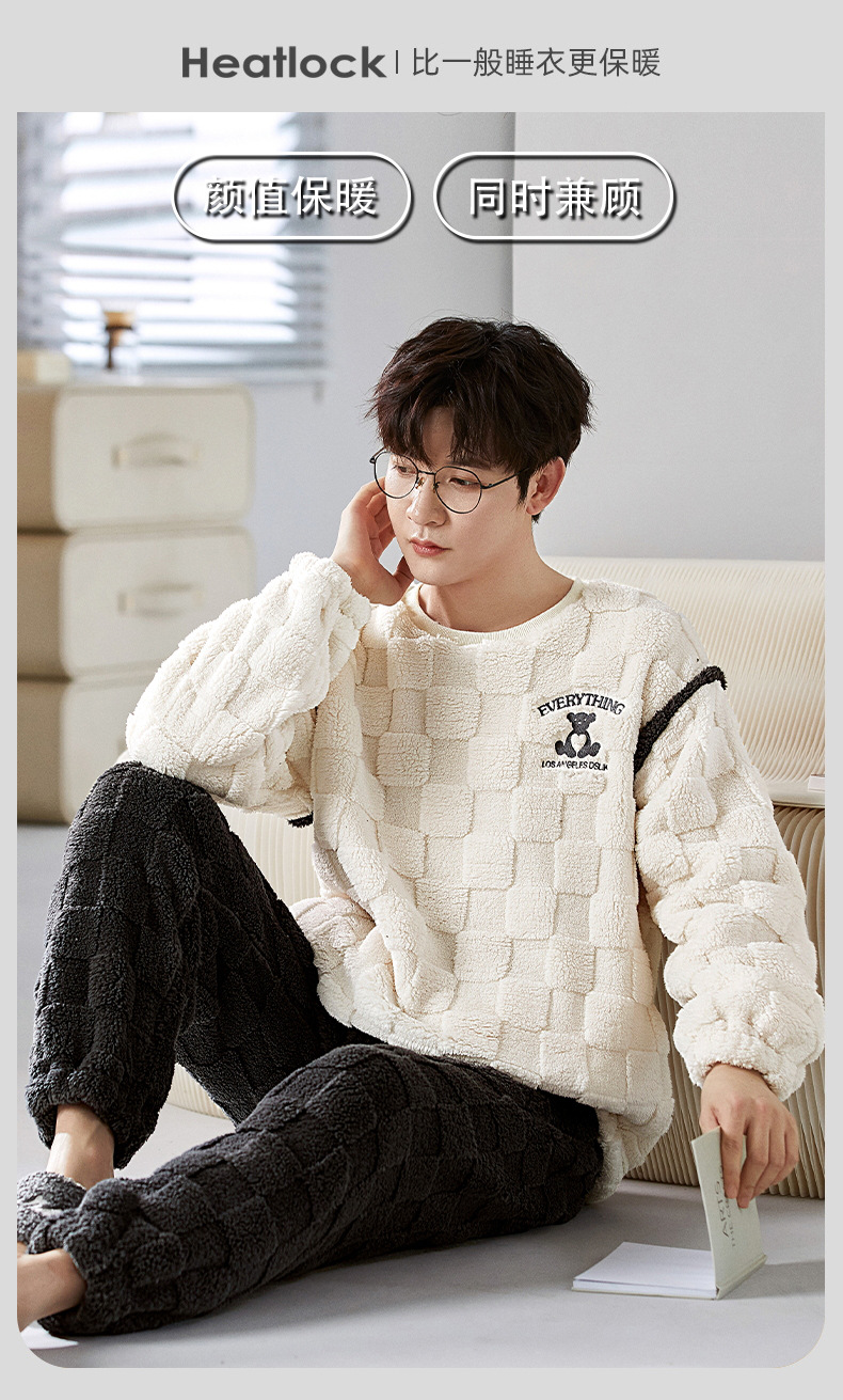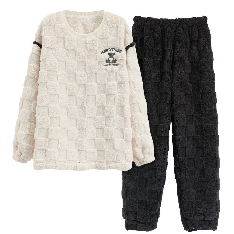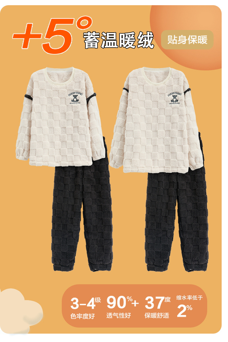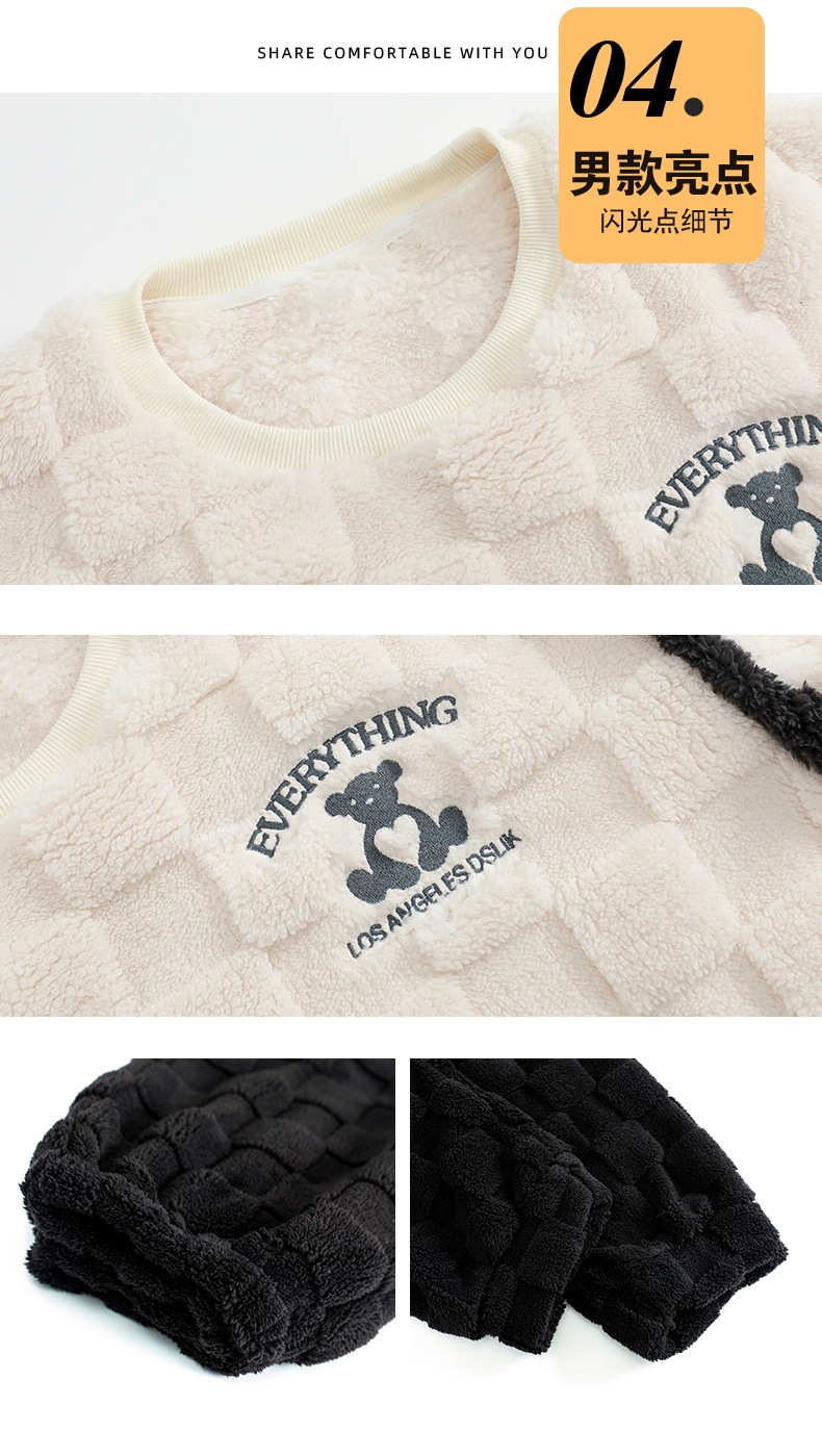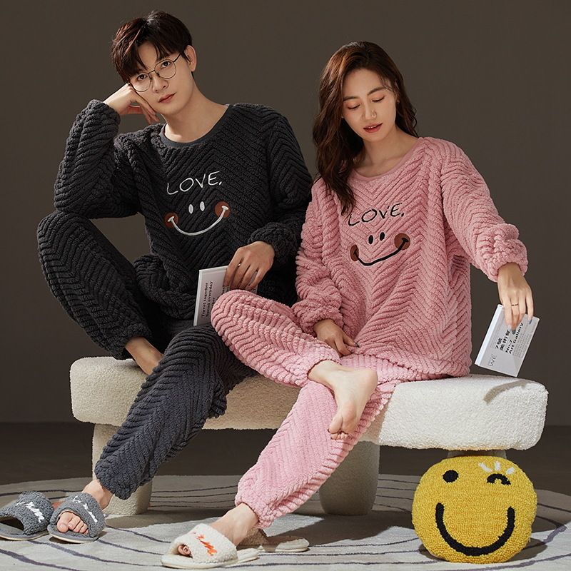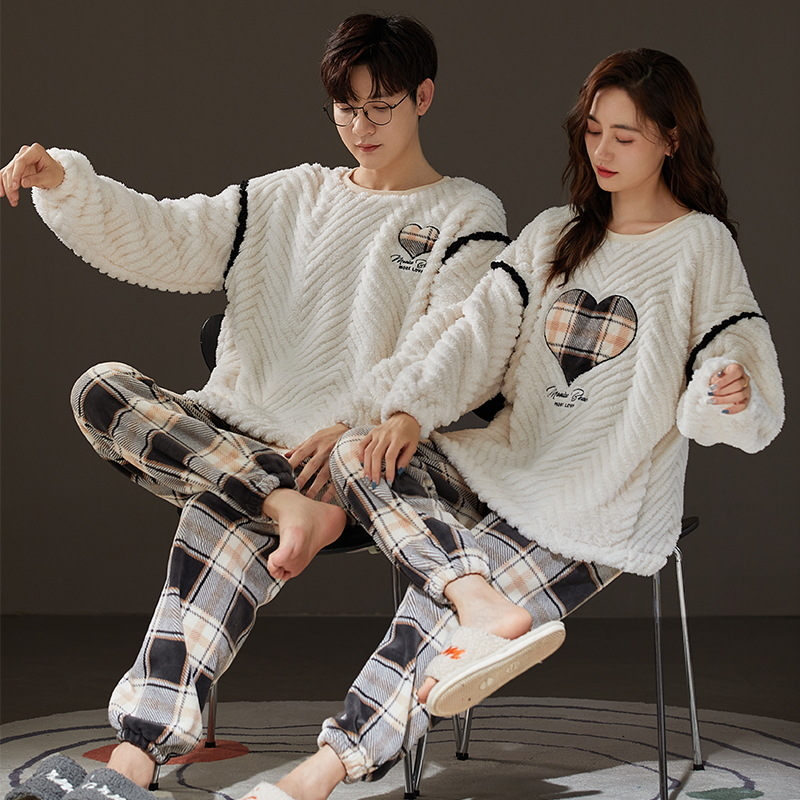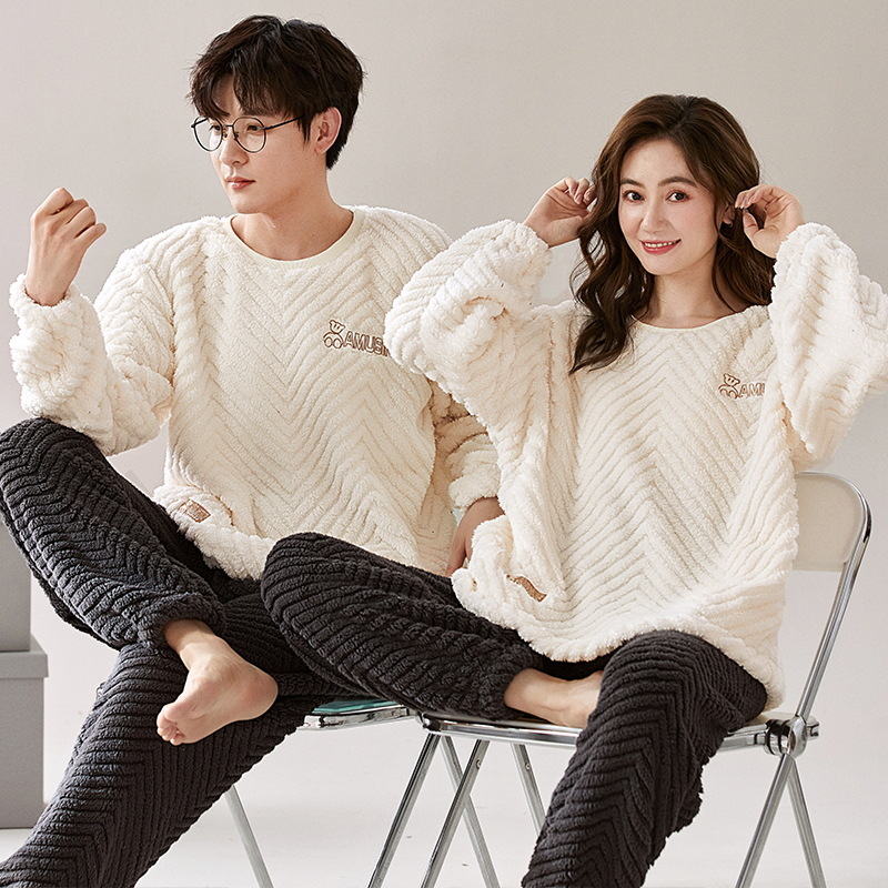 珊瑚绒情侣睡衣女秋冬季保暖加厚法兰绒套头可外穿卡通家居服套装