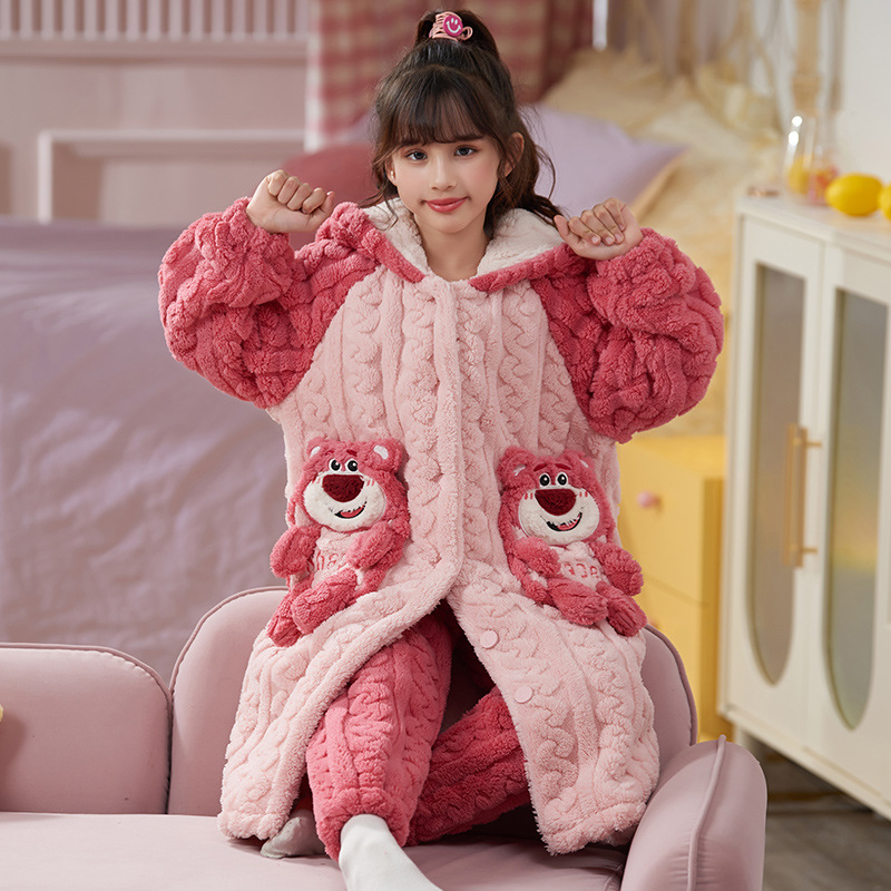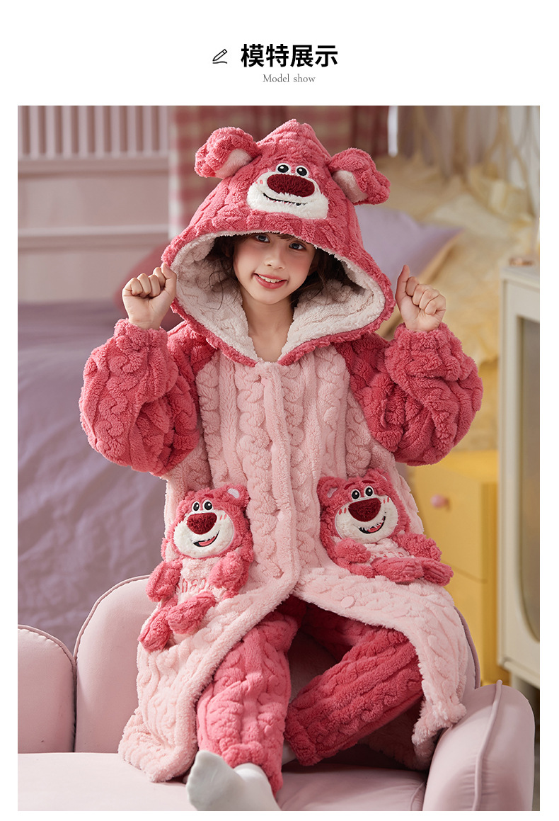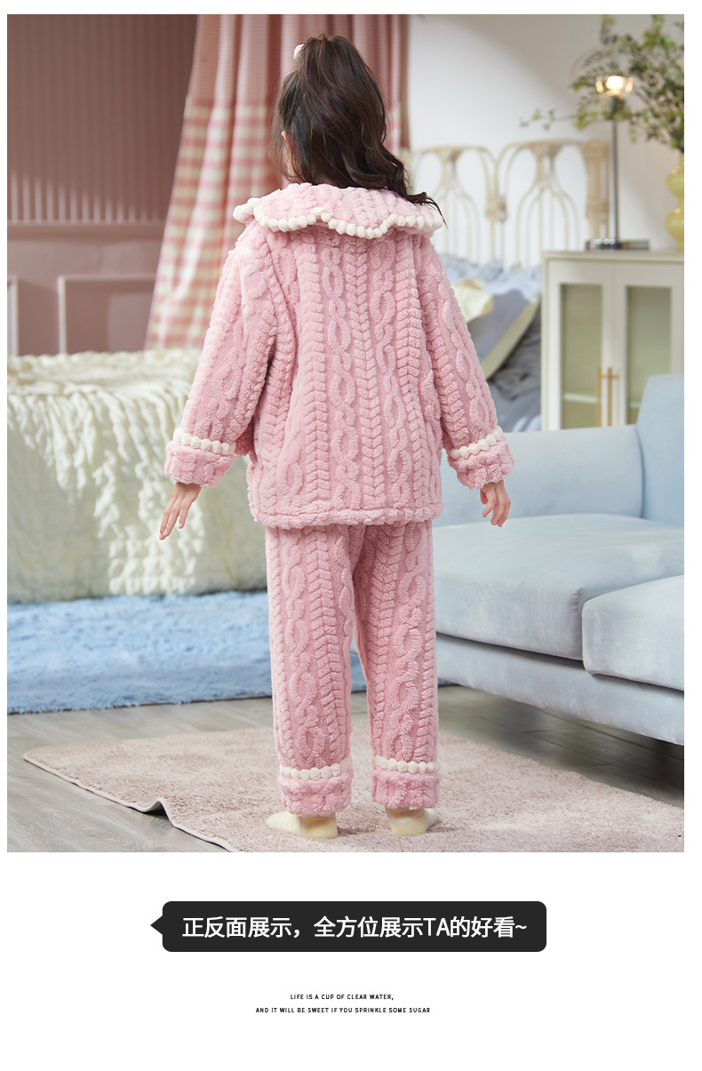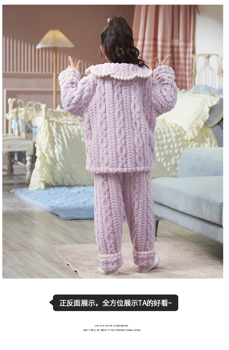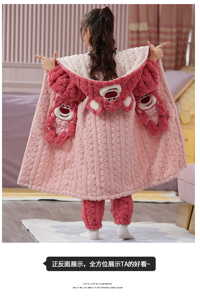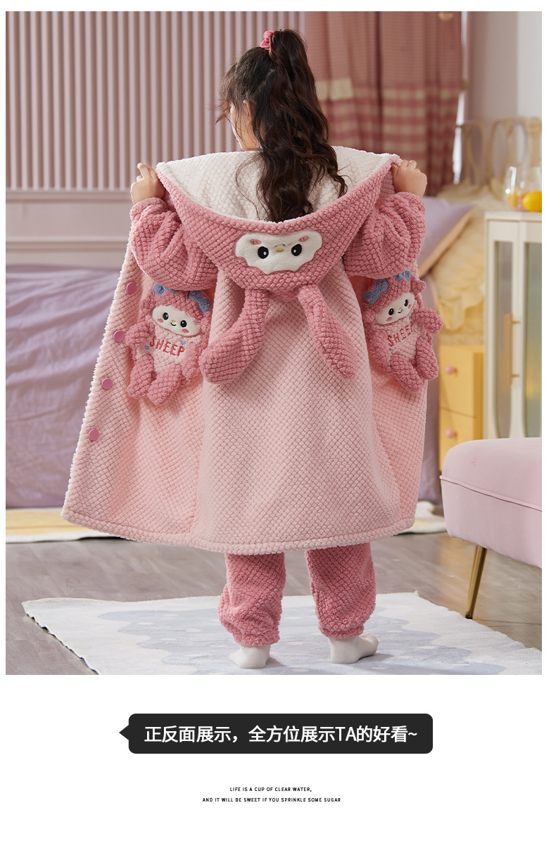 女童睡衣儿童睡袍法兰绒加厚珊瑚绒秋冬季套装浴袍中大童家居服女