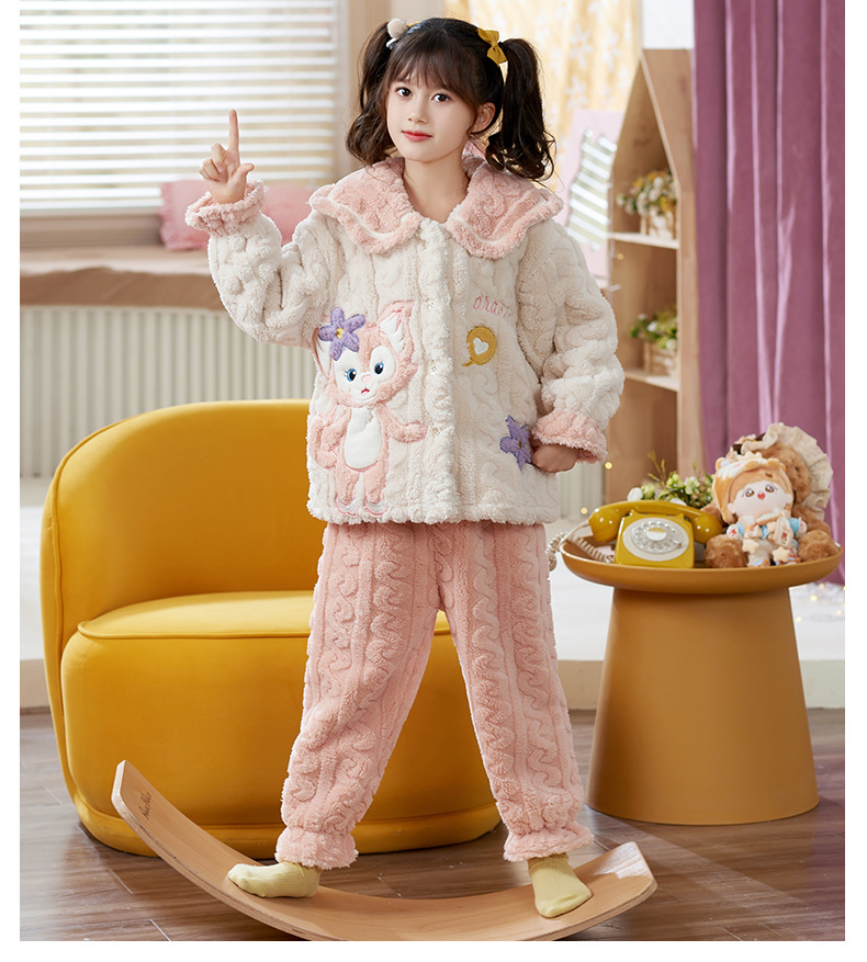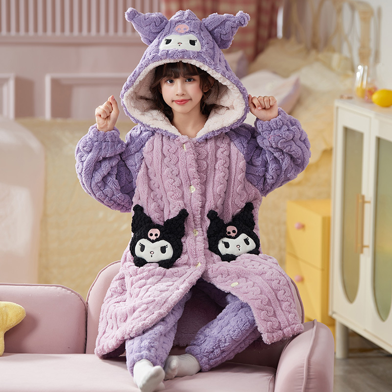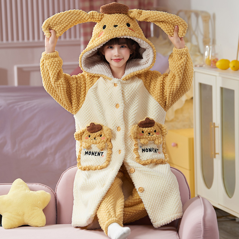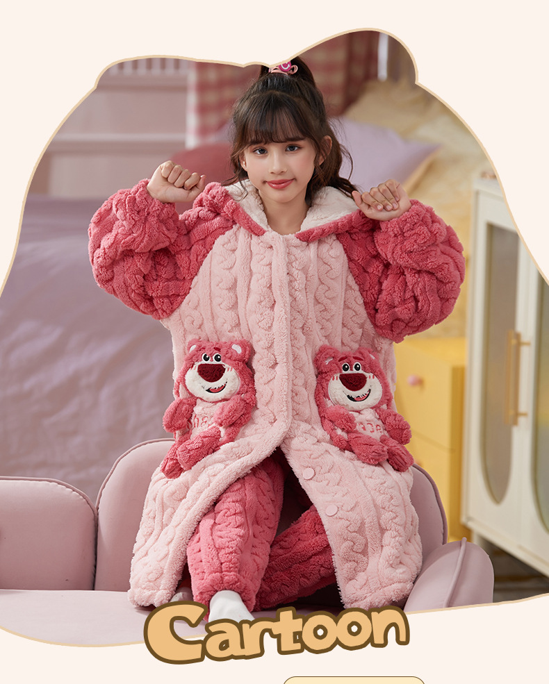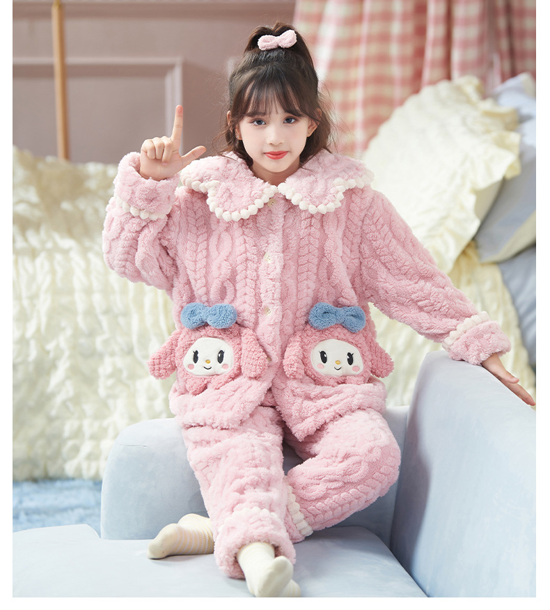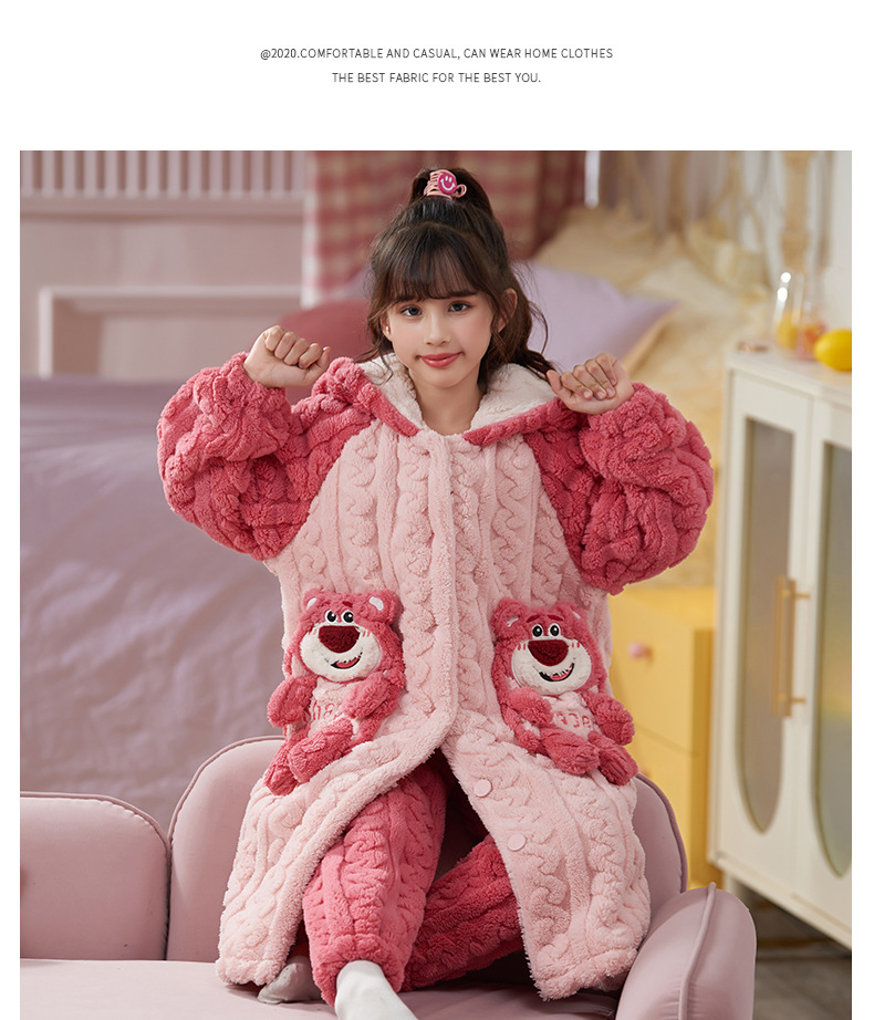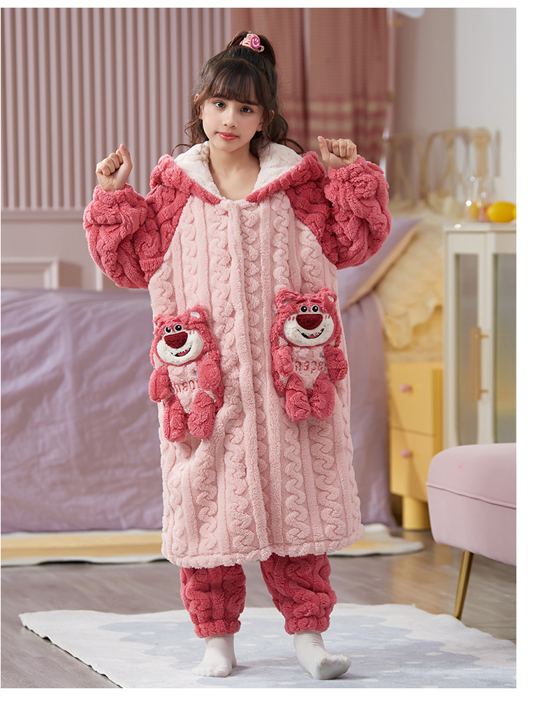 女童睡衣儿童睡袍法兰绒加厚珊瑚绒秋冬季套装浴袍中大童家居服女