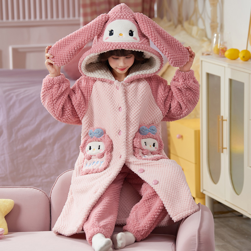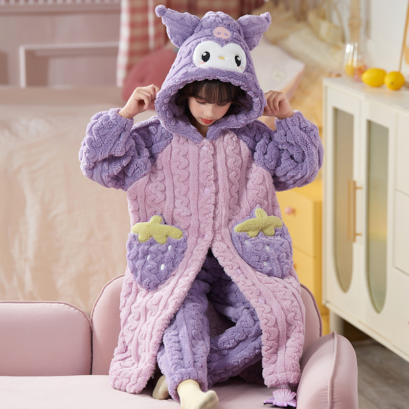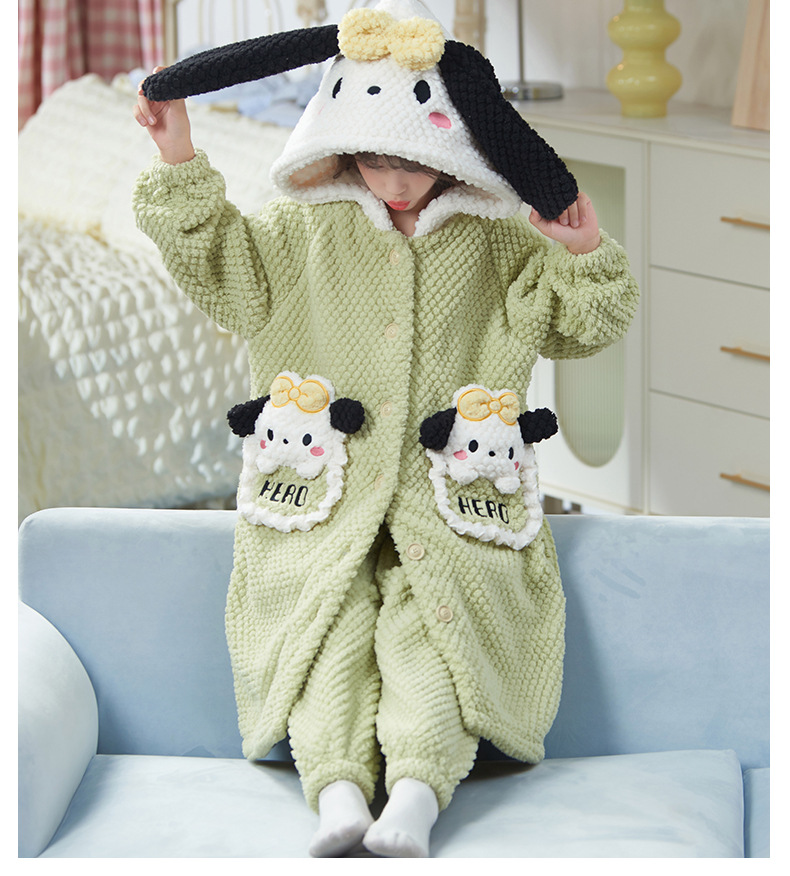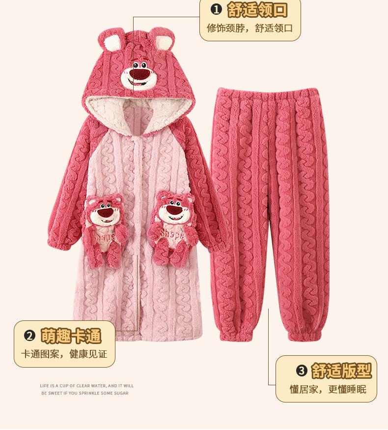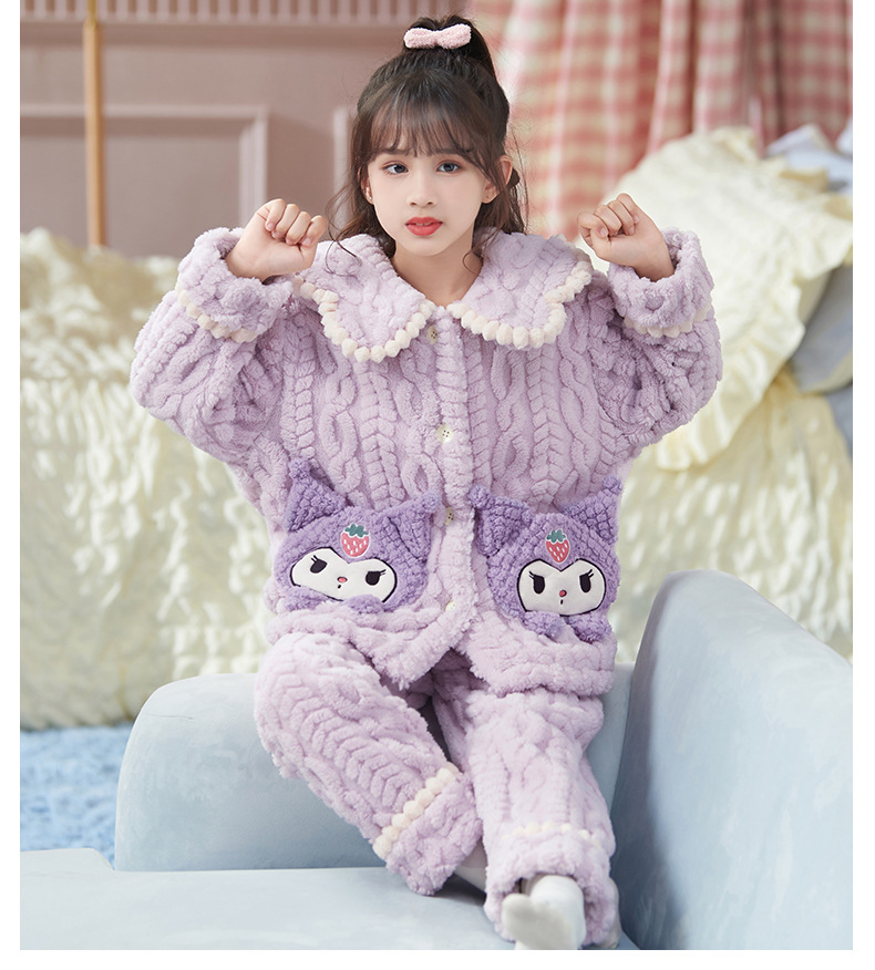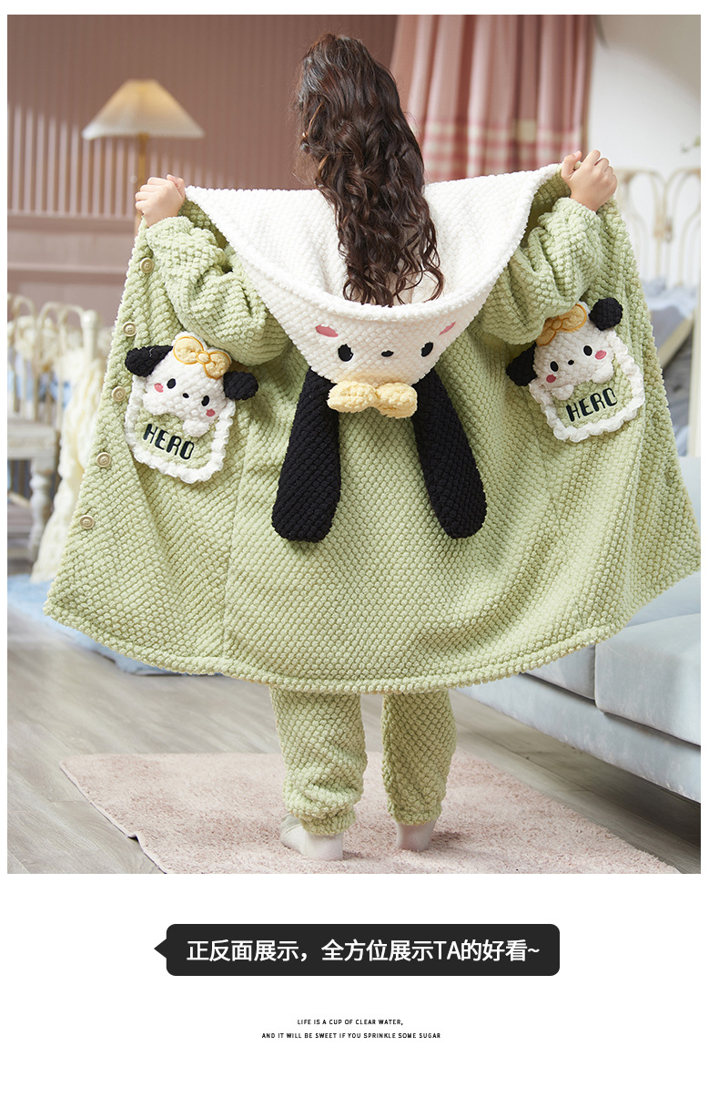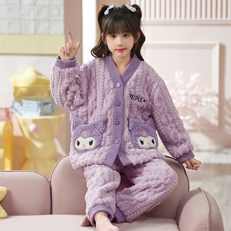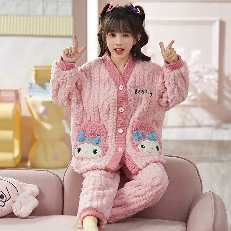 女童睡衣儿童睡袍法兰绒加厚珊瑚绒秋冬季套装浴袍中大童家居服女